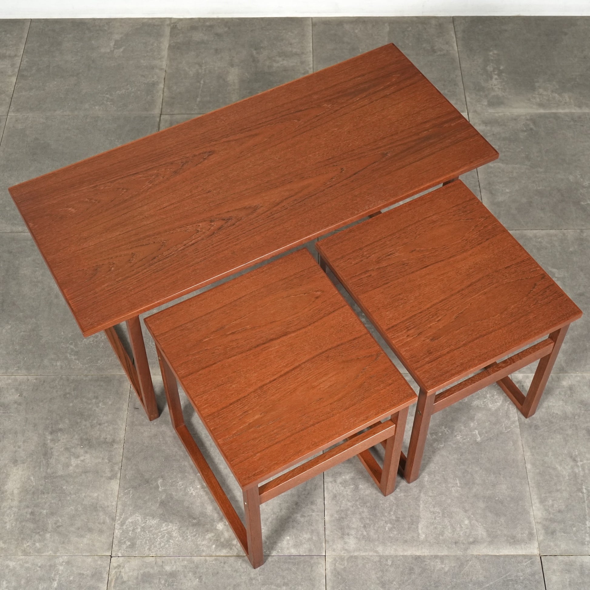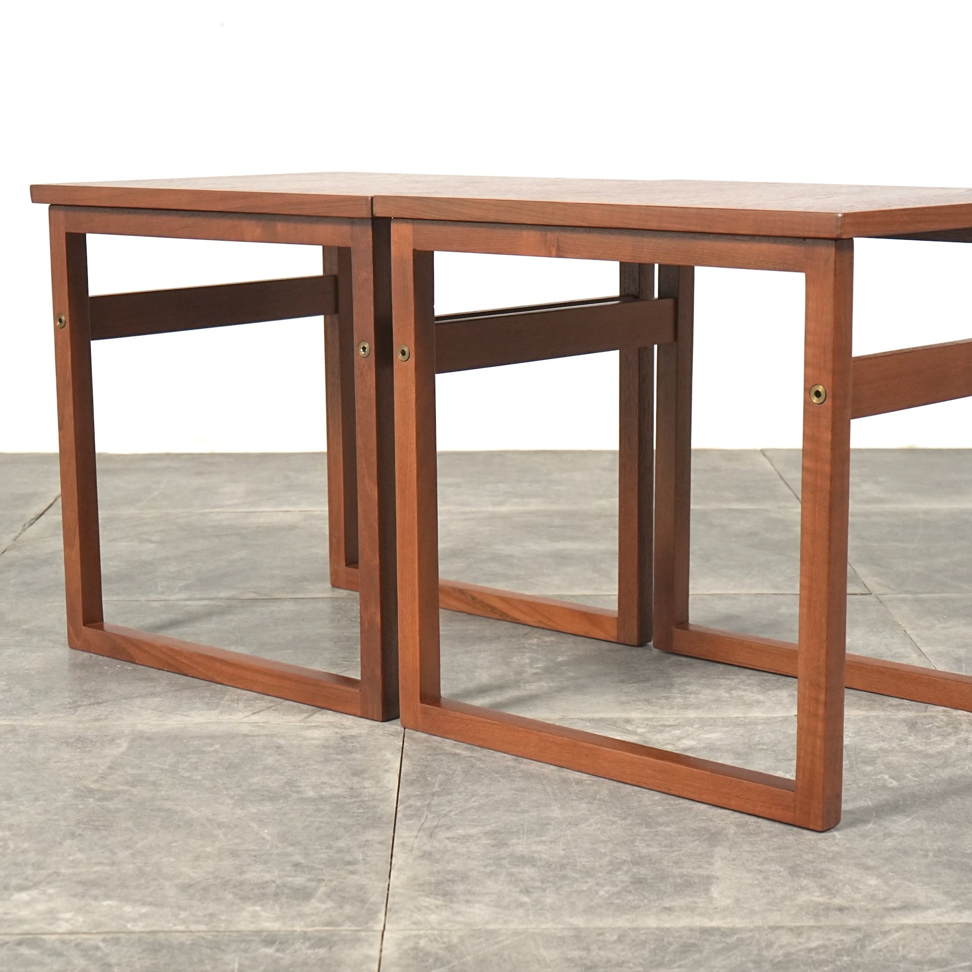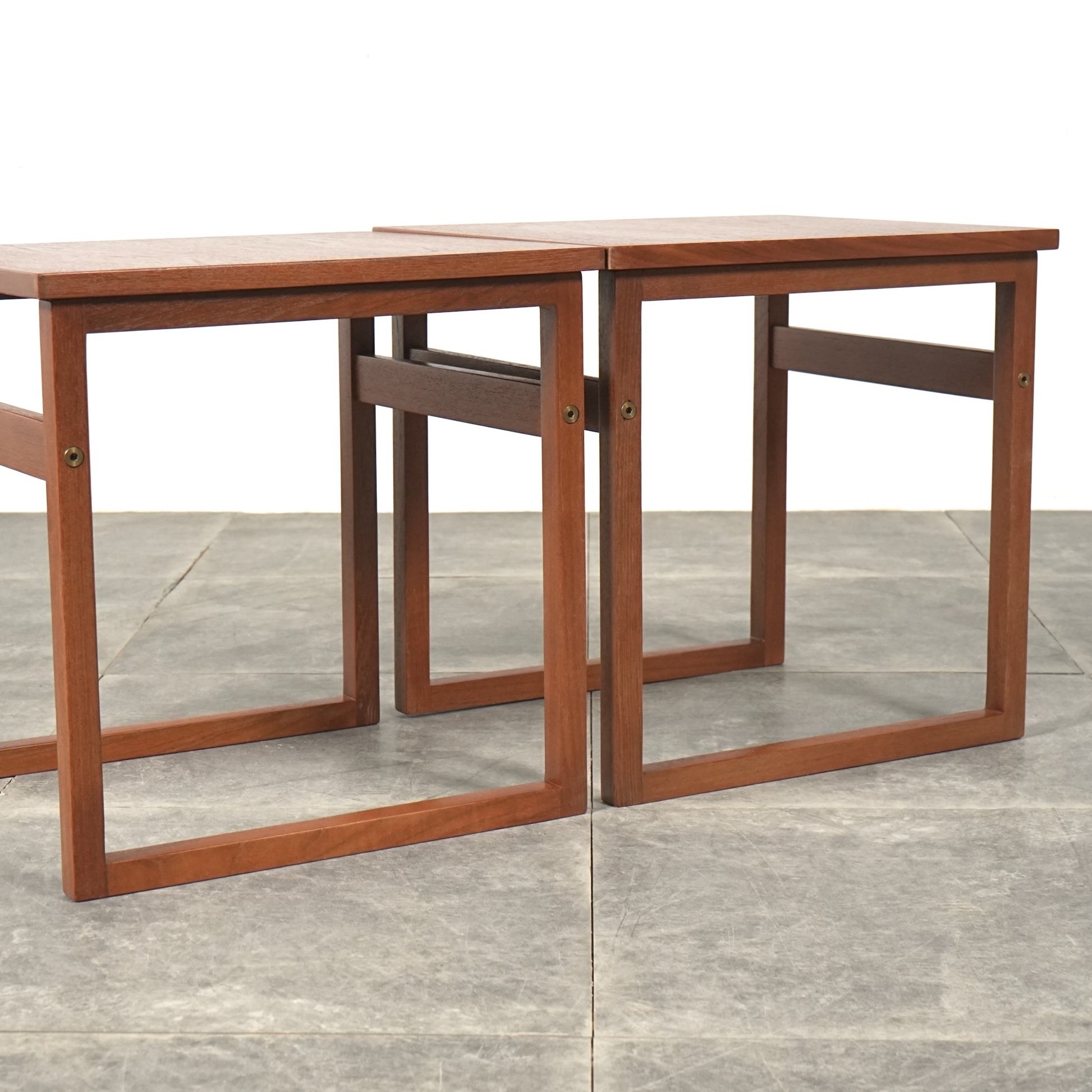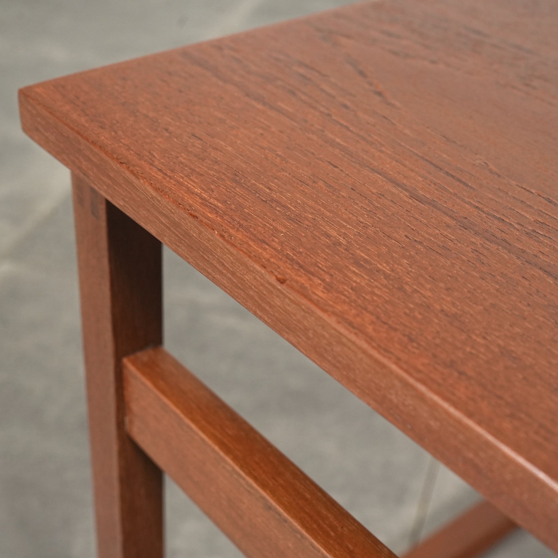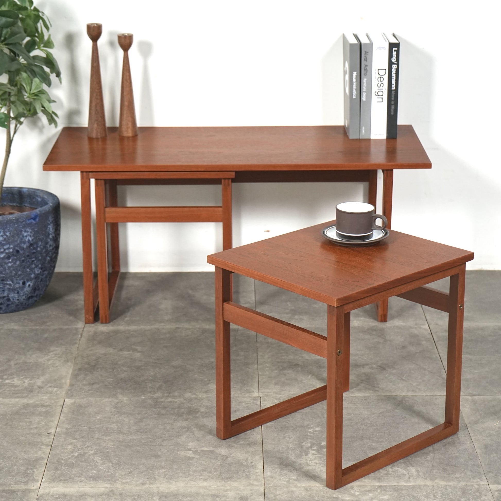 こちらのネストテーブルは上質なチーク材の質感を楽しめるミニマルデザインが特徴的で、実用性と美しいデザインを見事に両立させています。