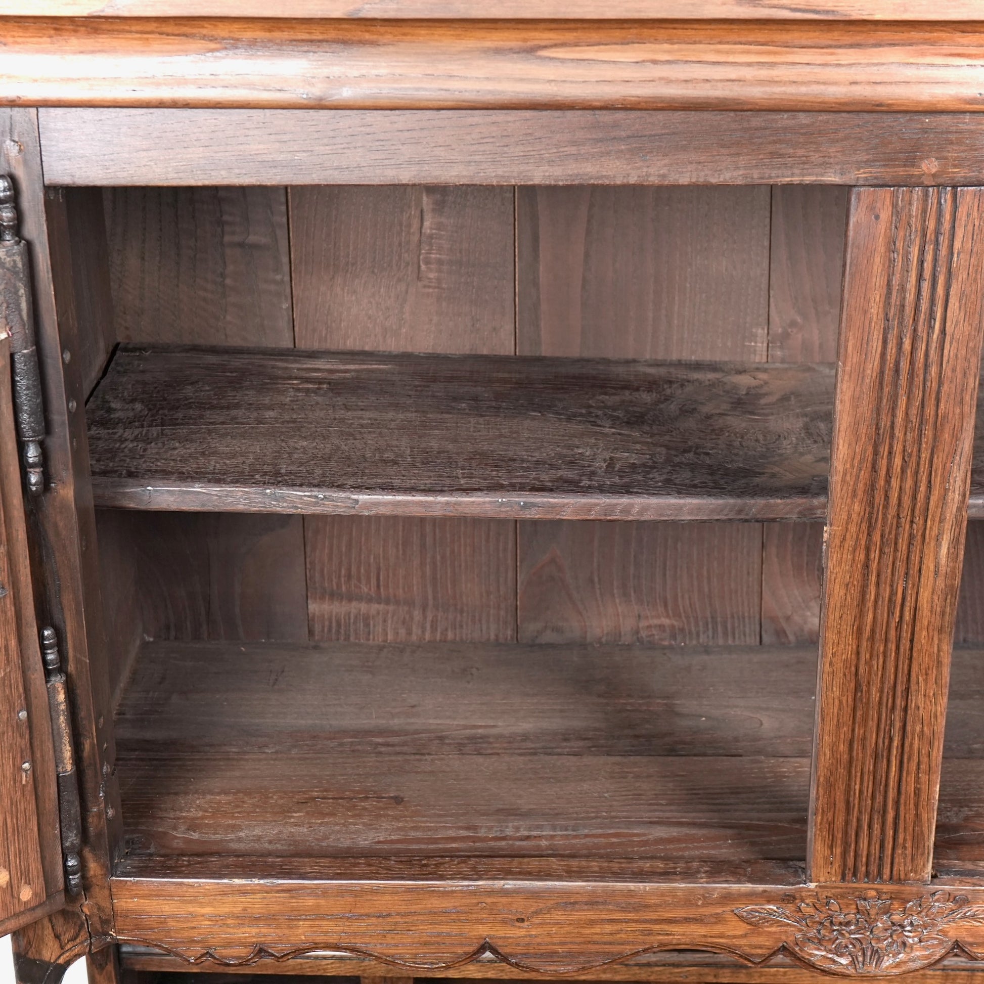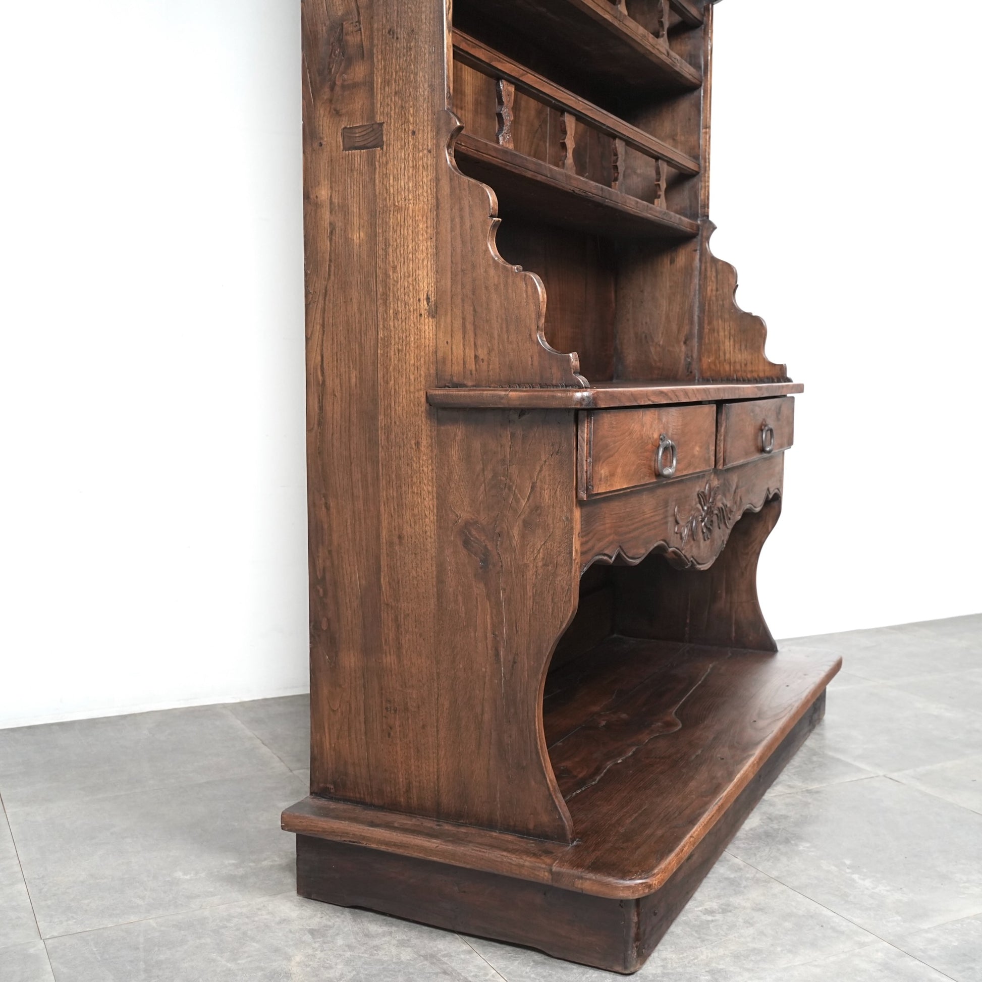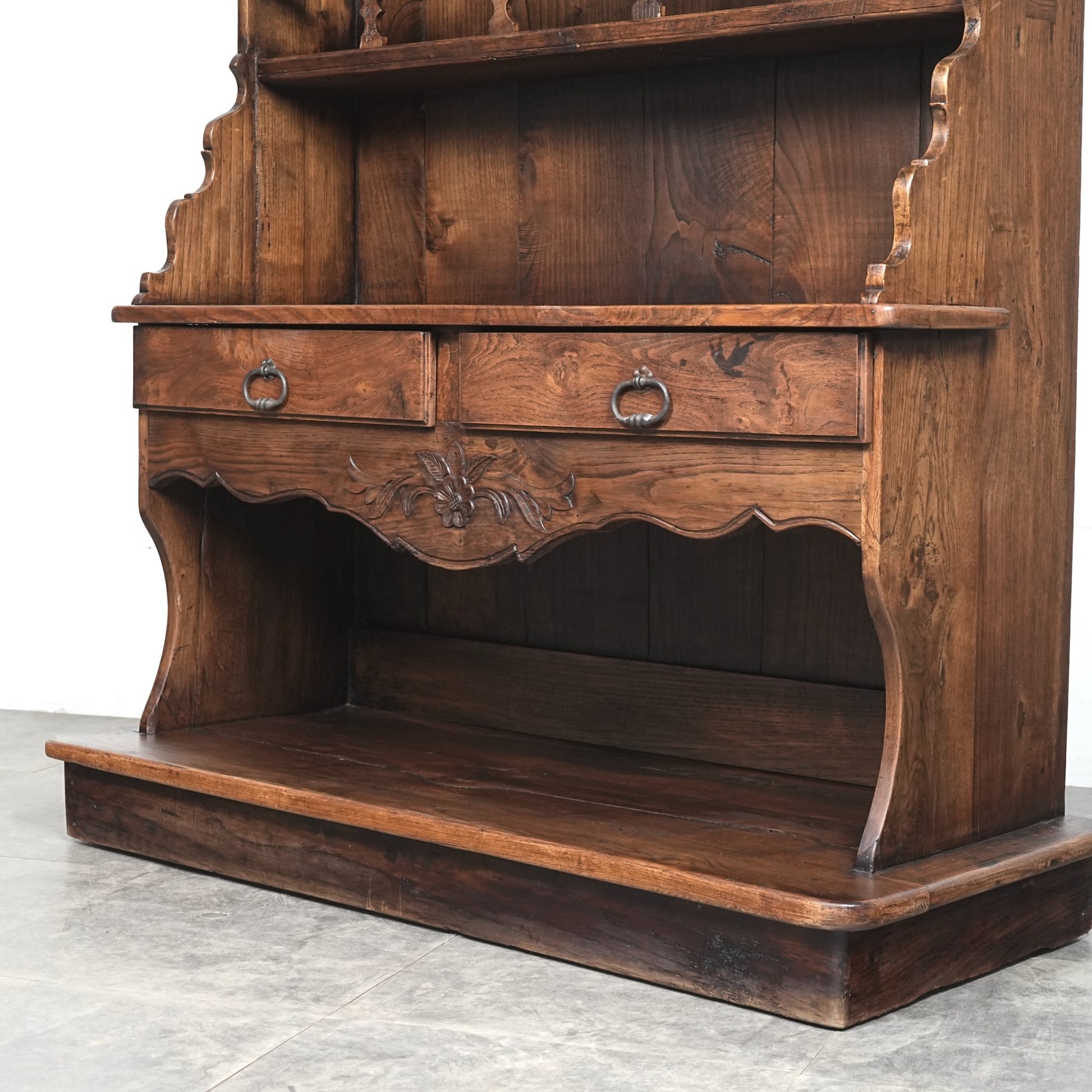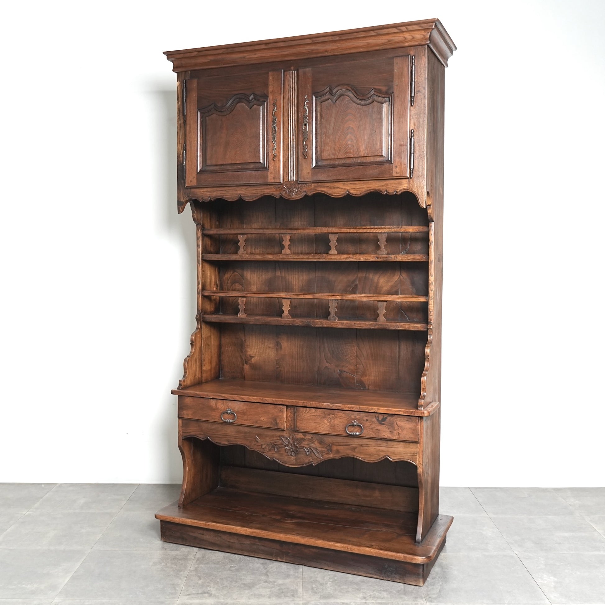 高品質なエルム無垢材ならではの美しい質感に加えて、全体に手作業で施された意匠からは当時の職人たちの高い技術と多大な労力を感じることができ、現代の製造コストでは絶対にこの価格で再現することができない、まさに100年物のアンティークならではの魅力が詰まったハイグレードな逸品と言えるでしょう。