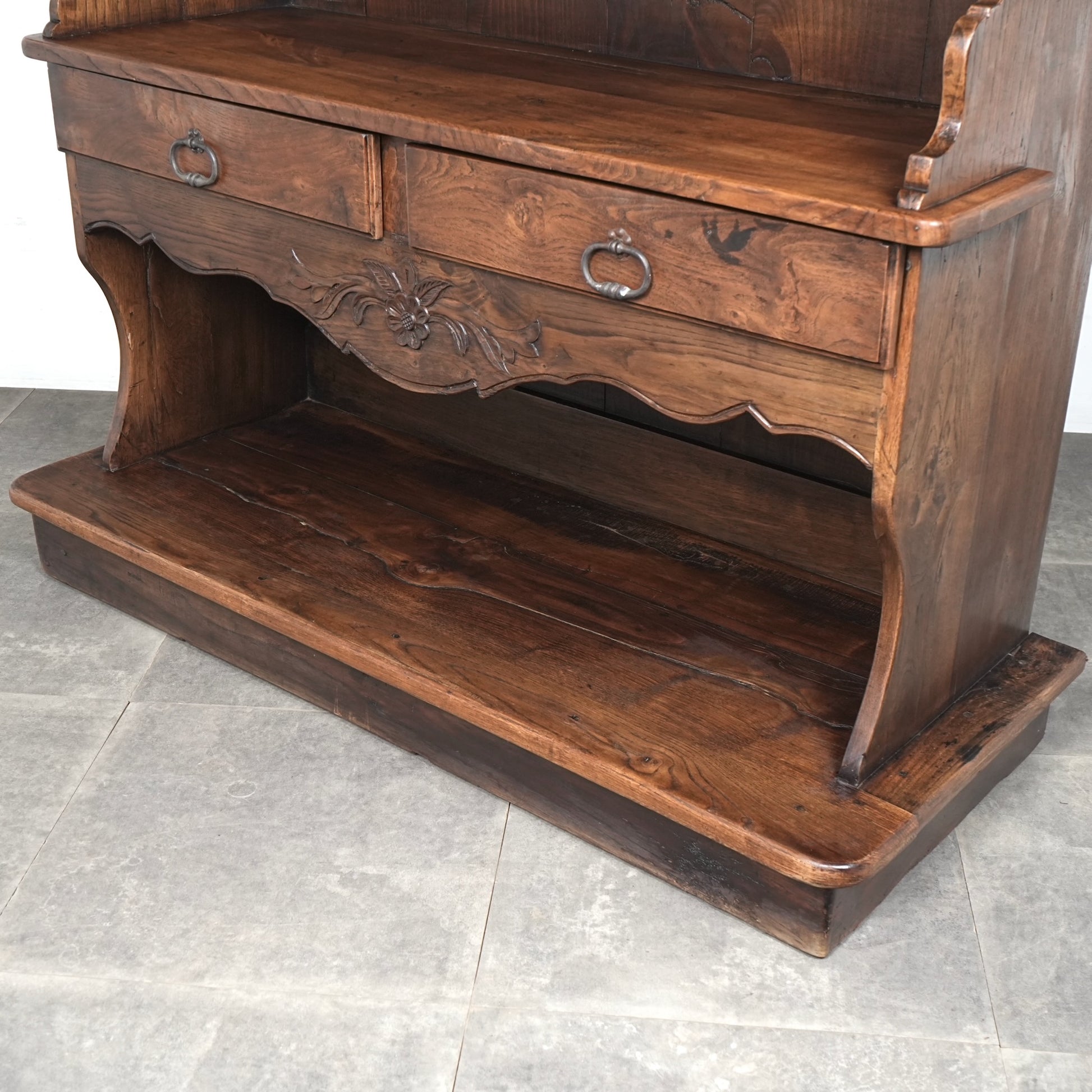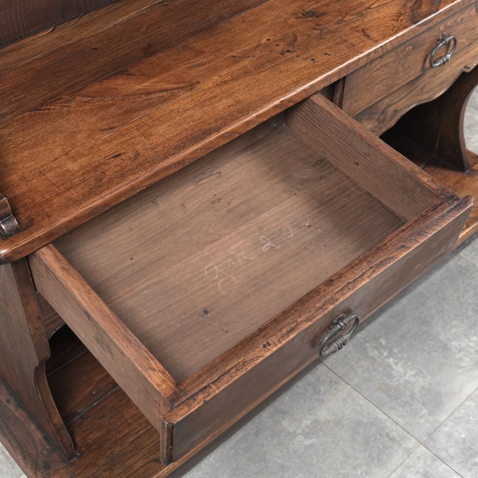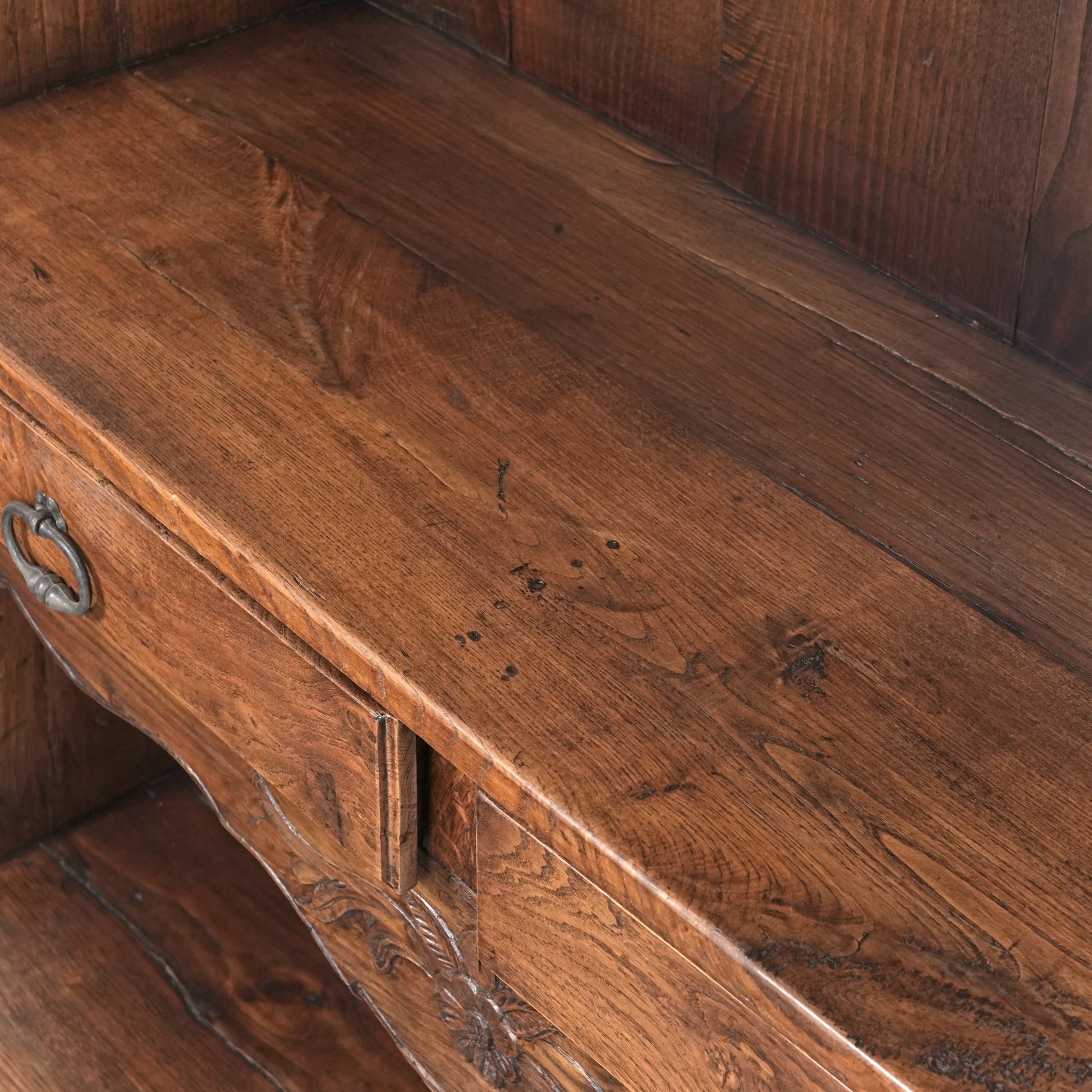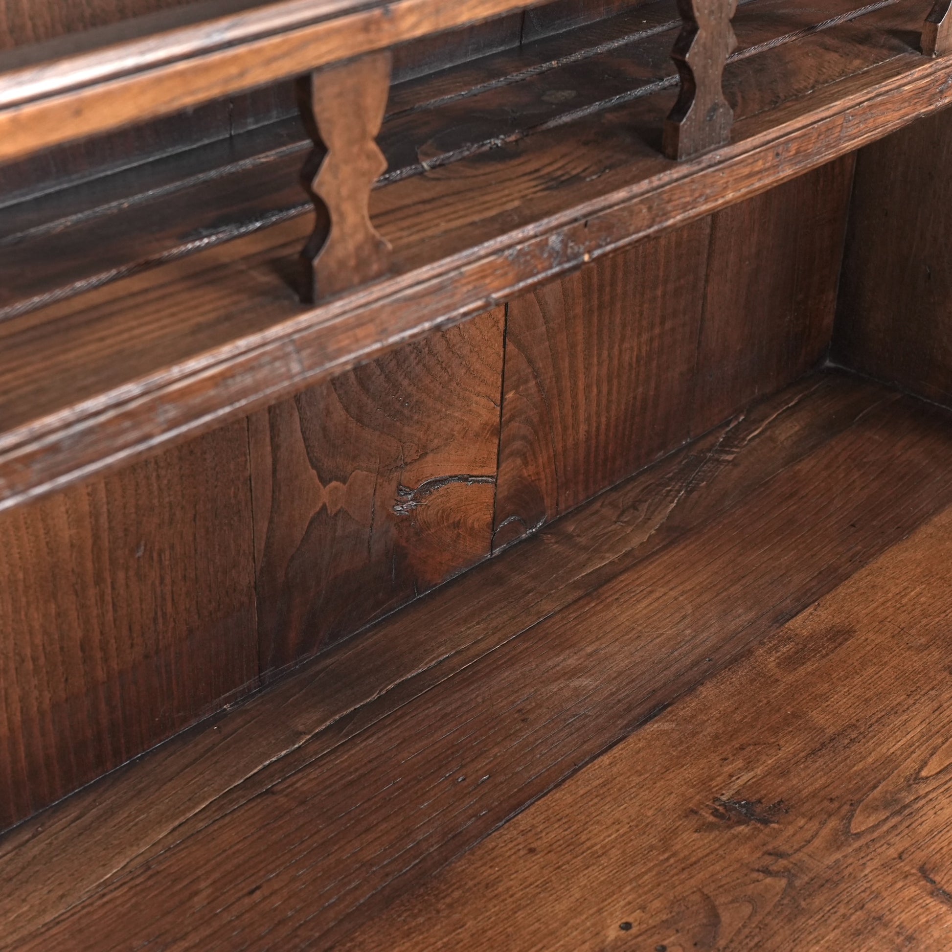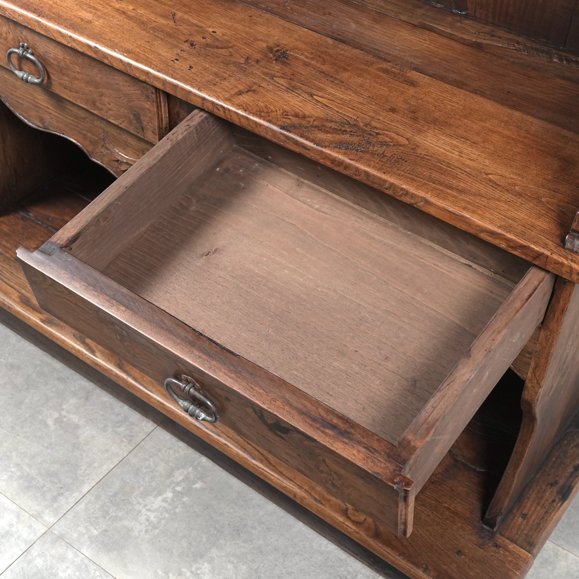 高品質なエルム無垢材ならではの美しい質感に加えて、全体に手作業で施された意匠からは当時の職人たちの高い技術と多大な労力を感じることができ、現代の製造コストでは絶対にこの価格で再現することができない、まさに100年物のアンティークならではの魅力が詰まったハイグレードな逸品と言えるでしょう。