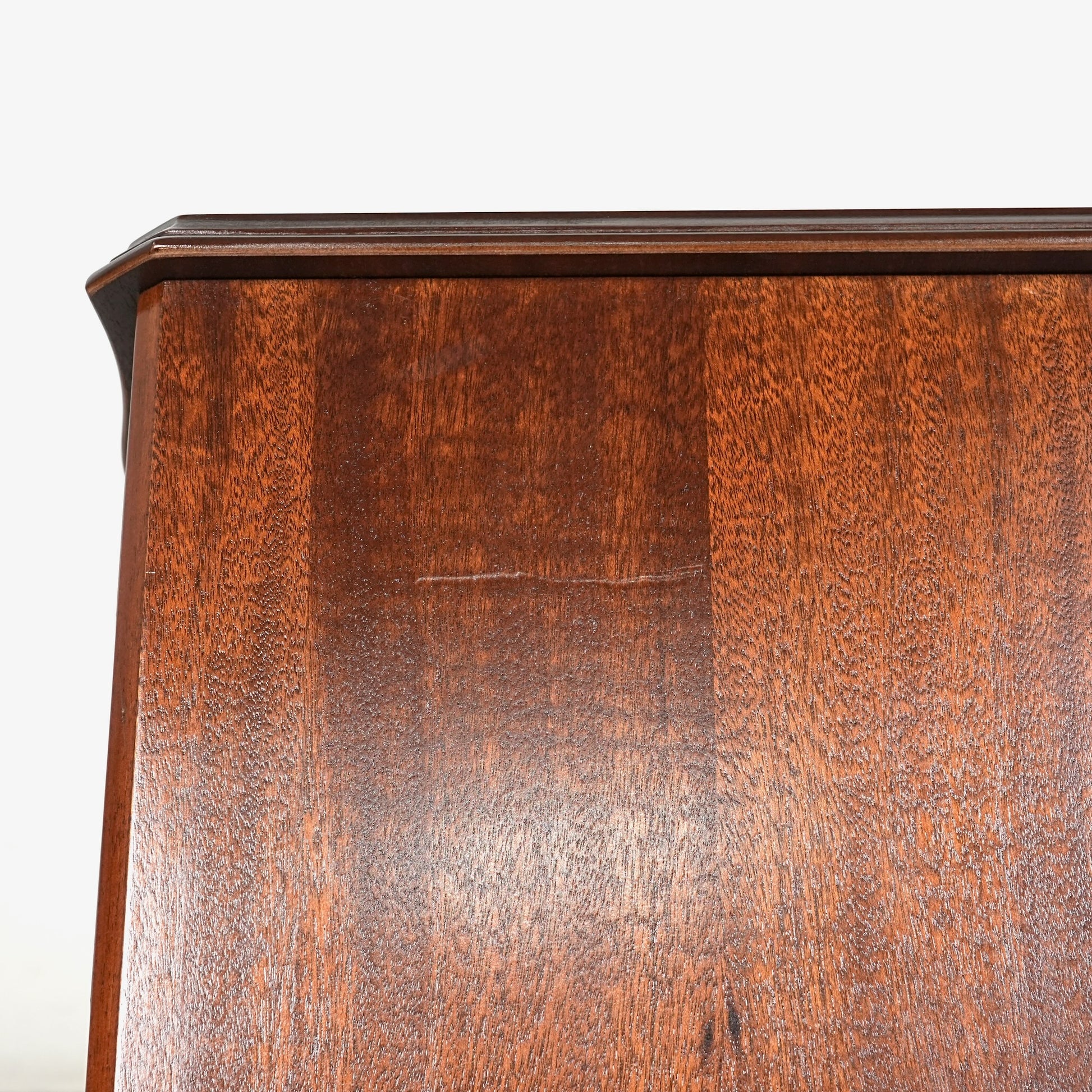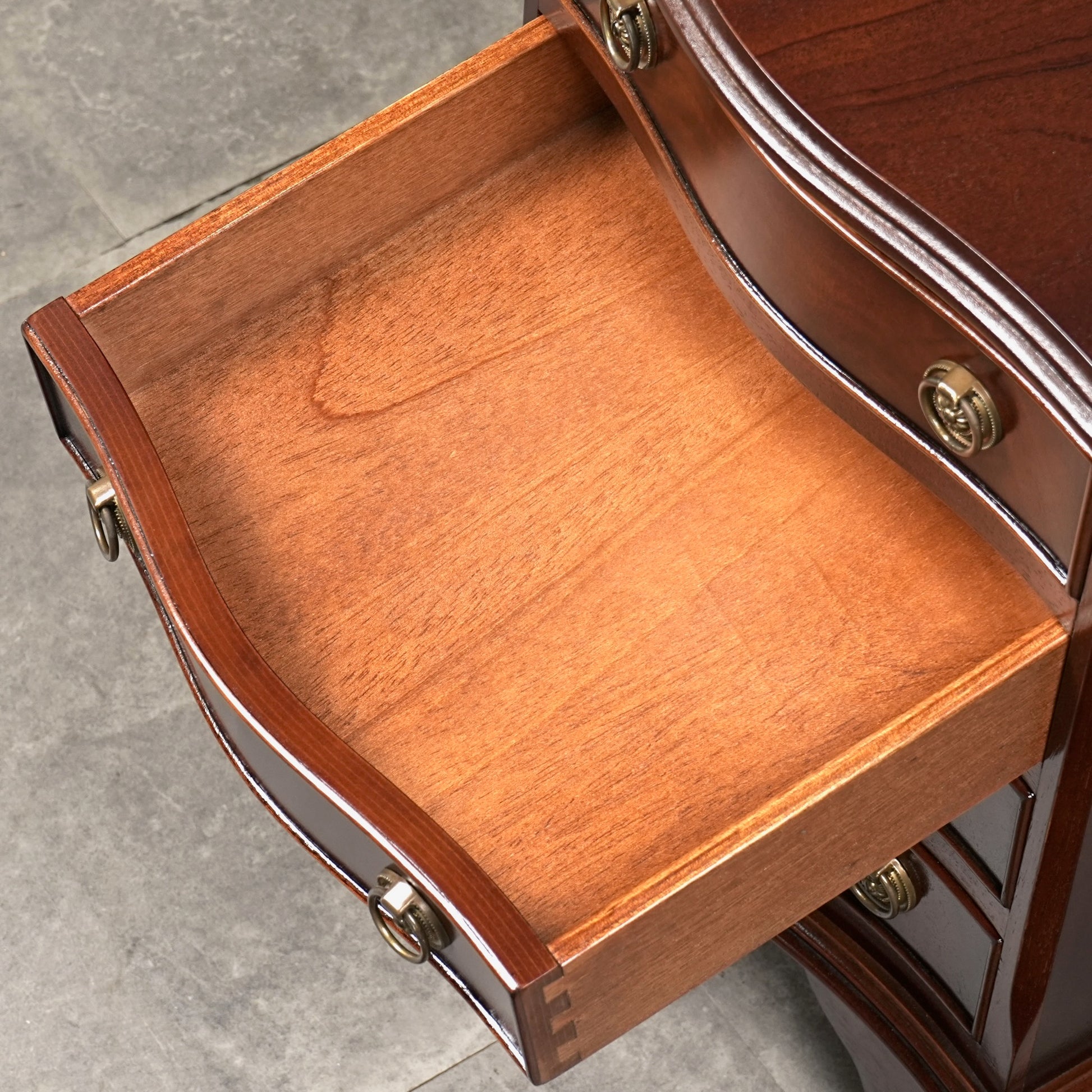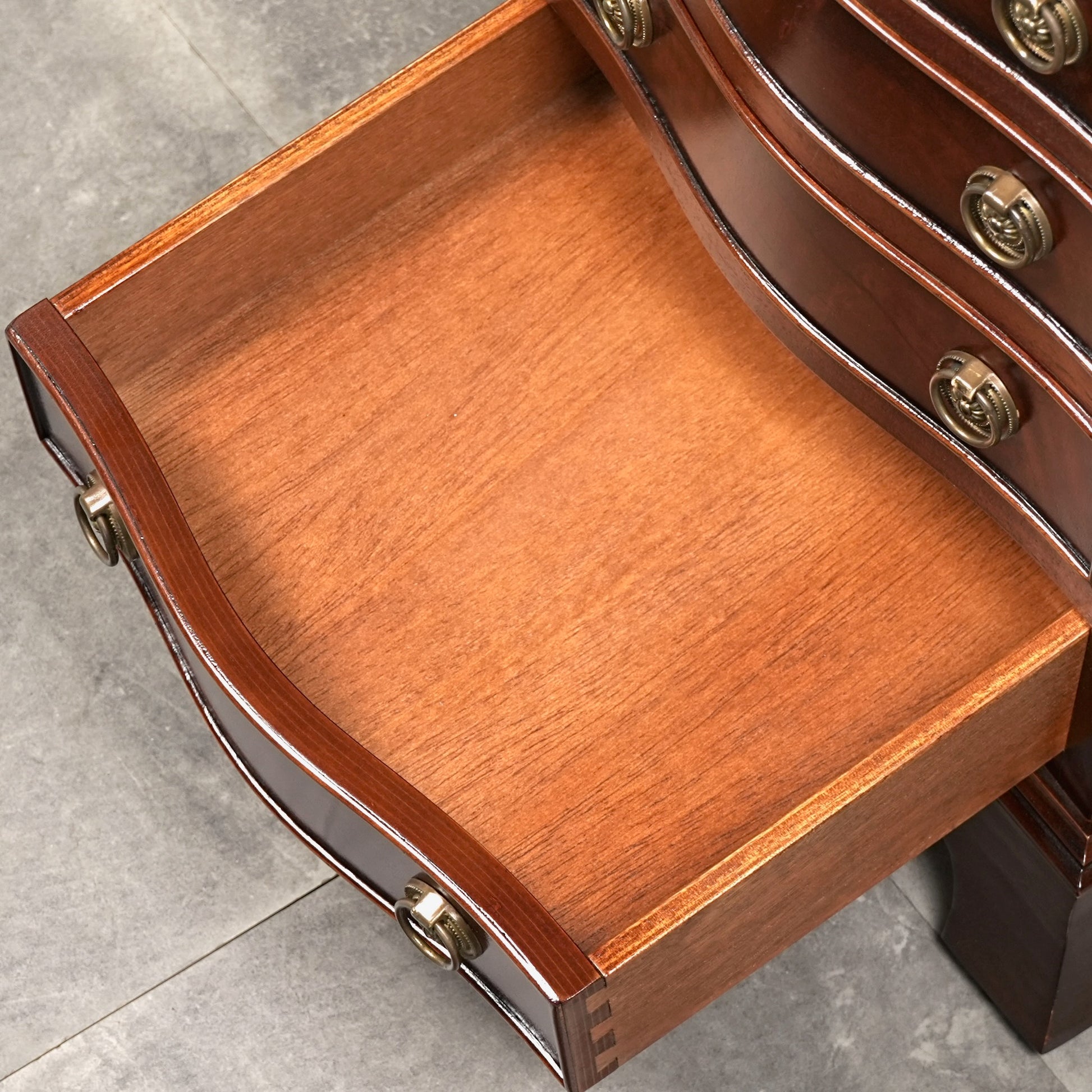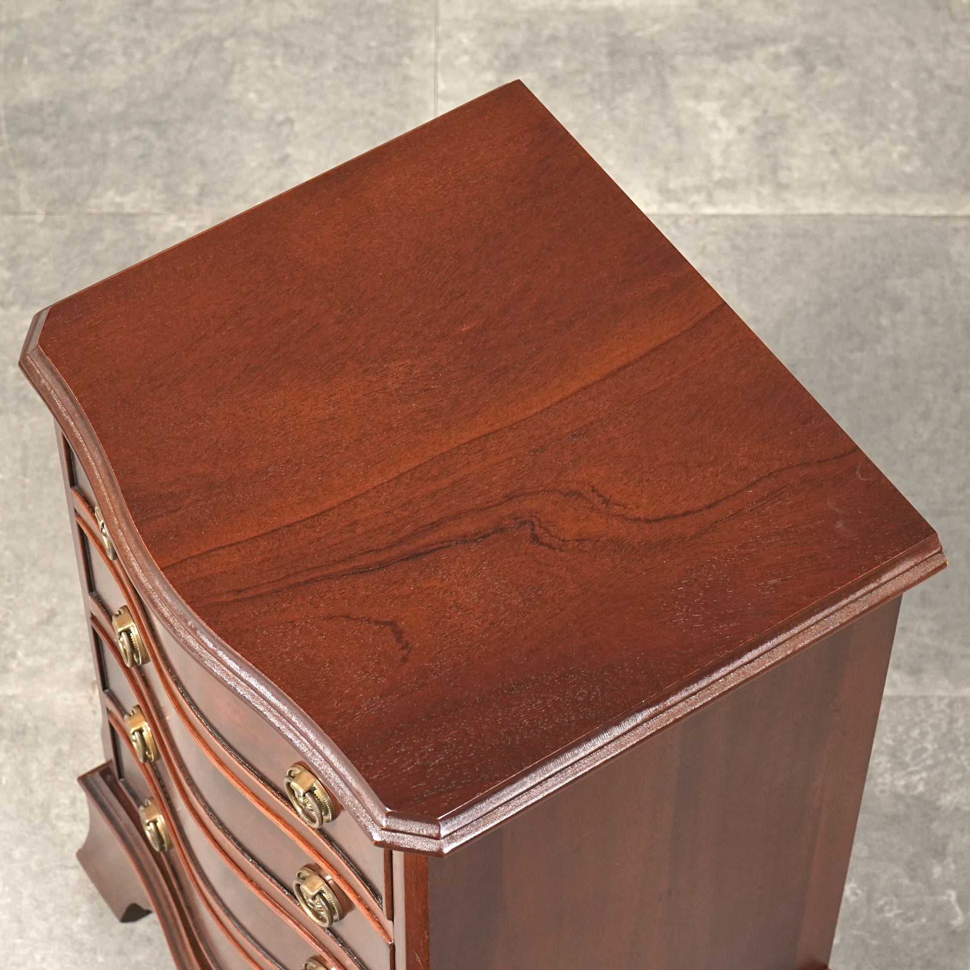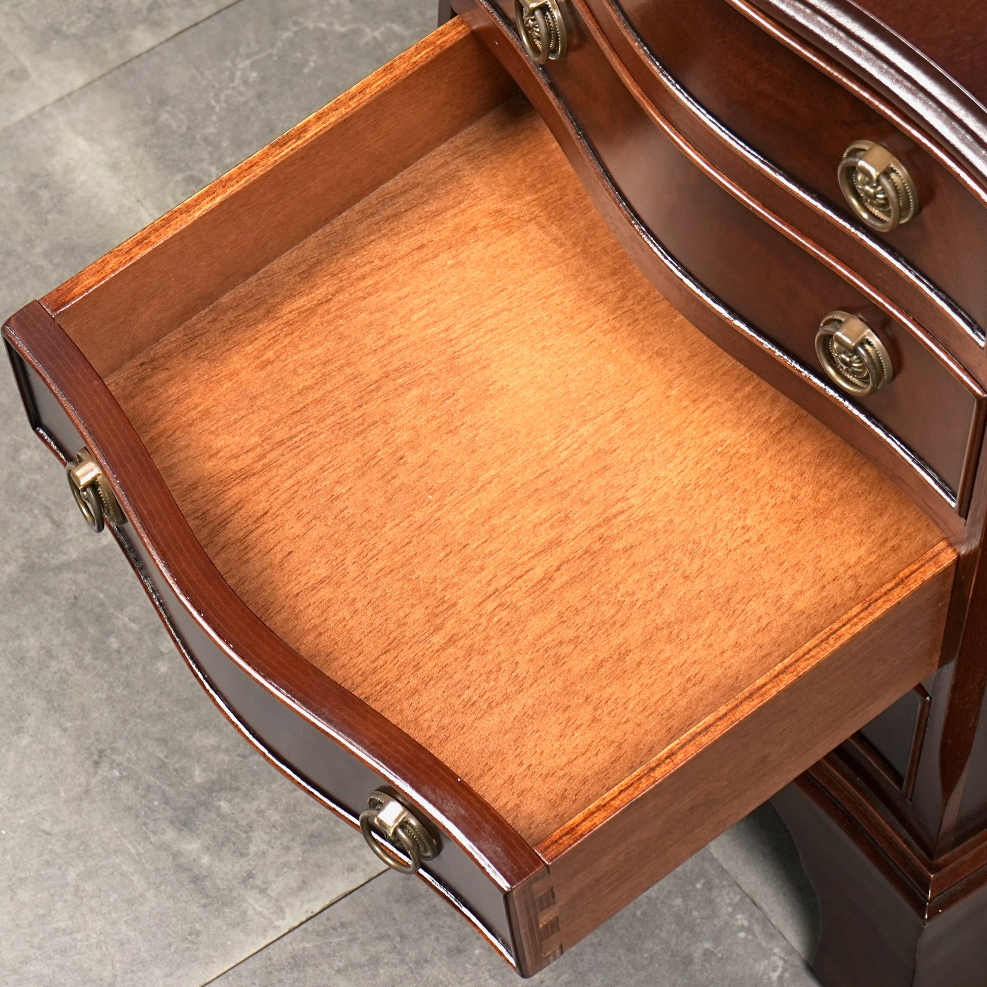 高品質なマホガニーならではの質感が印象的で、フロントの優雅な曲線やクラシックな取手も美しく、丁寧に作り込まれたディテールが際立つ上品な佇まいです。