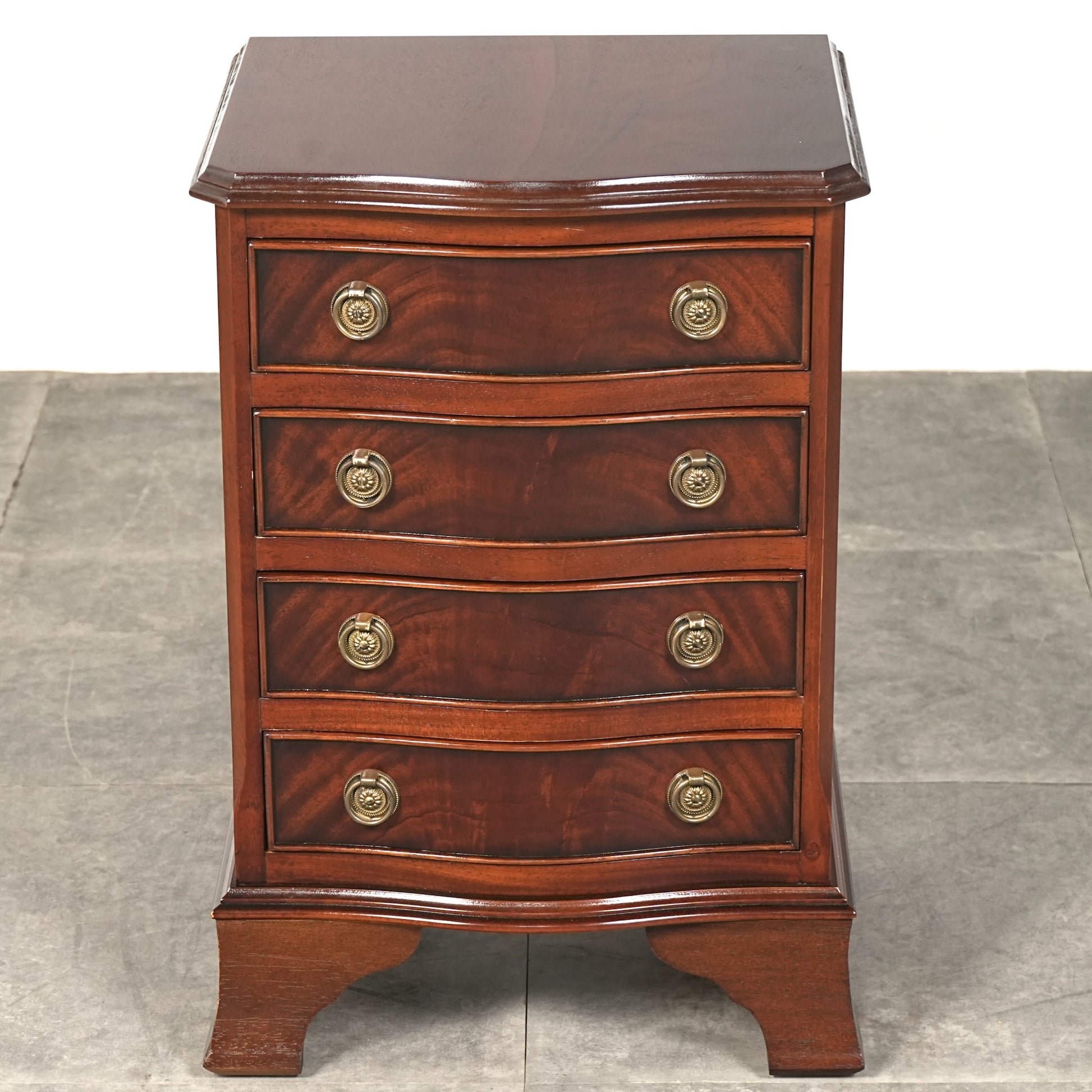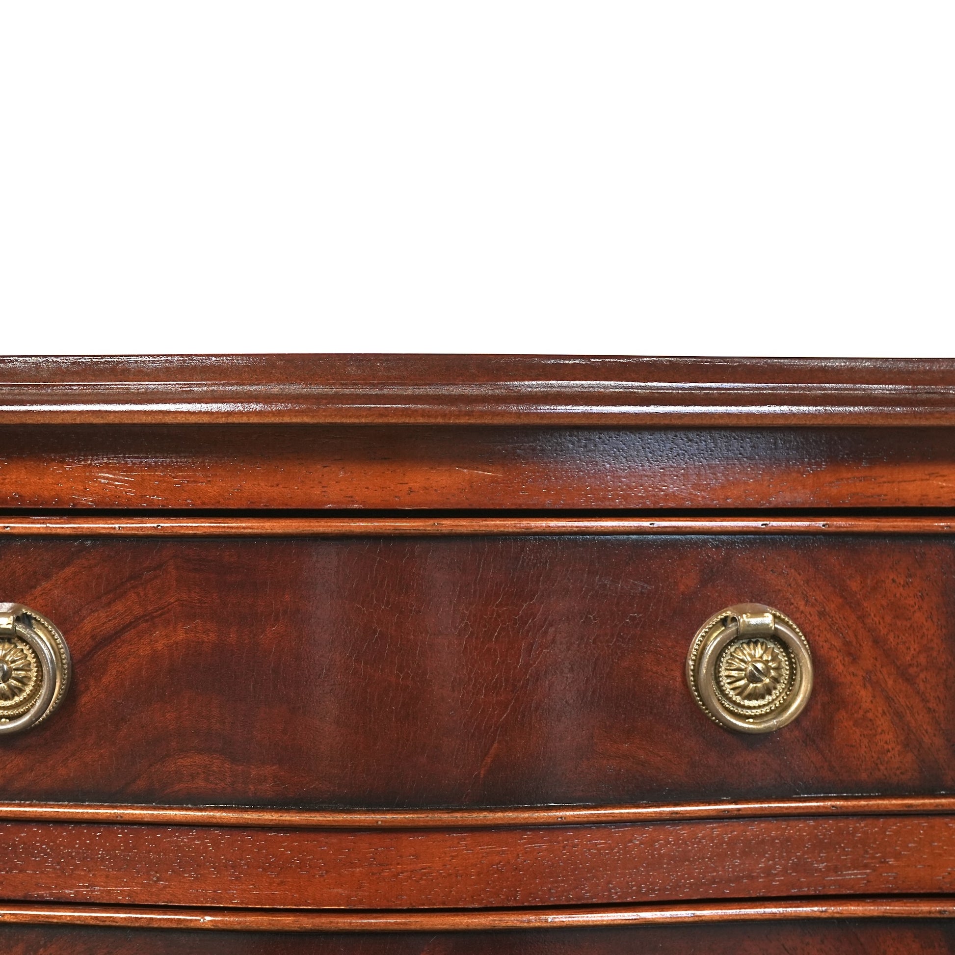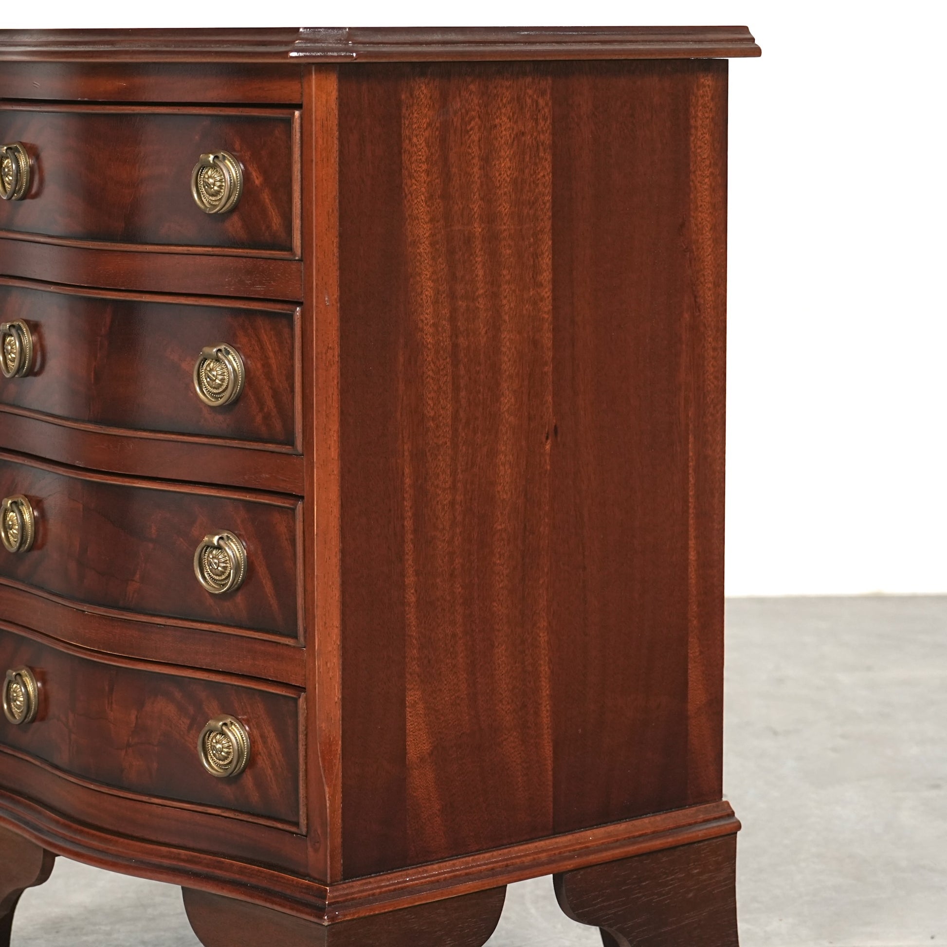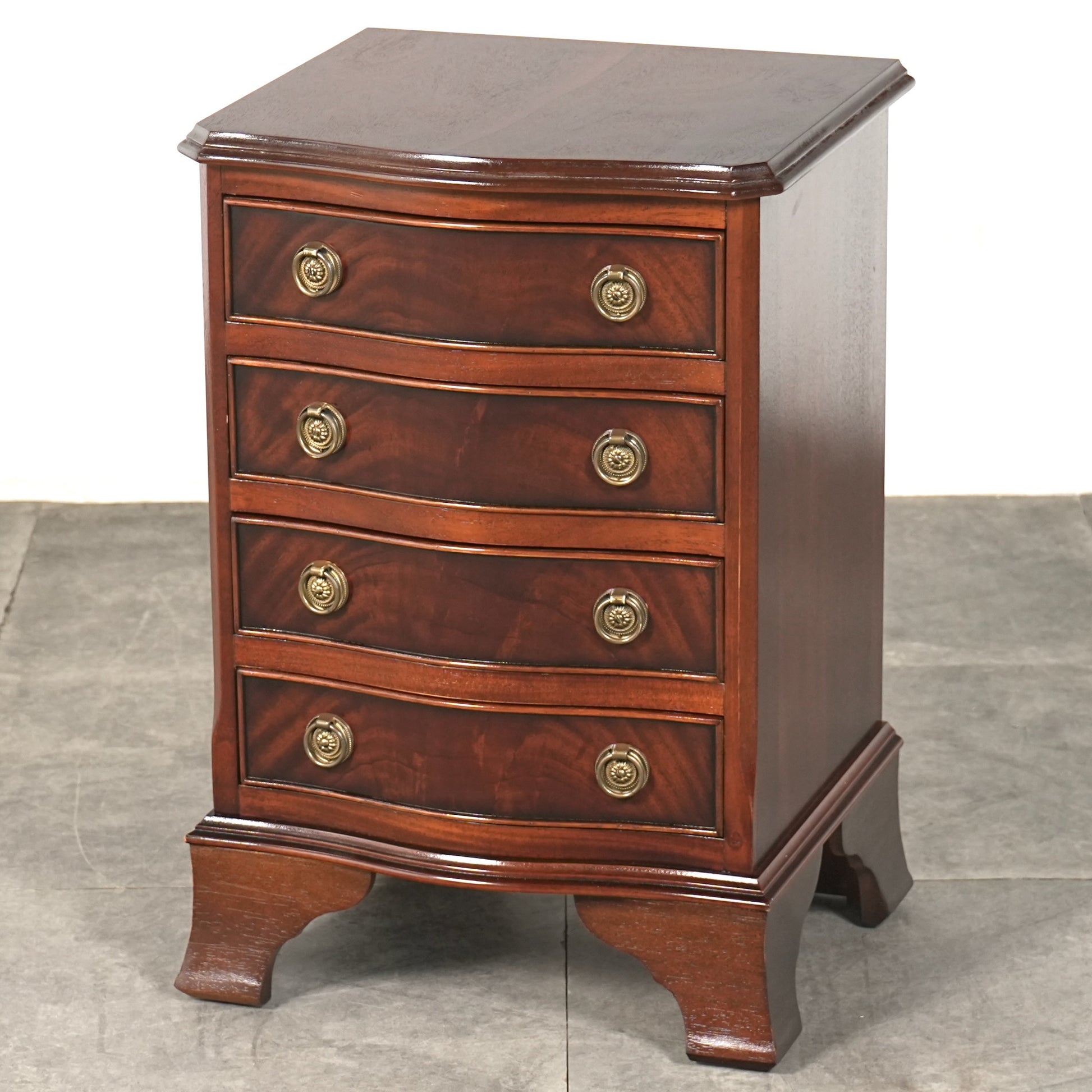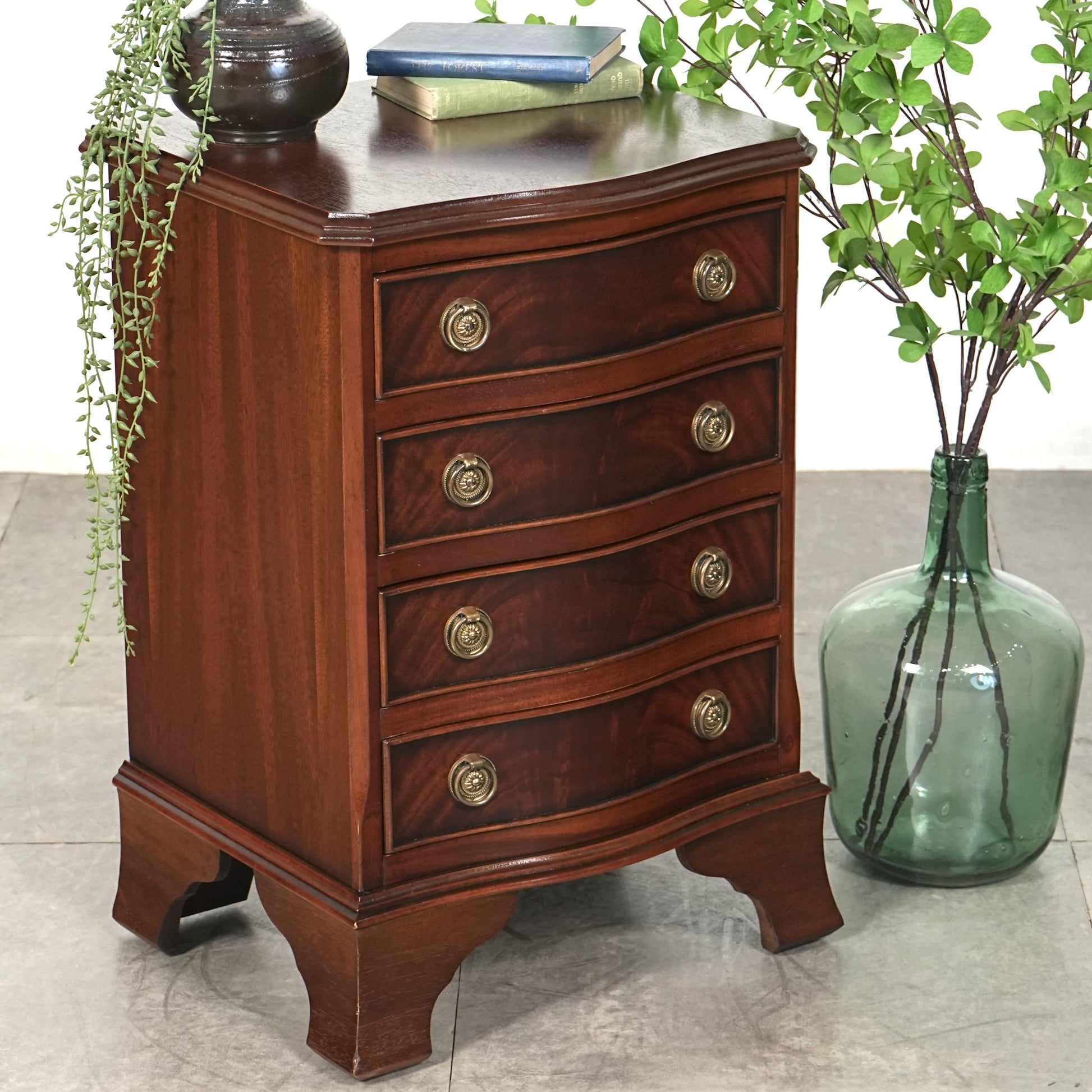 高品質なマホガニーならではの質感が印象的で、フロントの優雅な曲線やクラシックな取手も美しく、丁寧に作り込まれたディテールが際立つ上品な佇まいです。