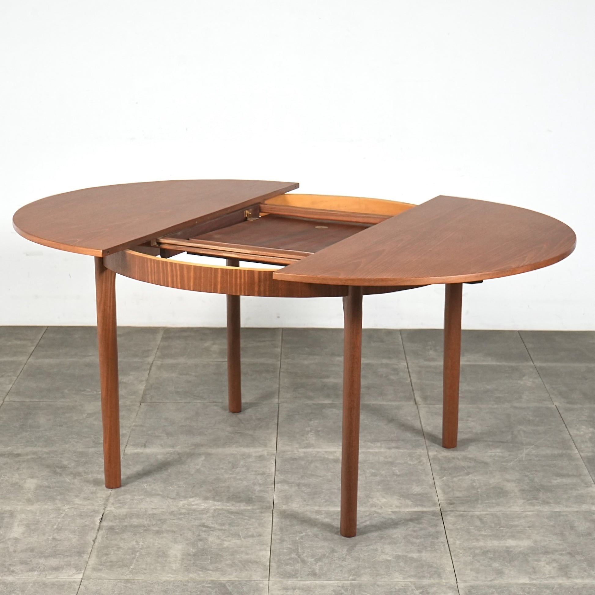 ヴィンテージファンには説明不要の人気アイテムで、現代の住環境との相性が良いチークの質感、美しいデザインと丁寧な作り込み、天板の便利な拡張機能など、英国ミッドセンチュリーの魅力が詰まった逸品です。