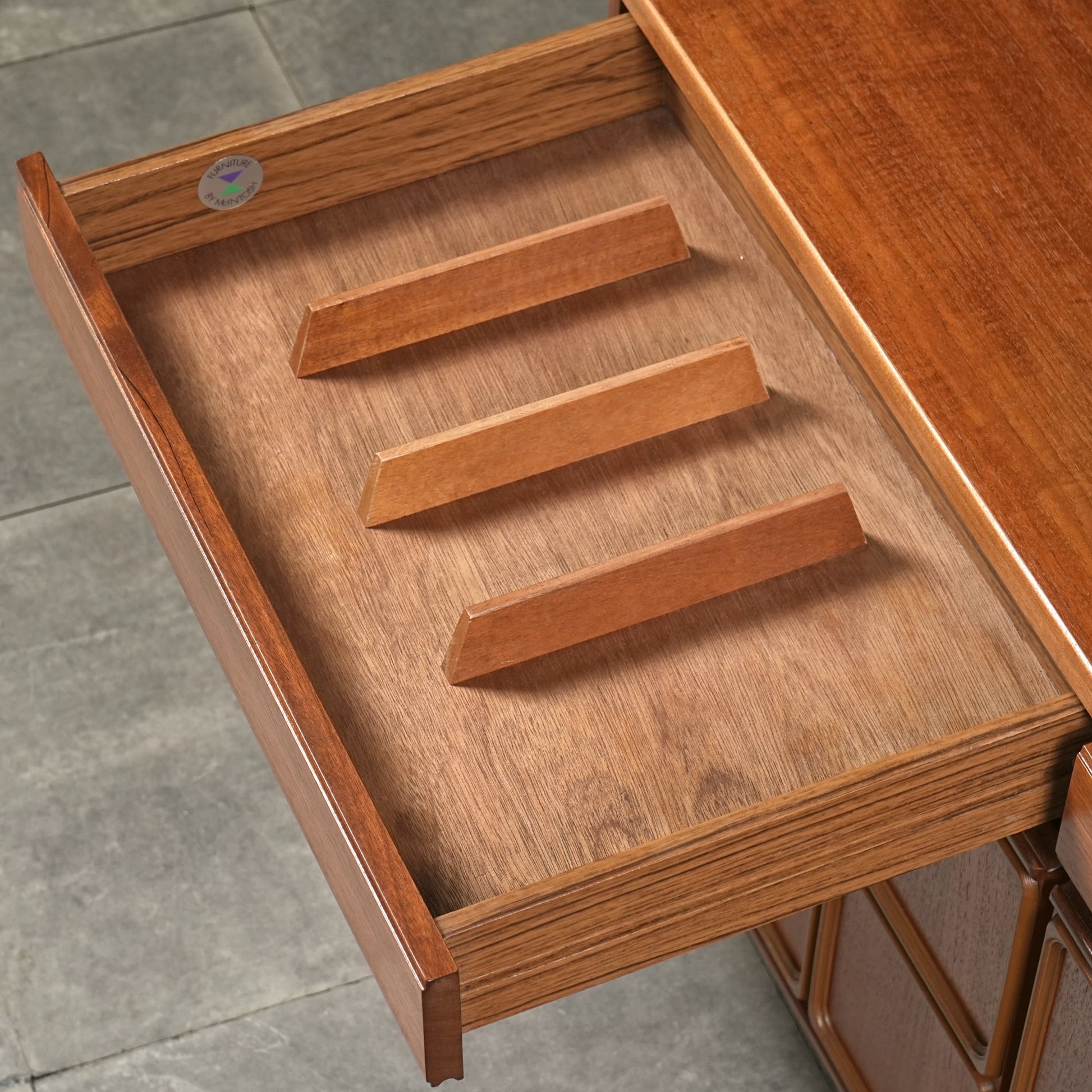 良質なチーク材を使用した高品質なミッドセンチュリー家具で知られ、G-PLANや NATHANと共に英国ヴィンテージの代名詞となりました。