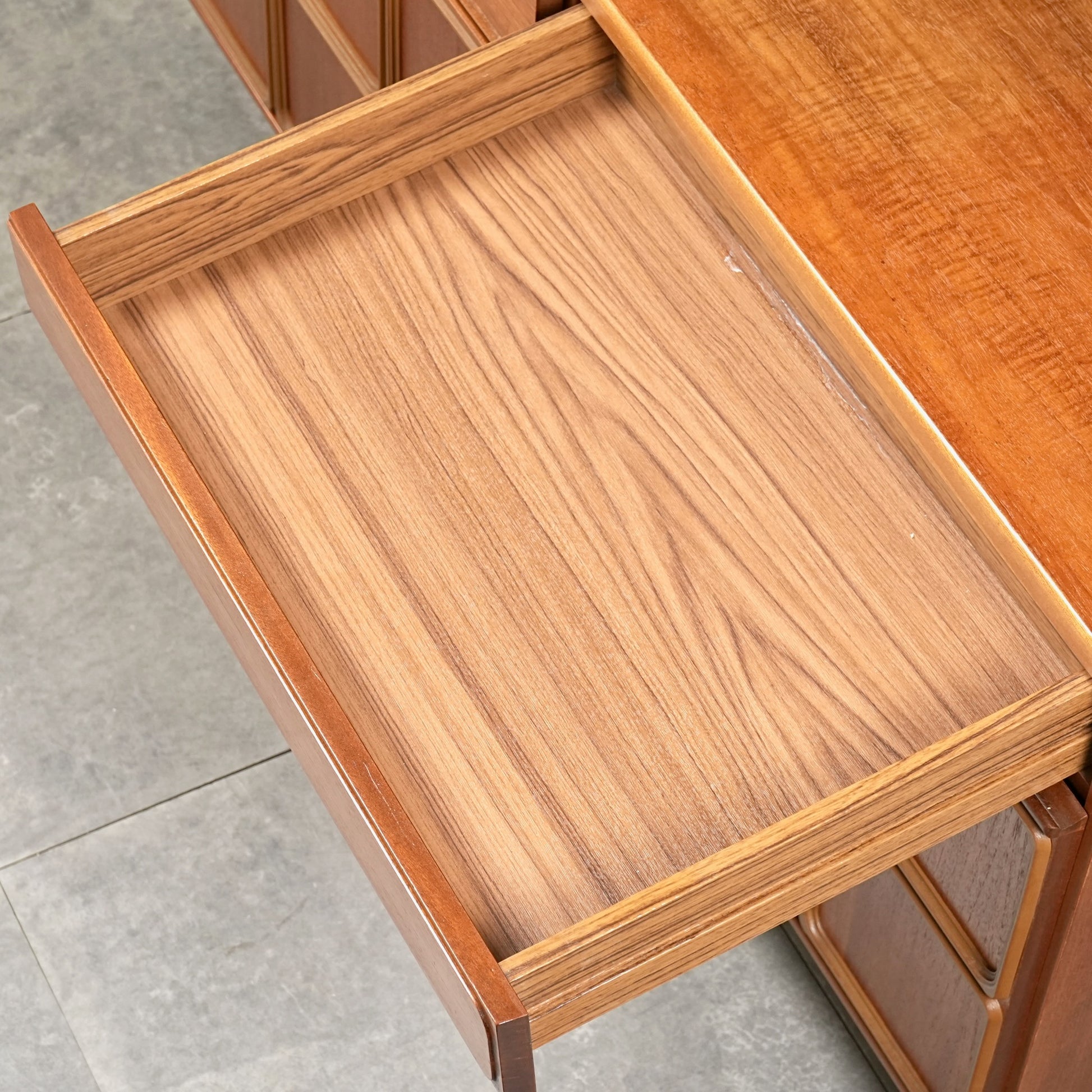 チーク材の美しさと実用性、収納力を兼ね備えたキャビネット