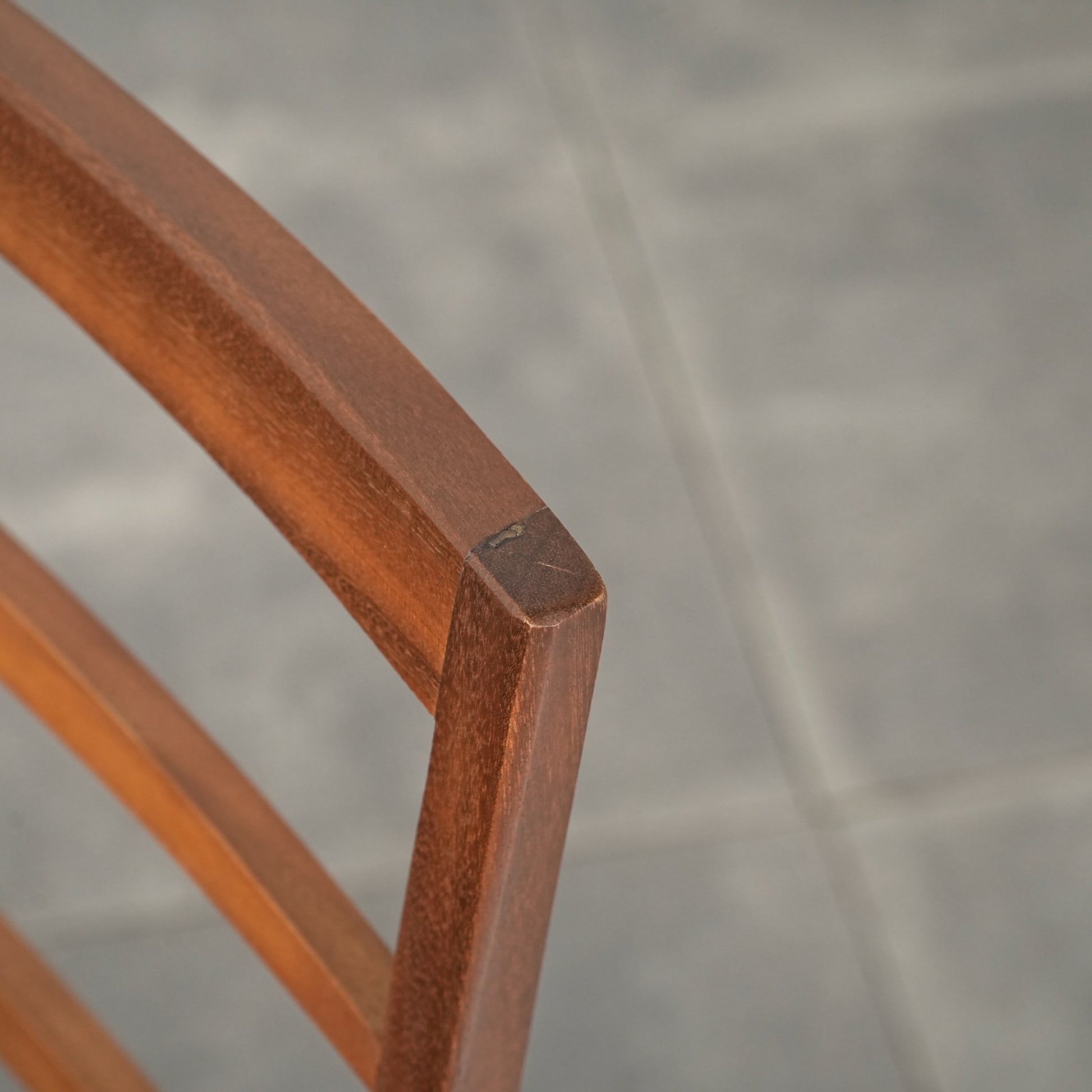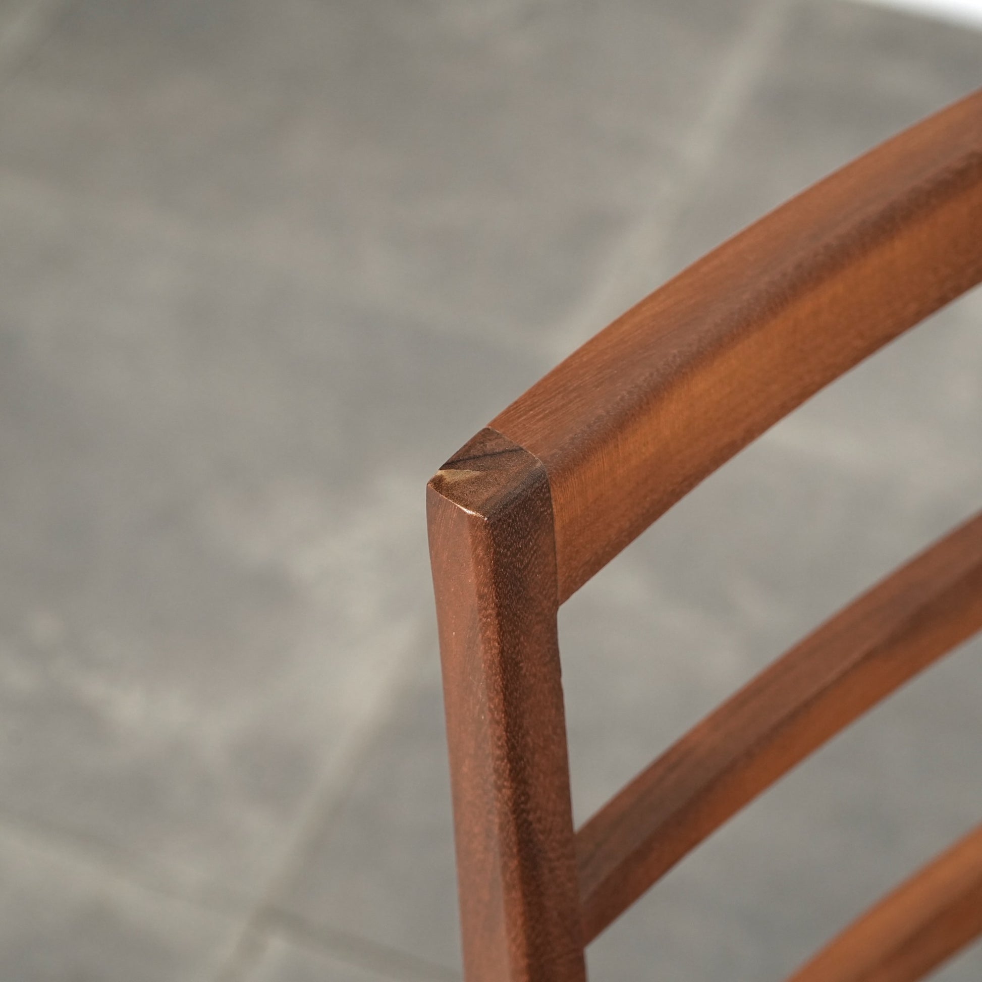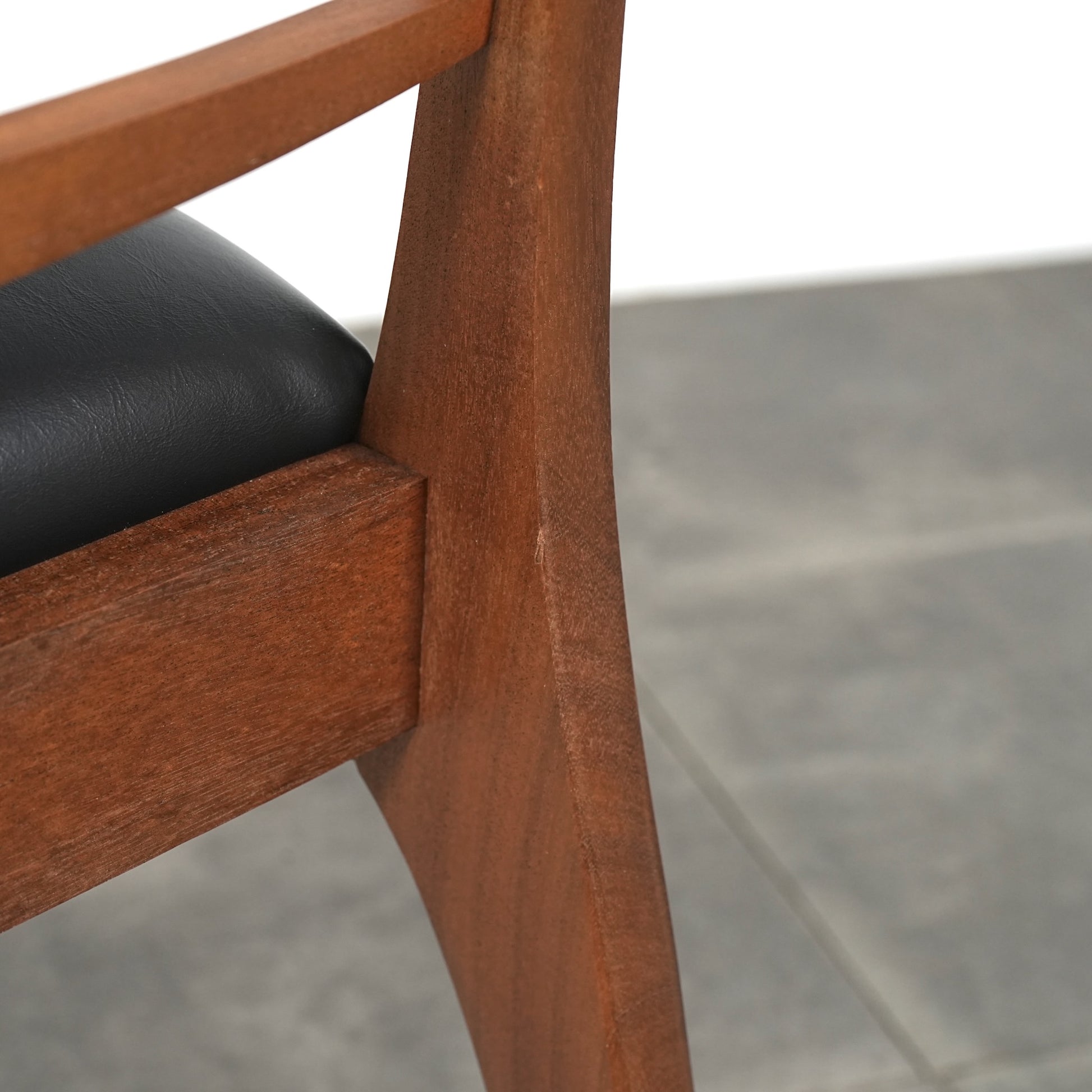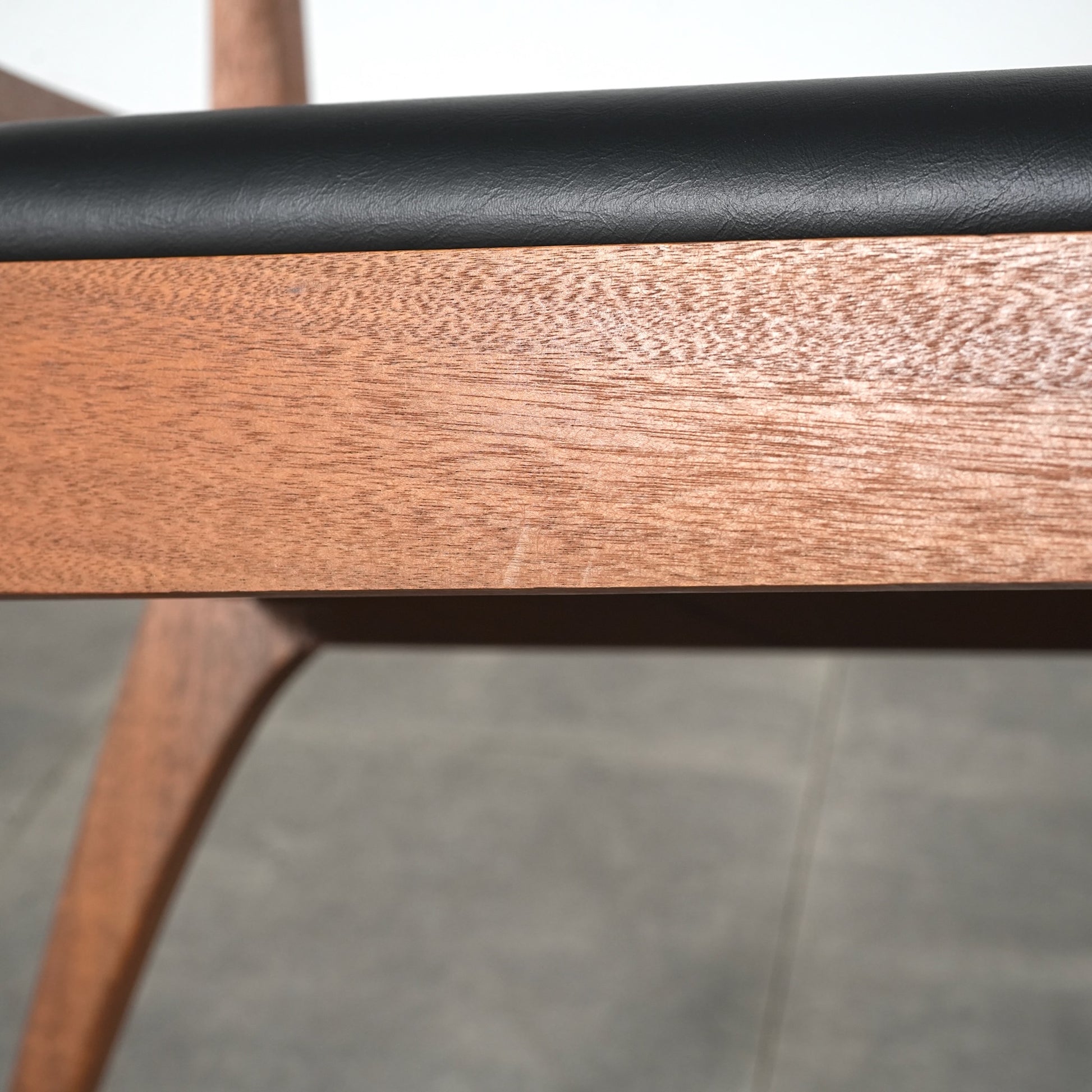 上質なチーク材を使用したフレームは、シャープで美しいフォルムが印象的。