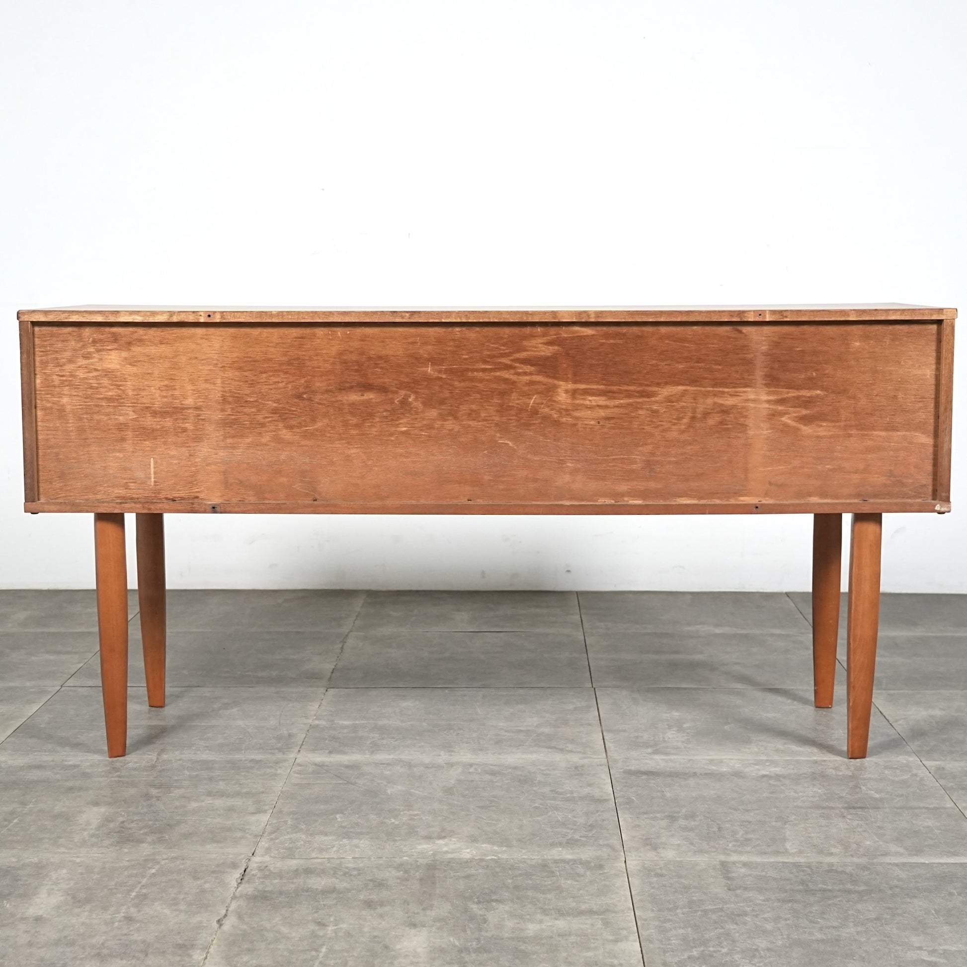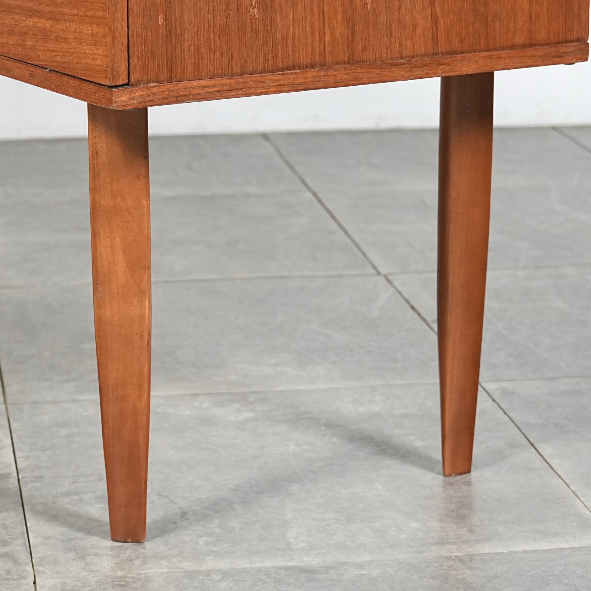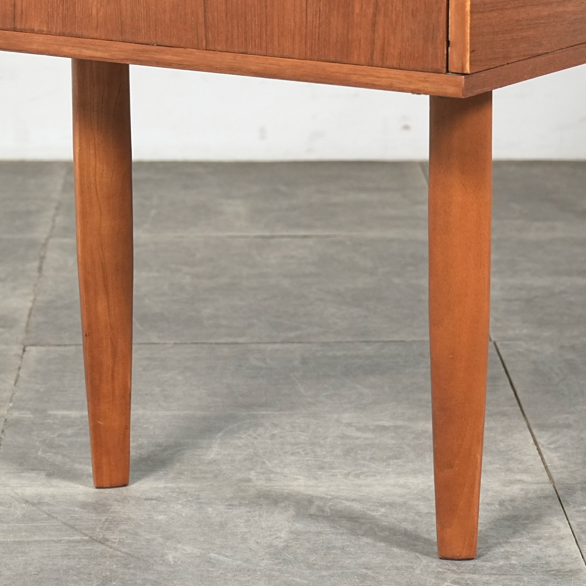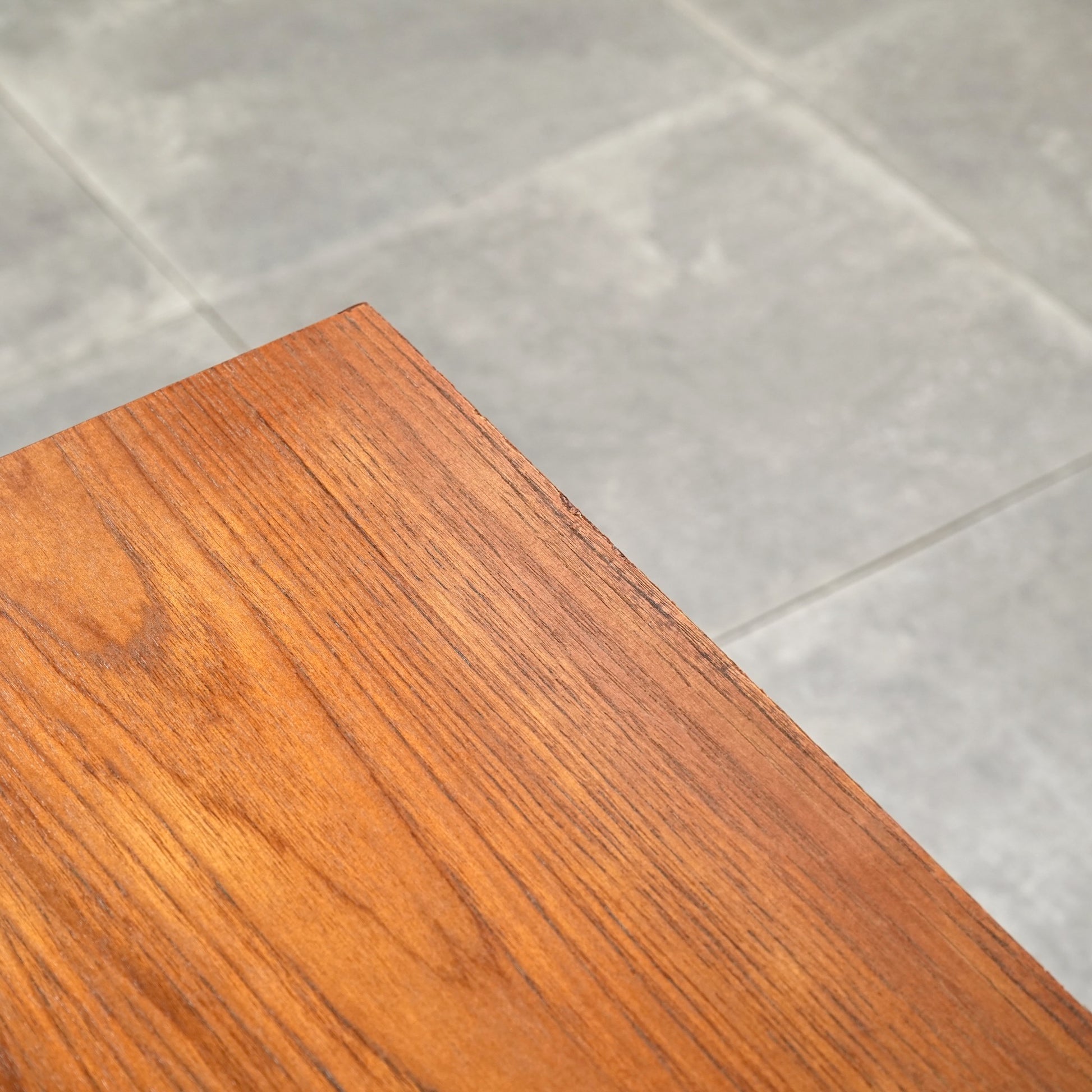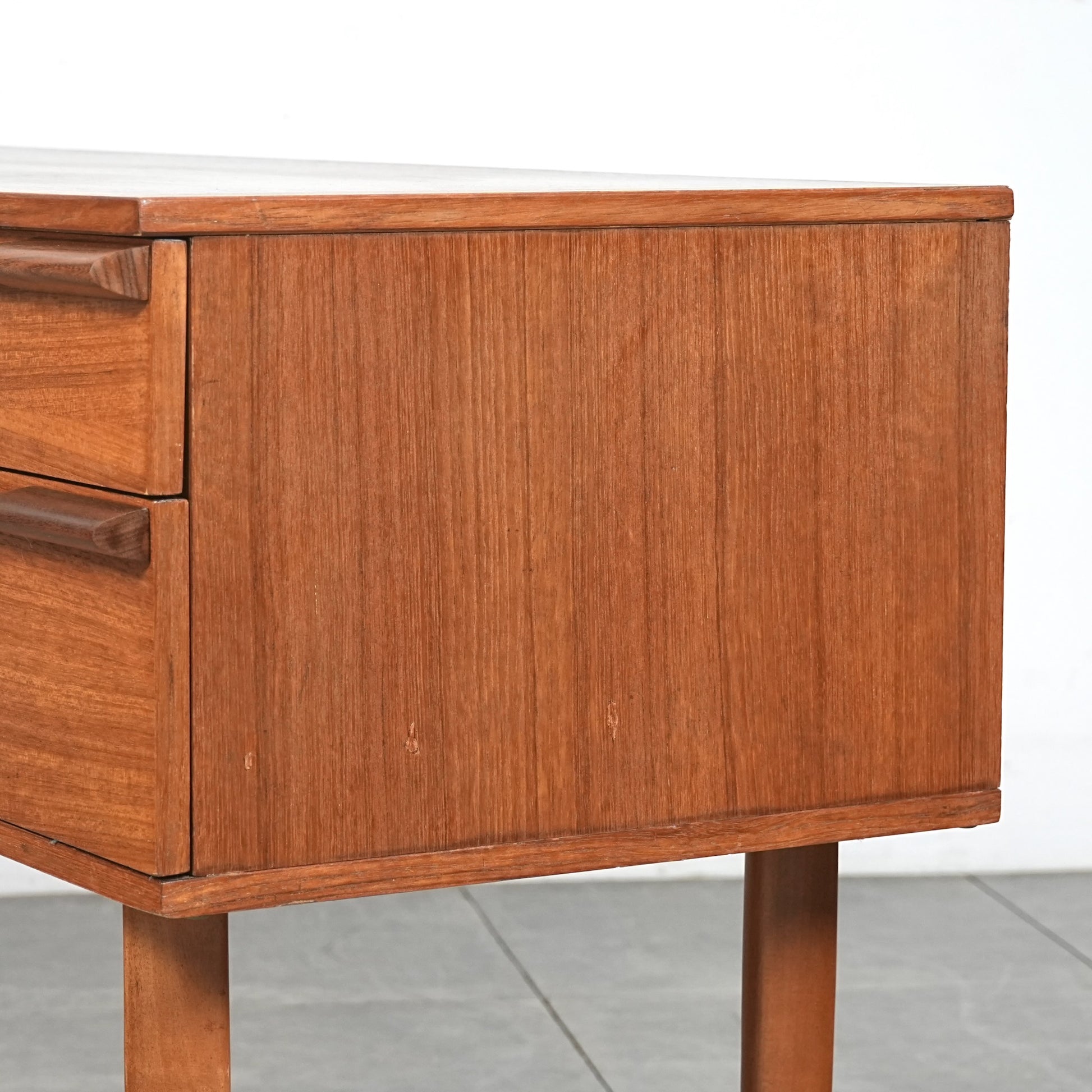 デンマークをはじめとするスカンジナビアスタイル(北欧デザイン)の影響を感じさせる佇まいで、良質なチーク材の見事な質感の中に削り出しで作られたシャープな取手が良いアクセントとなったています。