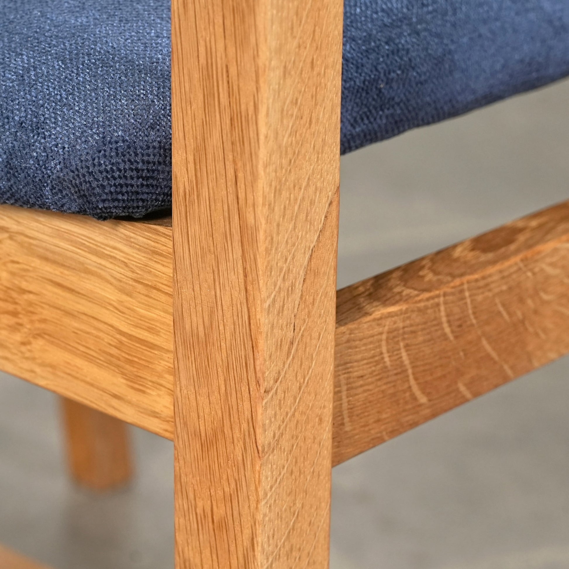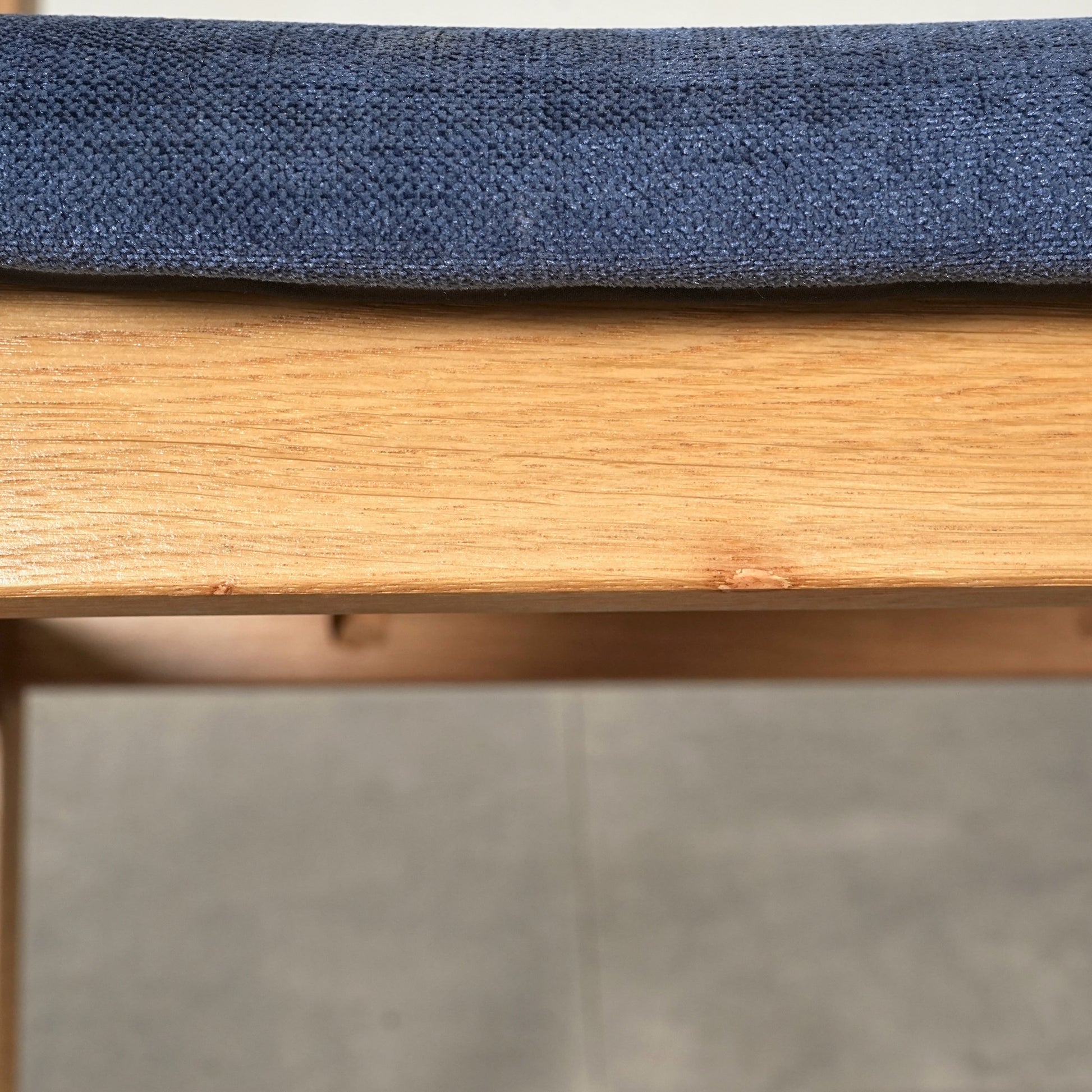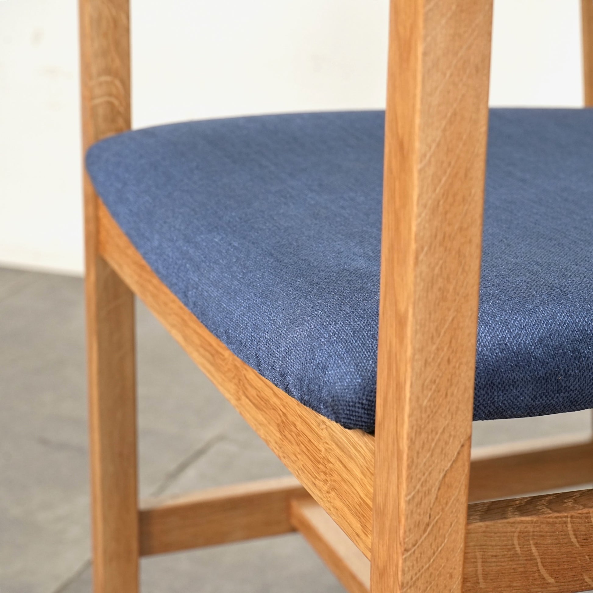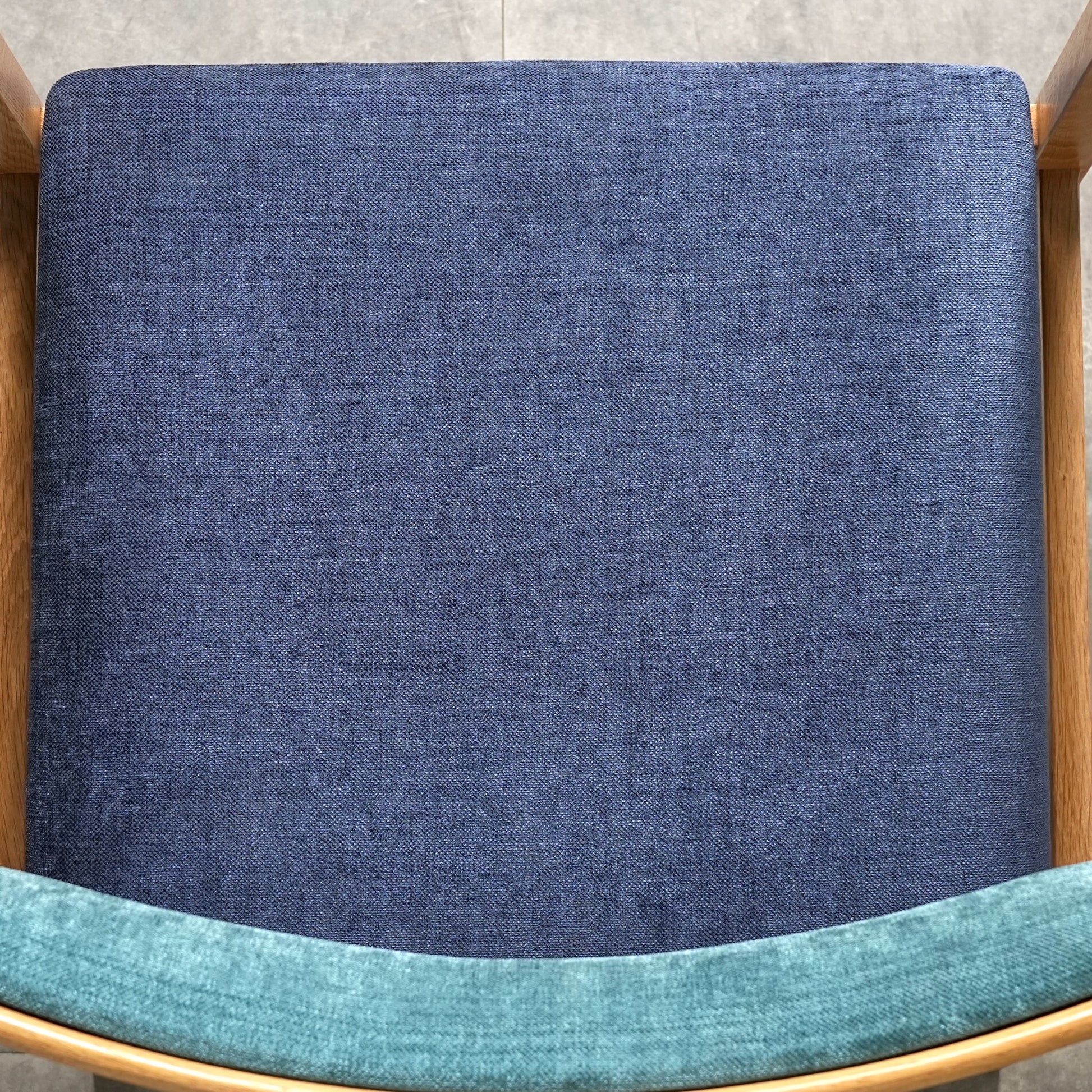 ガタつきやグラつきの修正はもちろんのこと、フレームは素材の魅力引き出すよう丁寧に磨き上げ、背もたれと座面はアクセントとなるカラーリングで張り替えました。