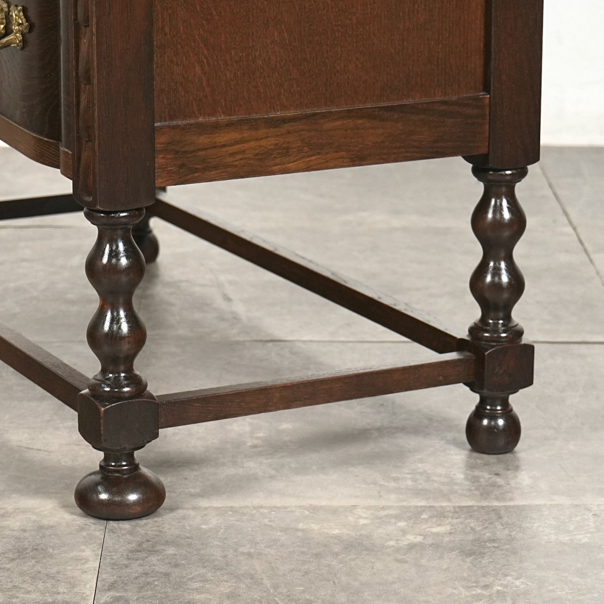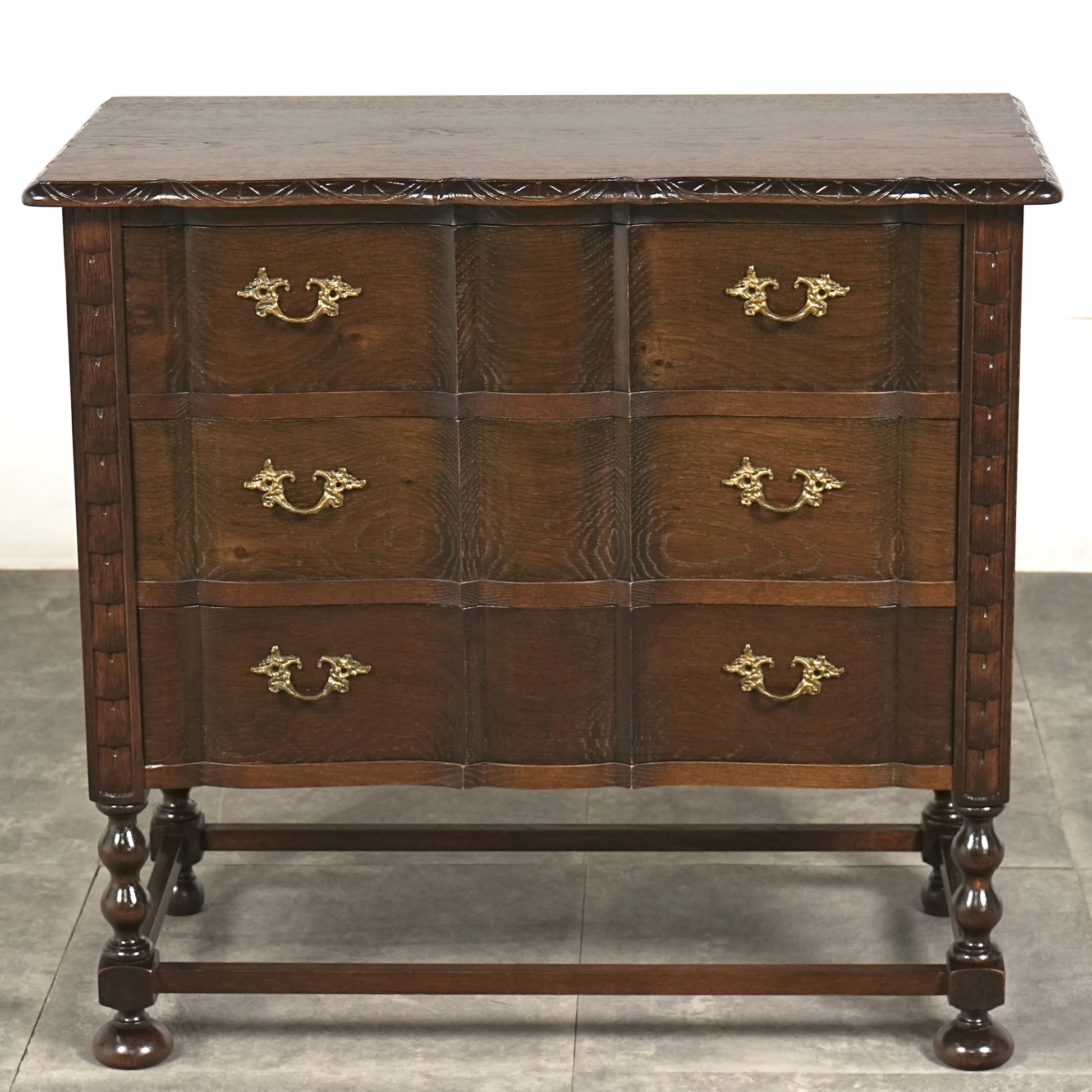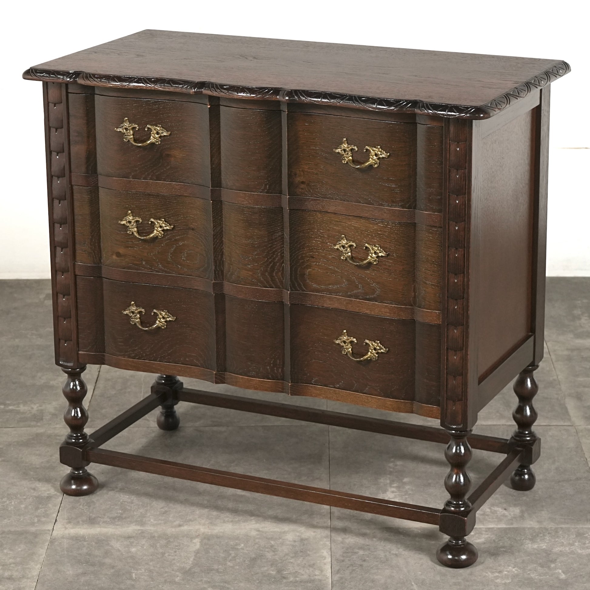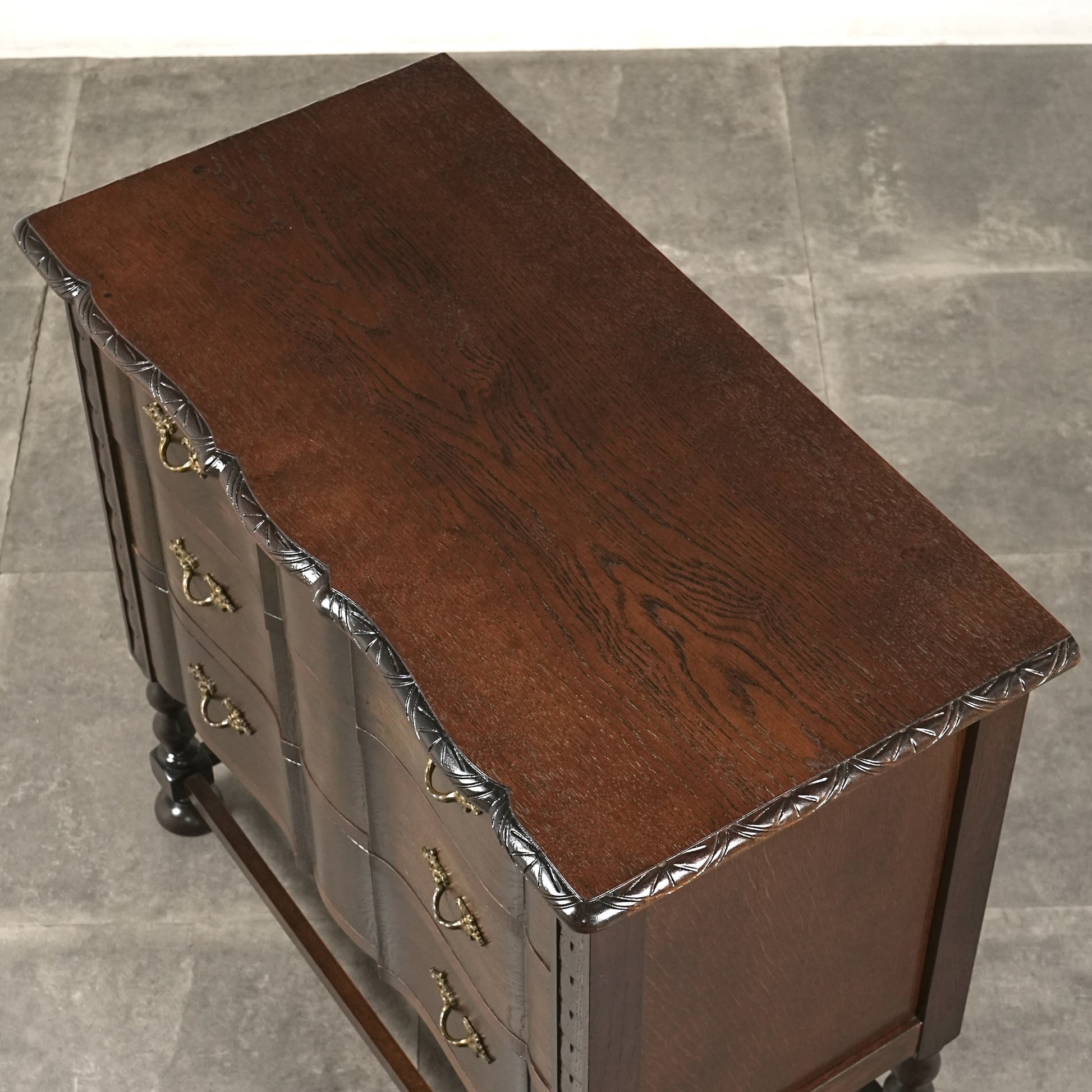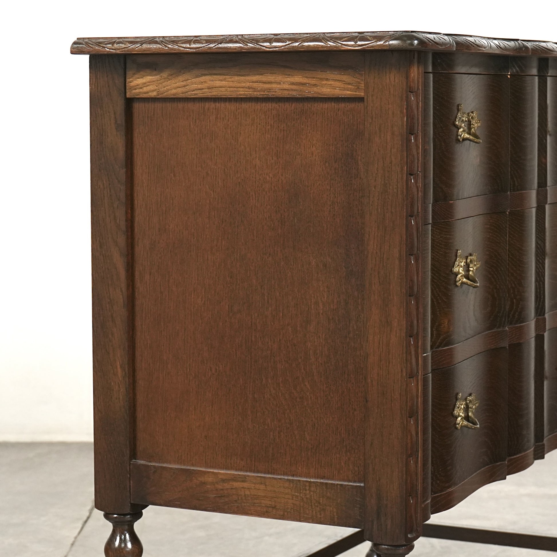 艶やかなオーク材の質感が際立つ仕上がりで、前面の波打つような立体的なデザインがひときわ目を引きます。