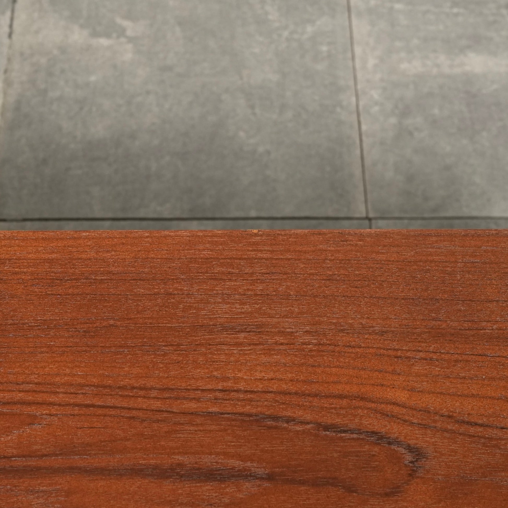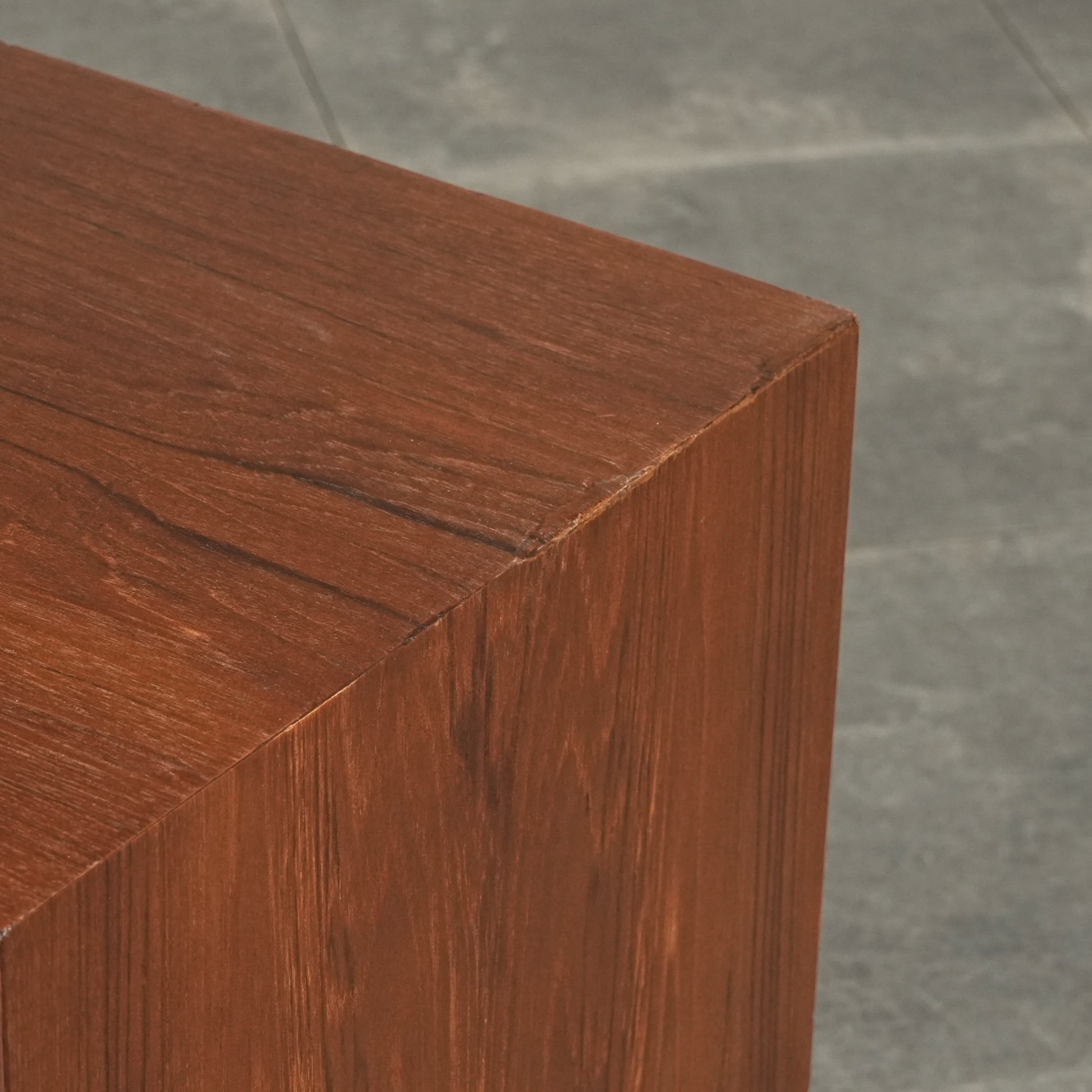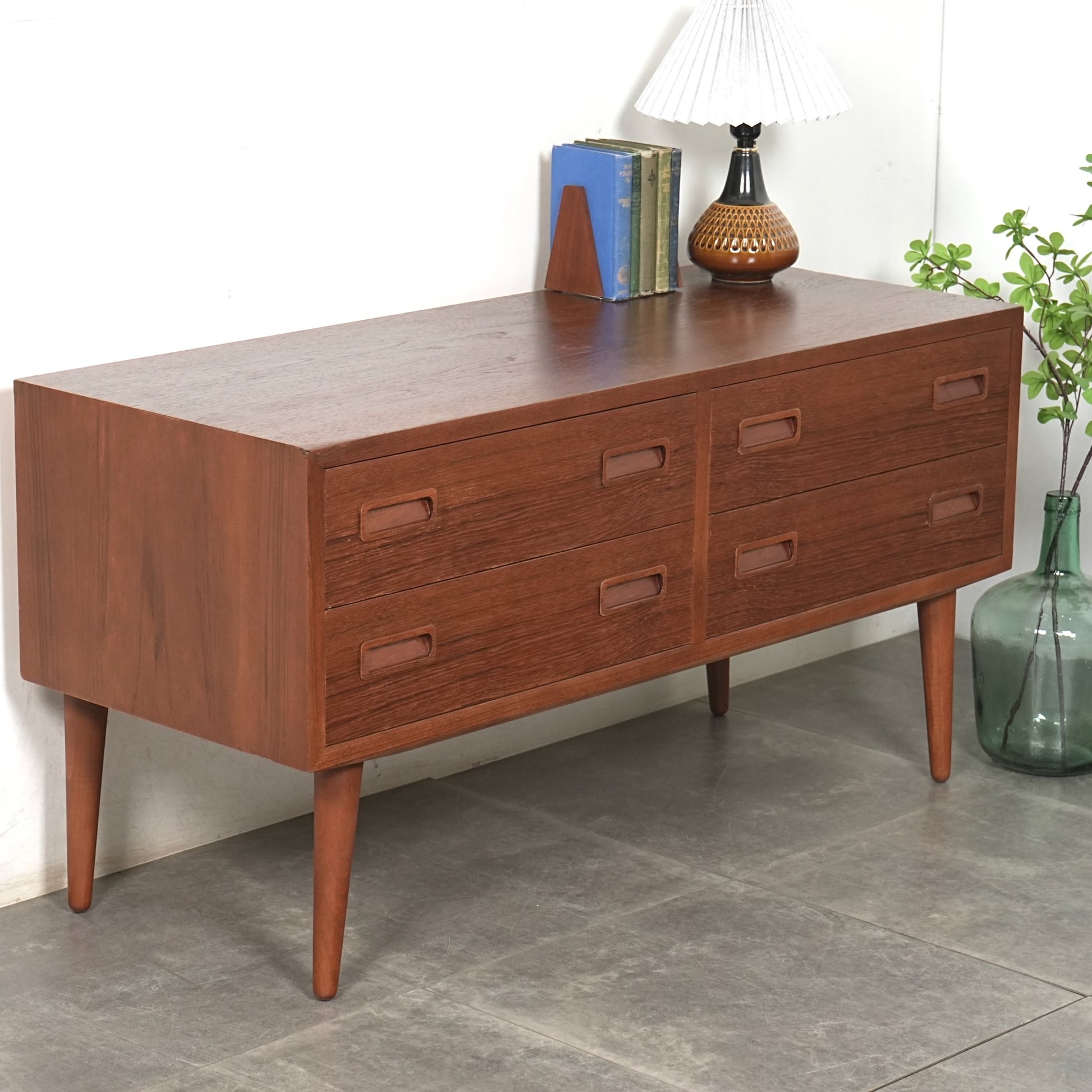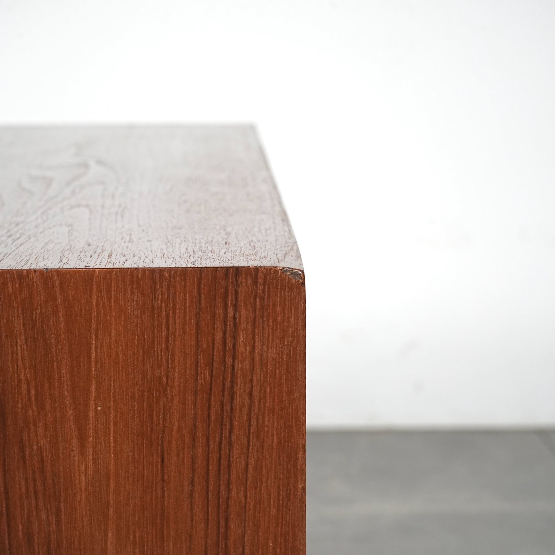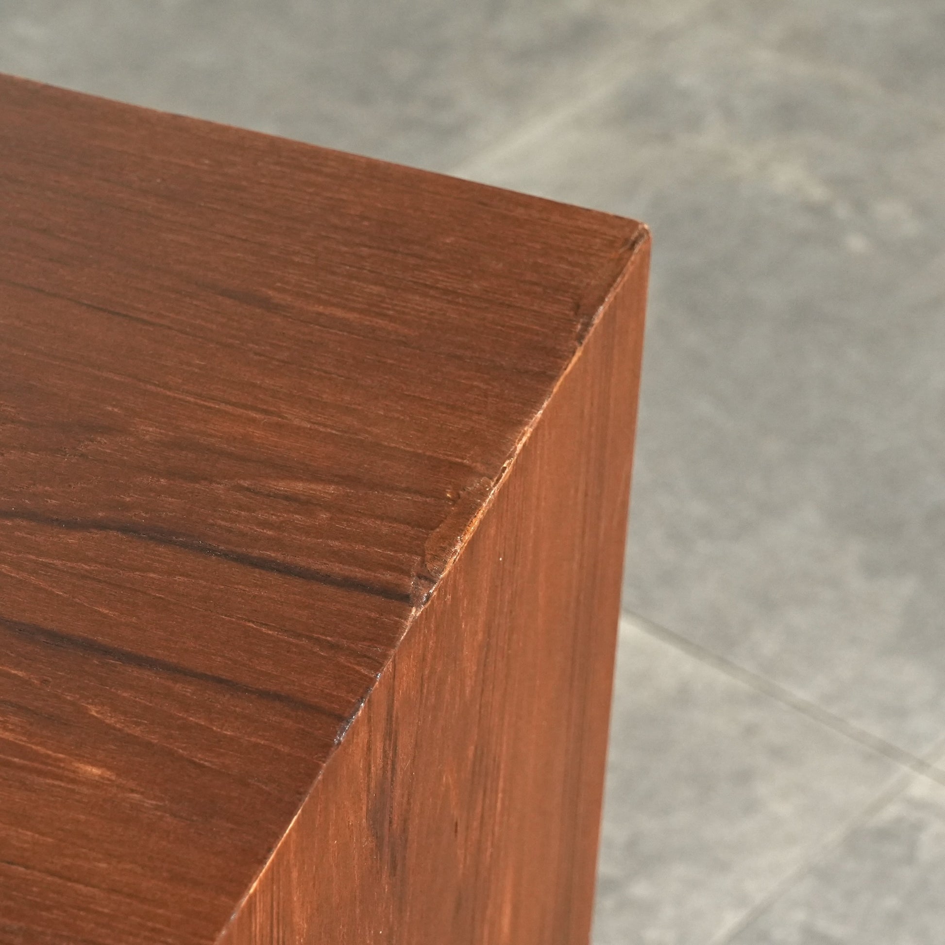 チーク特有のしっとりとした質感と美しい木目だけでなく、可愛らしい取手やシャープな脚部など、シンプルながらも細部に宿るこだわりが見受けられます。