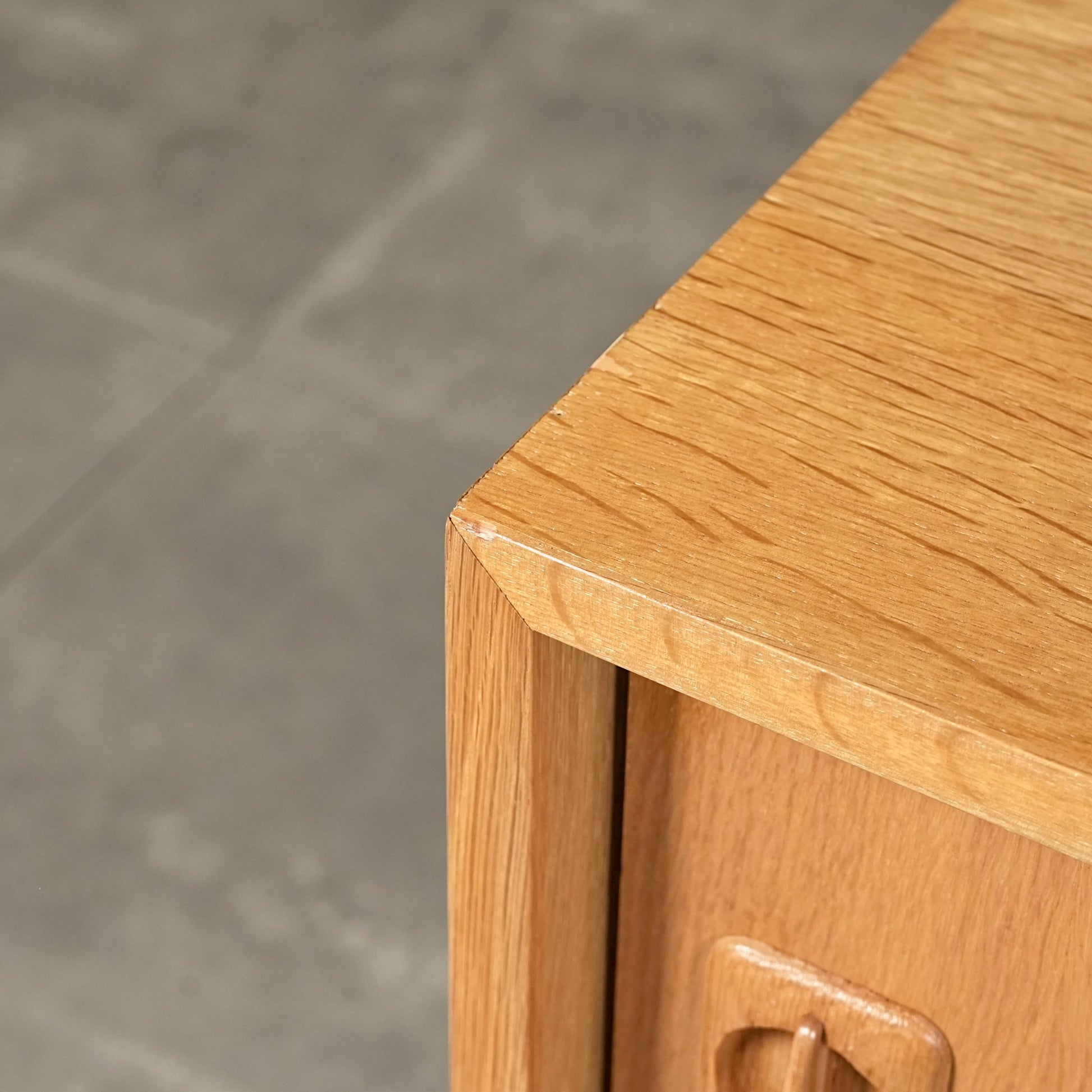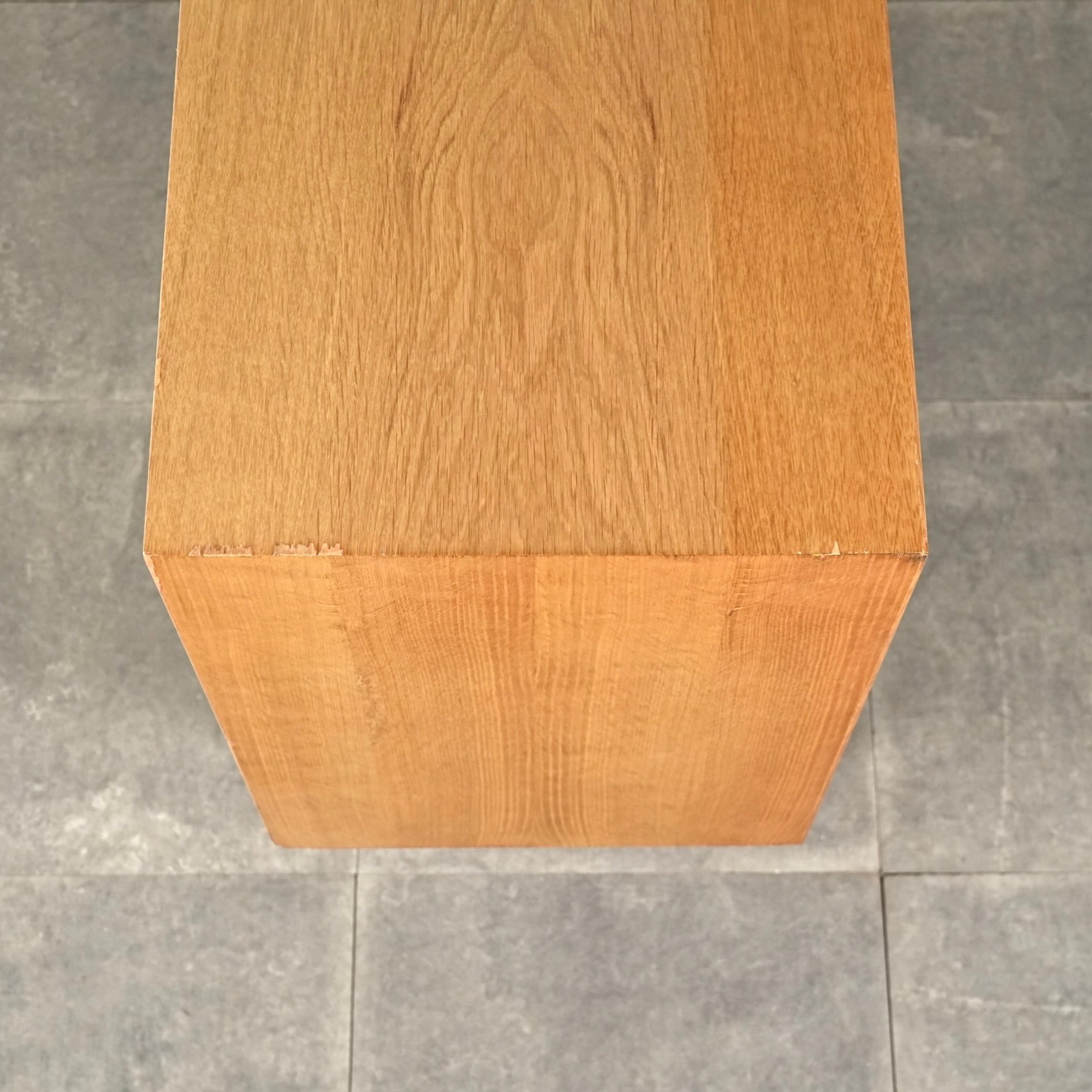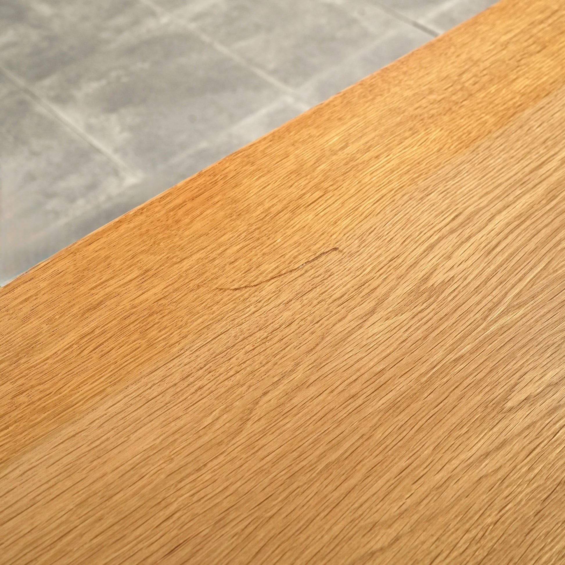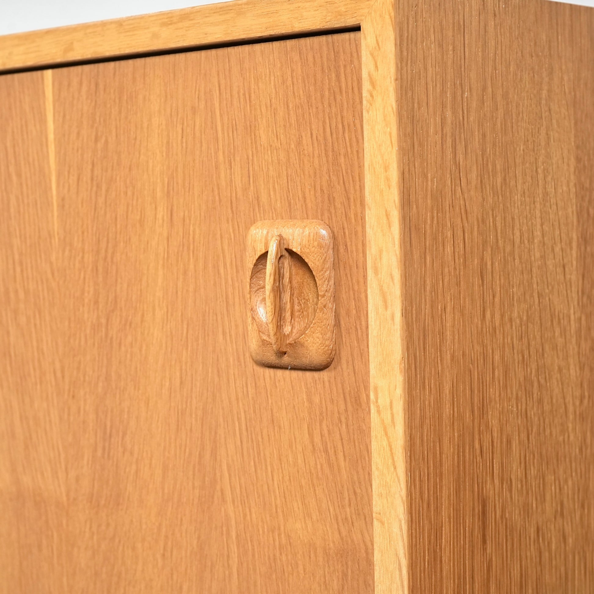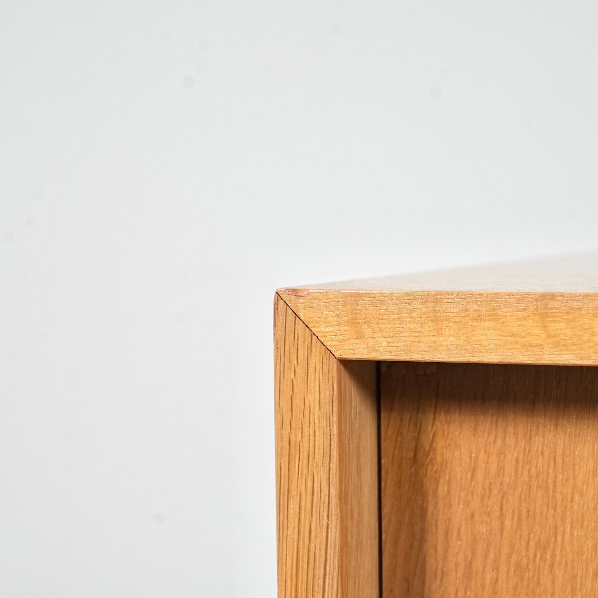 良質なオーク材の質感が際立つミニマルデザインの中に、可愛らしい取手や脚部のシャープなラインがマッチしており、北欧らしい確かな美意識が宿る高品質なヴィンテージアイテムです。
