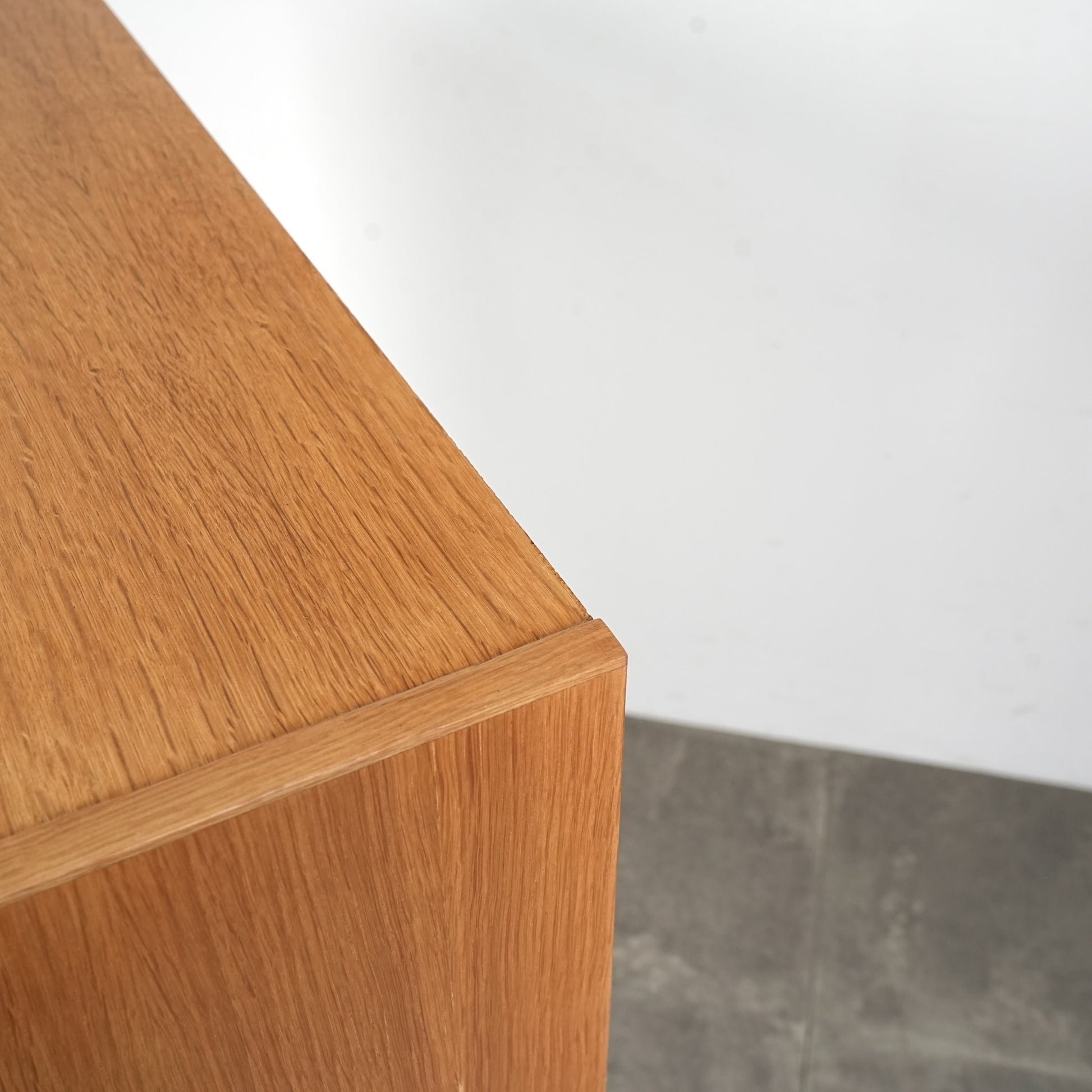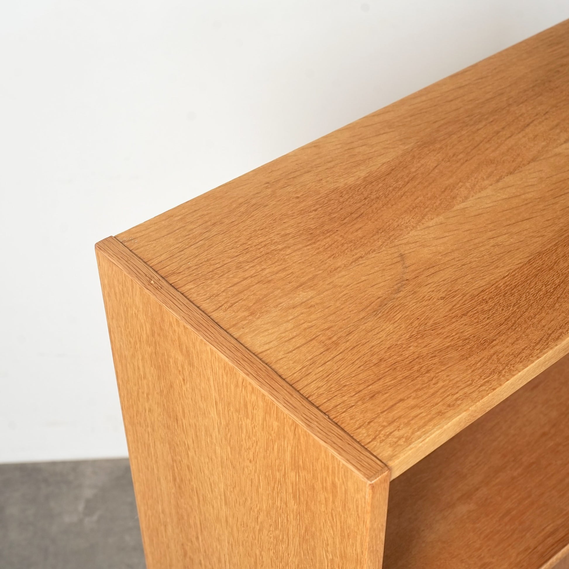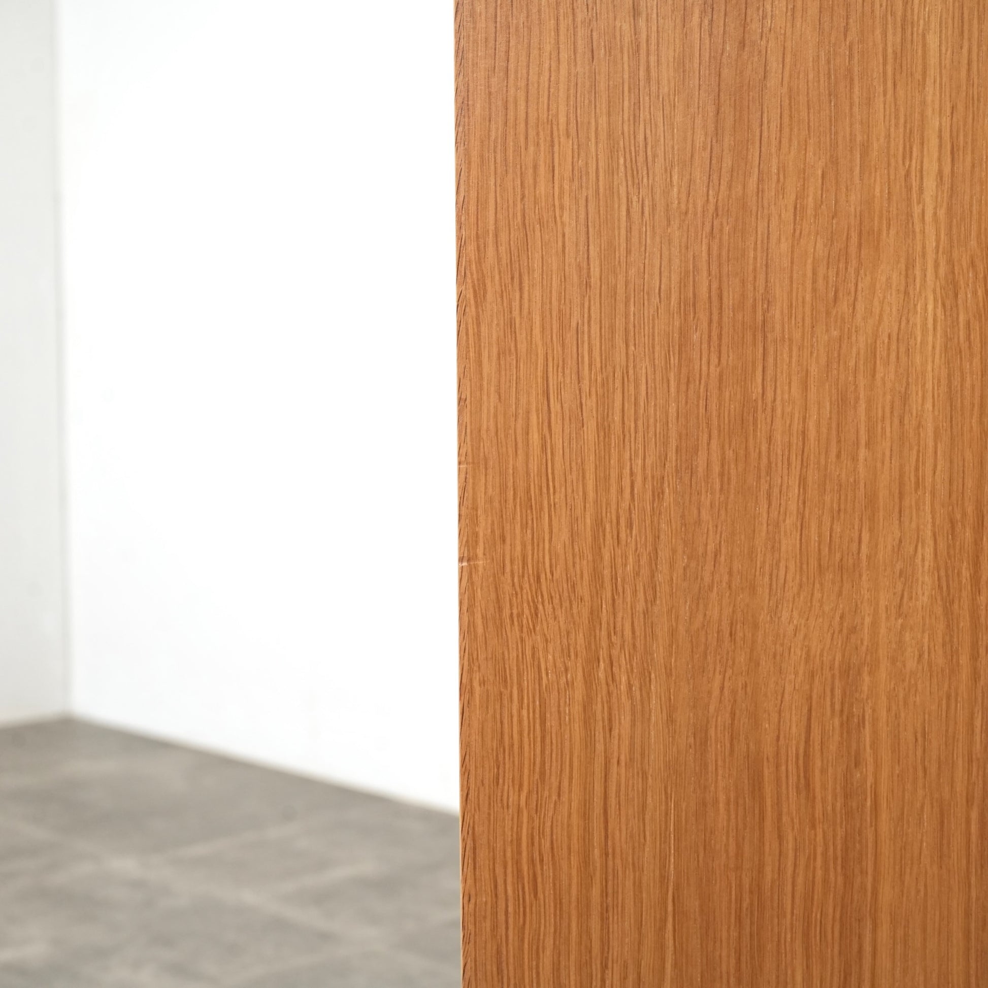 チーク材のキャビネットとはまた一味違った魅力を楽しんで頂ける高品質なオーク材を使用しており、現代の住環境にも違和感なく馴染むバランスの良いデザインの中に、削り出しの可愛らしい取手や脚部のシャープなラインが良いアクセントとなっています。