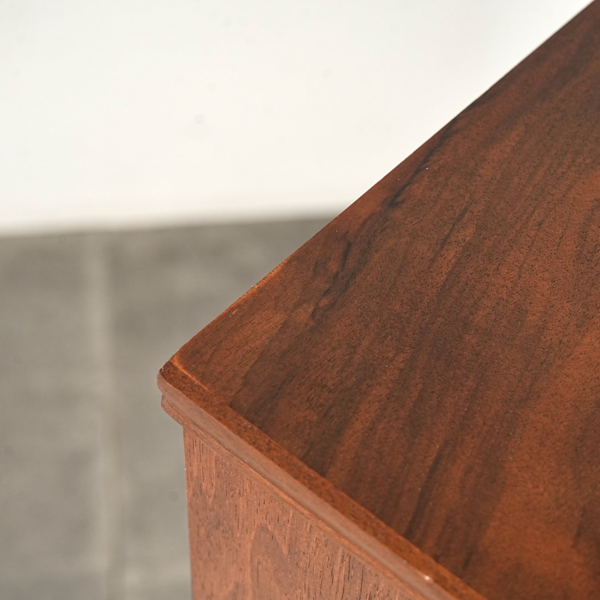 上質なウォルナット材ならではのユニークな木目と質感が印象的で、高いクラフトマンシップに基づく丁寧な作り込みなど、ミッドセンチュリー家具ならではの見所が詰まったハイグレードなヴィンテージアイテムです。