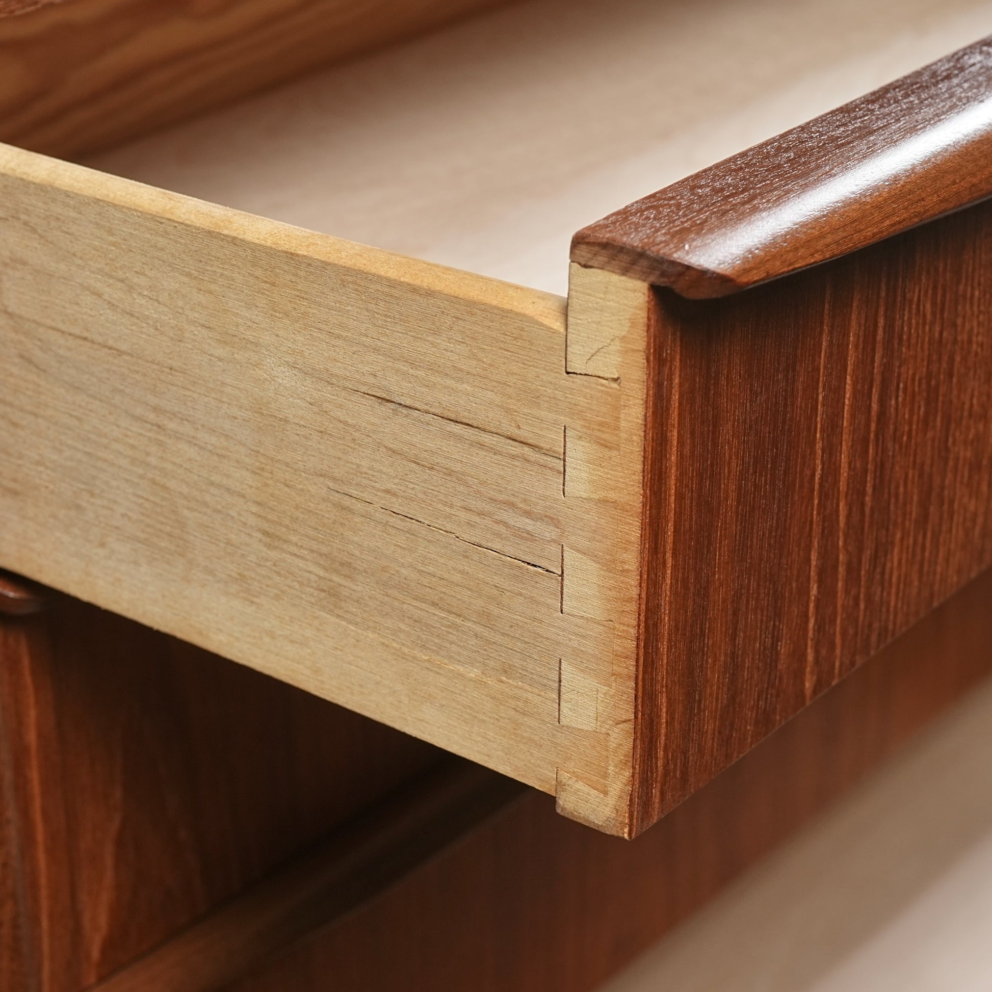 ミッドセンチュリーらしさが詰まった美しいデザインで、削り出しで作られた見事な取手だけでなく、北欧らしく高いクラフトマンシップによって丁寧に作り込まれたハイクオリティなヴィンテージアイテムです。