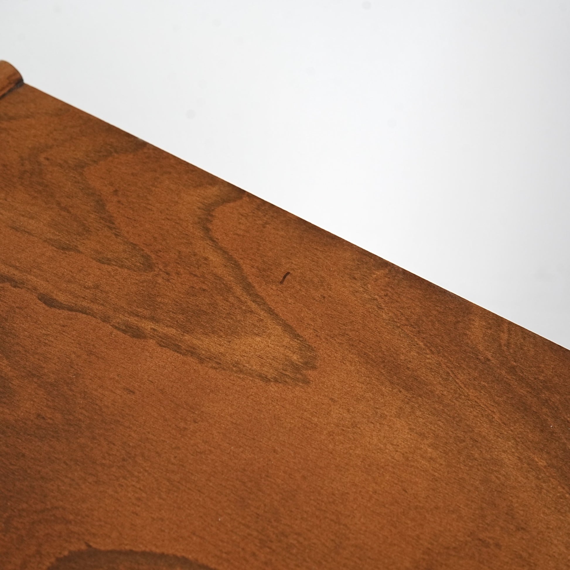 上質なウォルナット材ならではのユニークな木目と質感が印象的で、側面や天板にはバーチ材、そして脚部にはビーチ材を組み合わせたユニークなデザインが特徴です。
