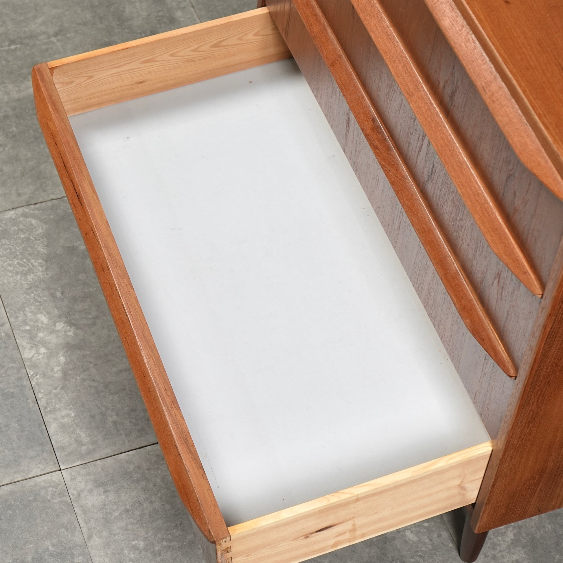 ミッドセンチュリーらしさが詰まった本当に美しいデザインで、削り出しで作られた可愛らしい取手だけでなく、北欧らしいクラフトマンシップによって細部まで丁寧に作り込まれた高品質なヴィンテージアイテム。