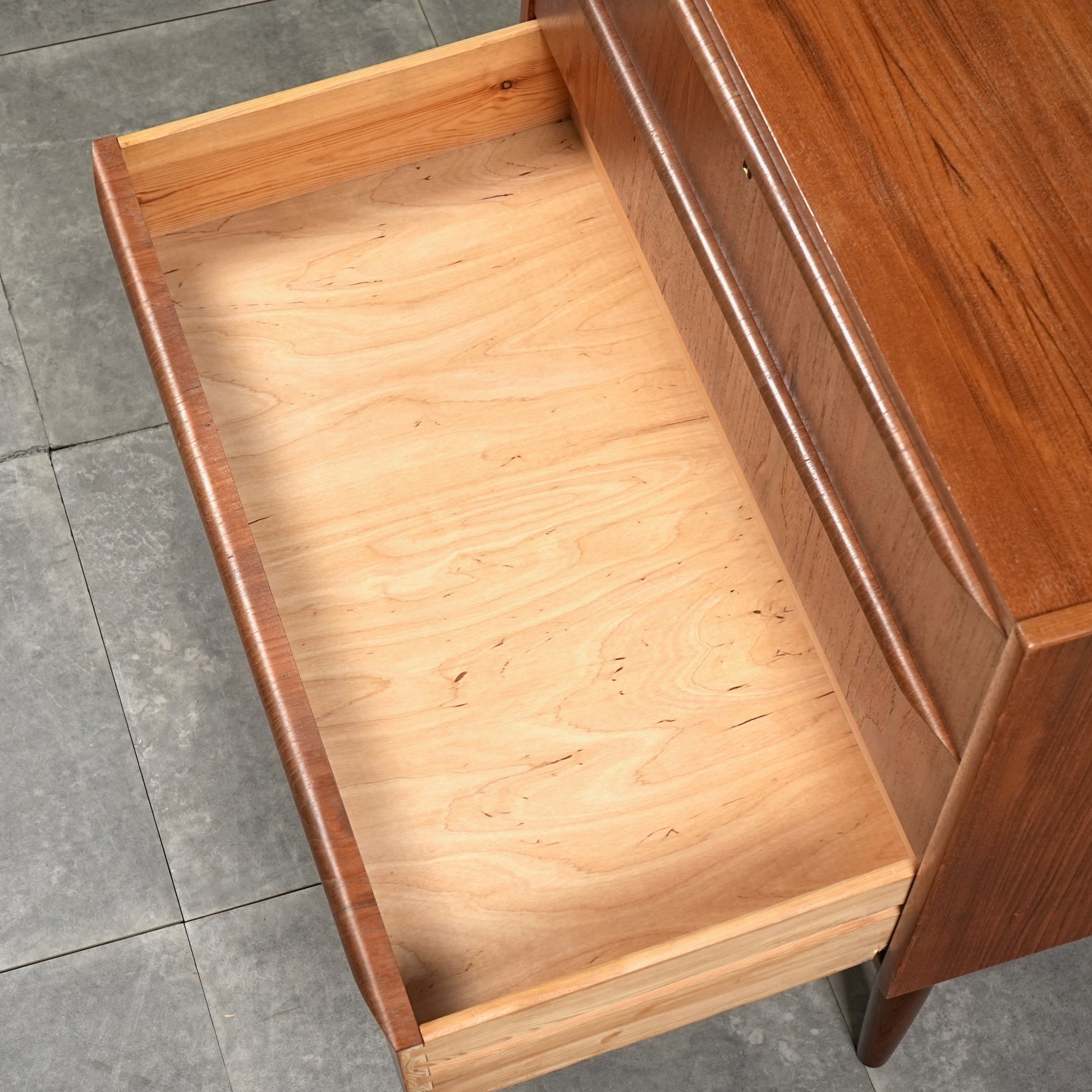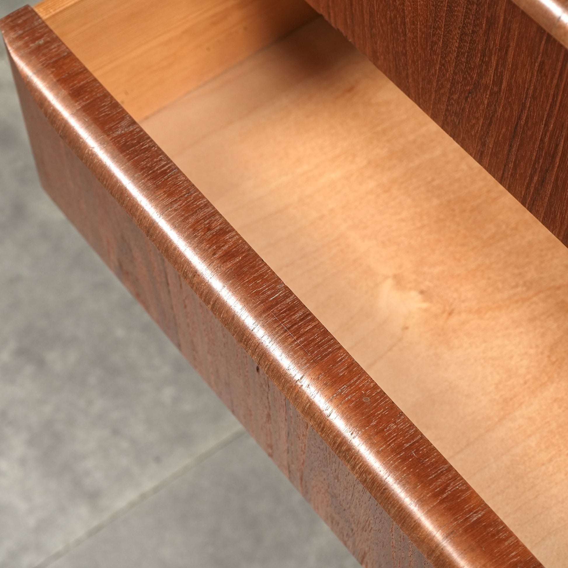 ミッドセンチュリーらしさがギュッと詰まった見事なデザインで、シャープな取手やスリムな脚部だけでなく、北欧らしく細部まで丁寧に作り込まれたハイクオリティなヴィンテージアイテム。