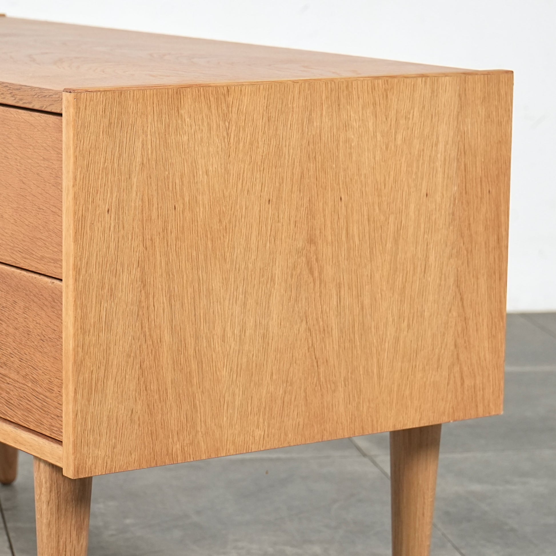 チーク材のチェストとはまた一味違った魅力を楽しんで頂ける高品質なオーク材を使用しており、現代の住環境にも違和感なく馴染むミニマルかつバランスの良いデザインとなっています。