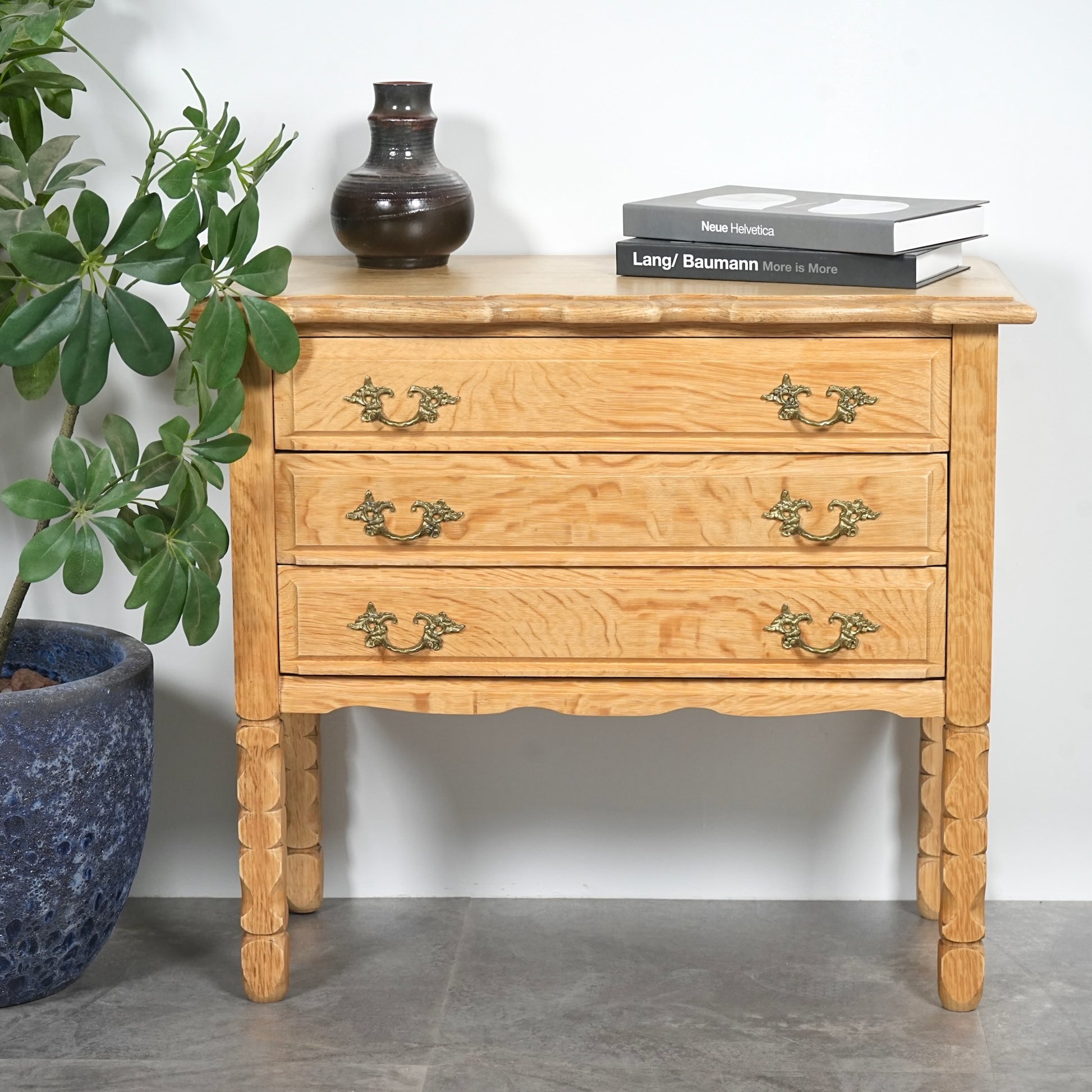脚部の意匠やクラシカルな取手、天板のさり気ないフォルムなど、細部まで抜かりない丁寧な仕事ぶりが光り、Henning Kjaernulfが残した作品たちを彷彿とさせる非常に完成度の高いヴィンテージアイテムです。