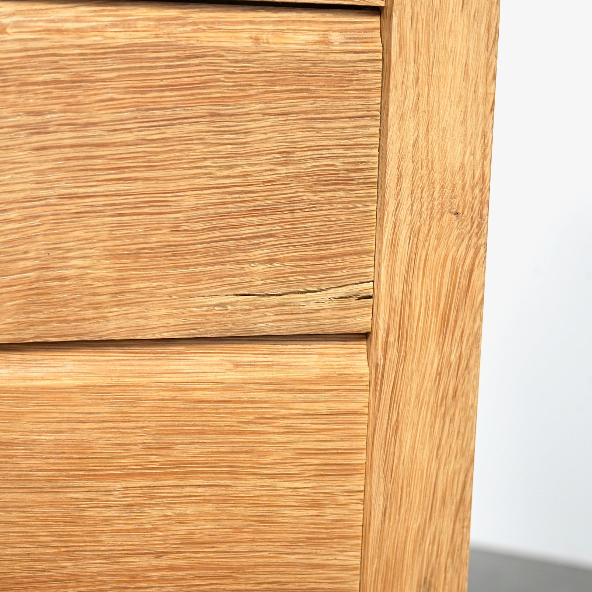 オーク材ならではの明るく素朴な木肌と、全体にやわらかな曲線を取り入れた意匠が印象的な一台です。