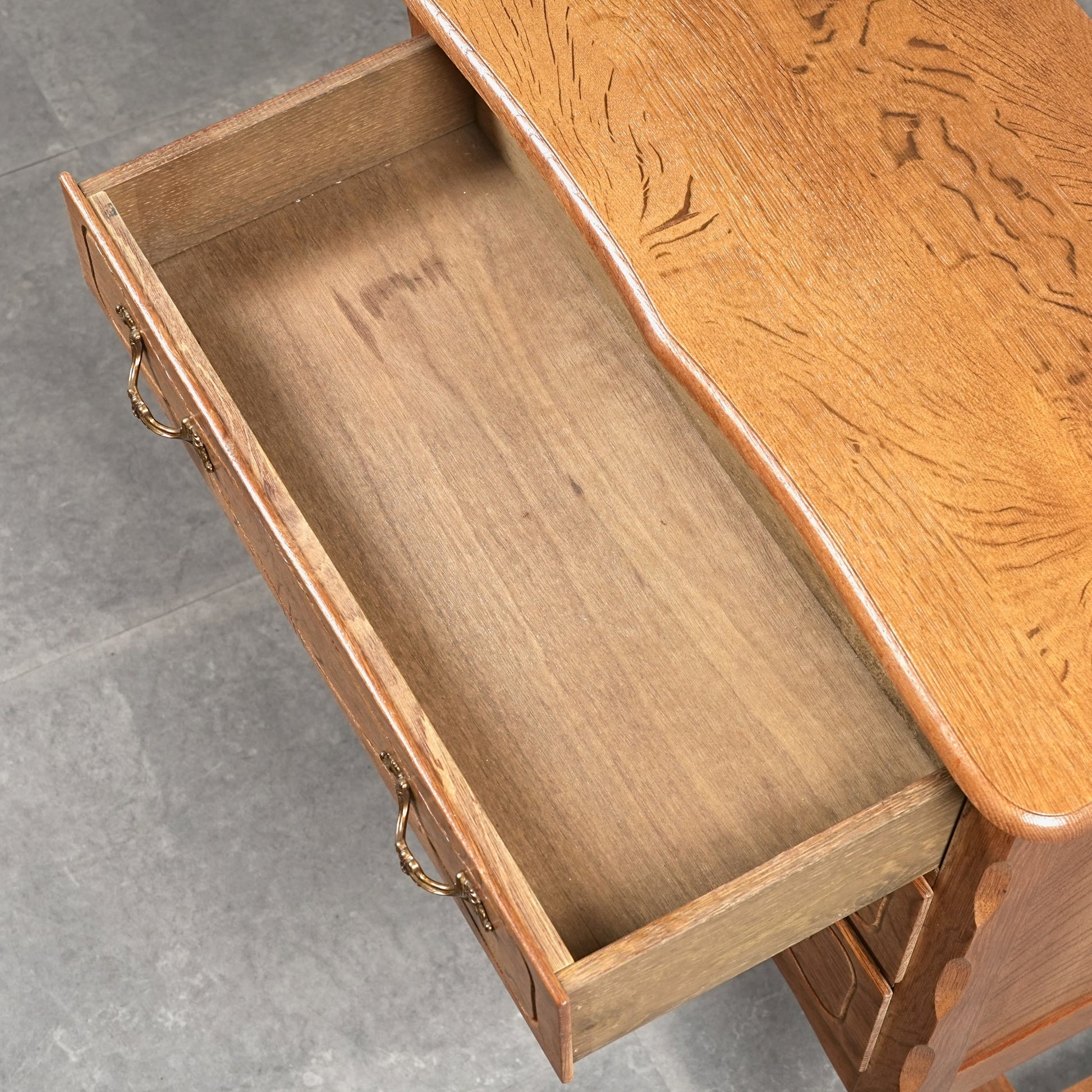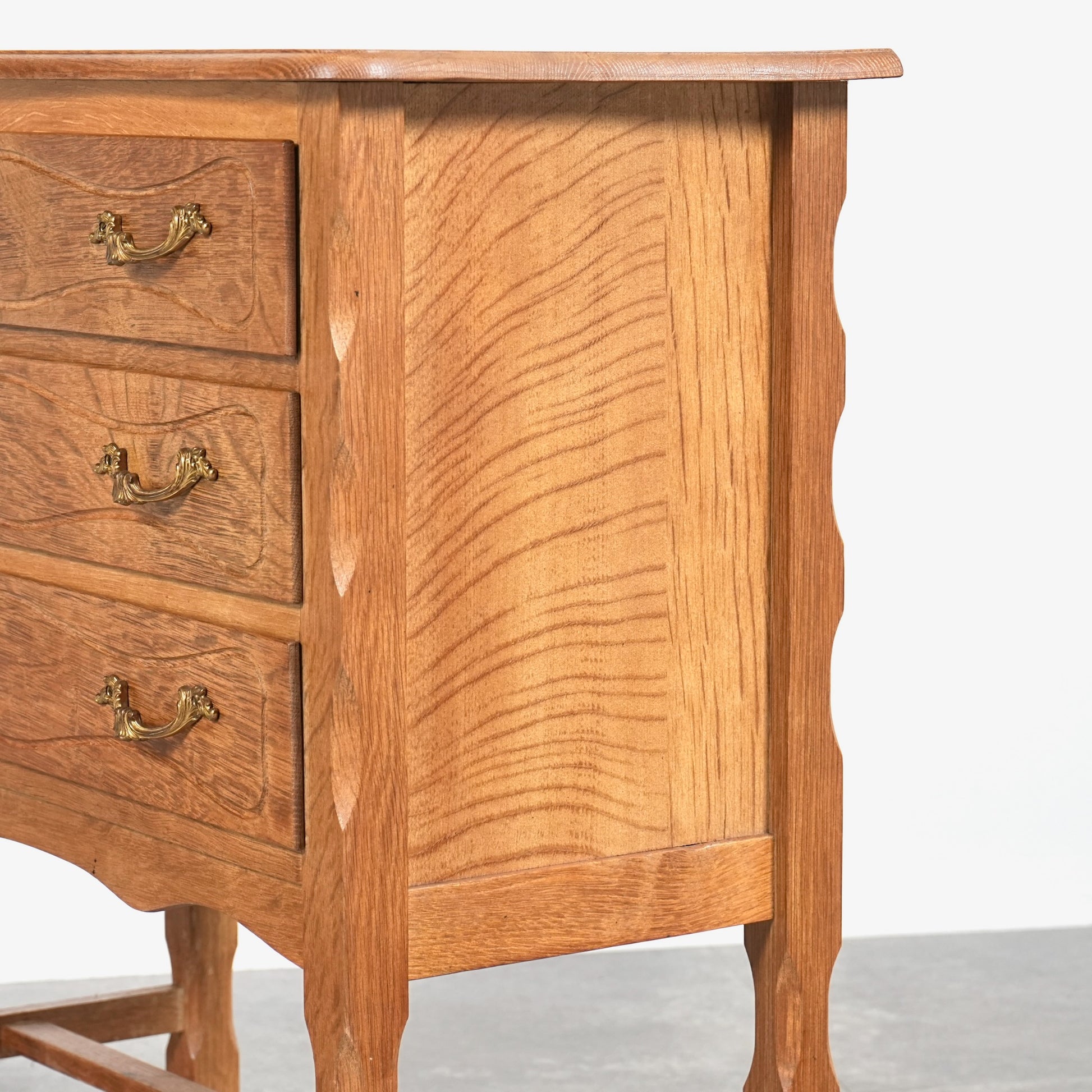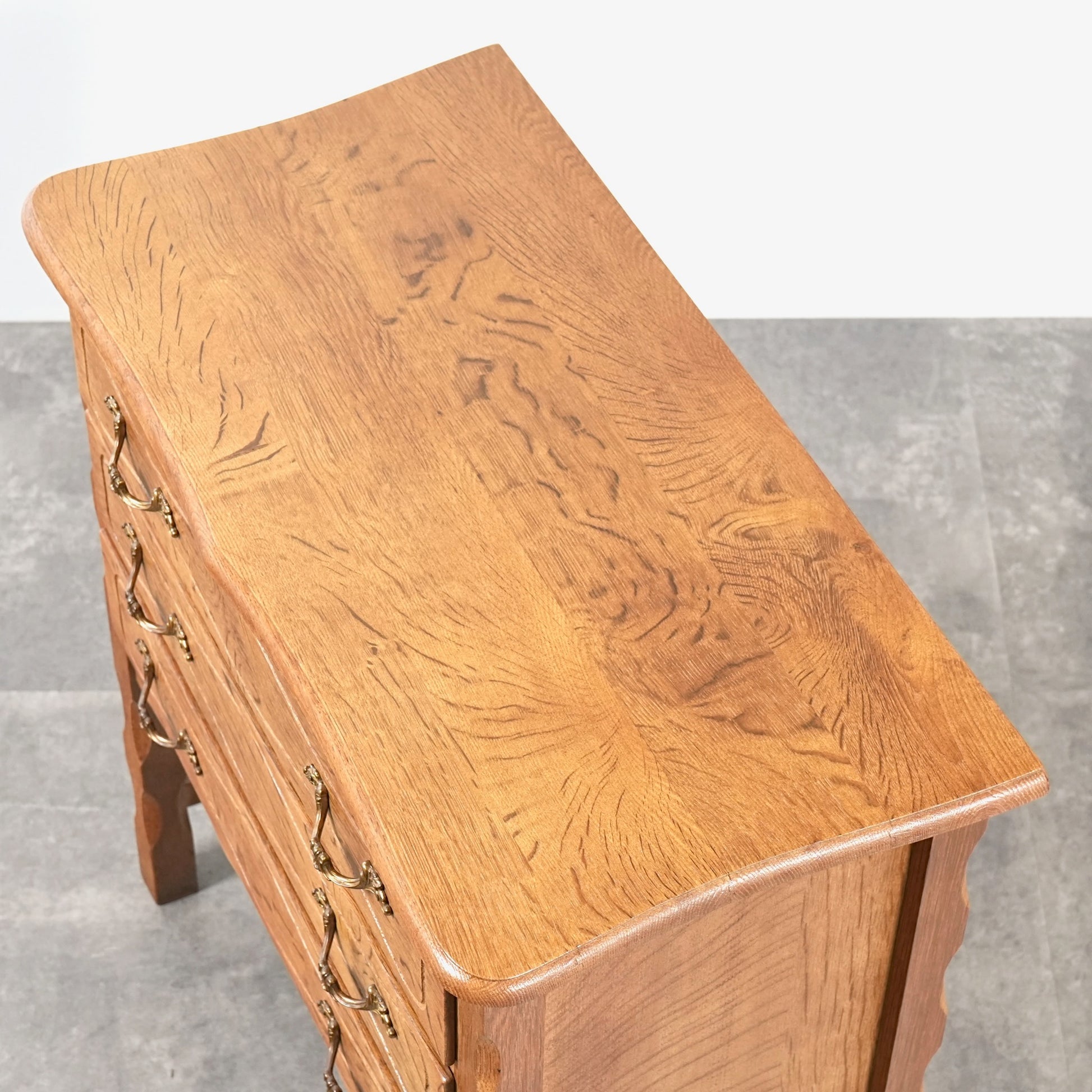 前板には緩やかな彫り込みが施され、直線的になりすぎない温かみのある表情。