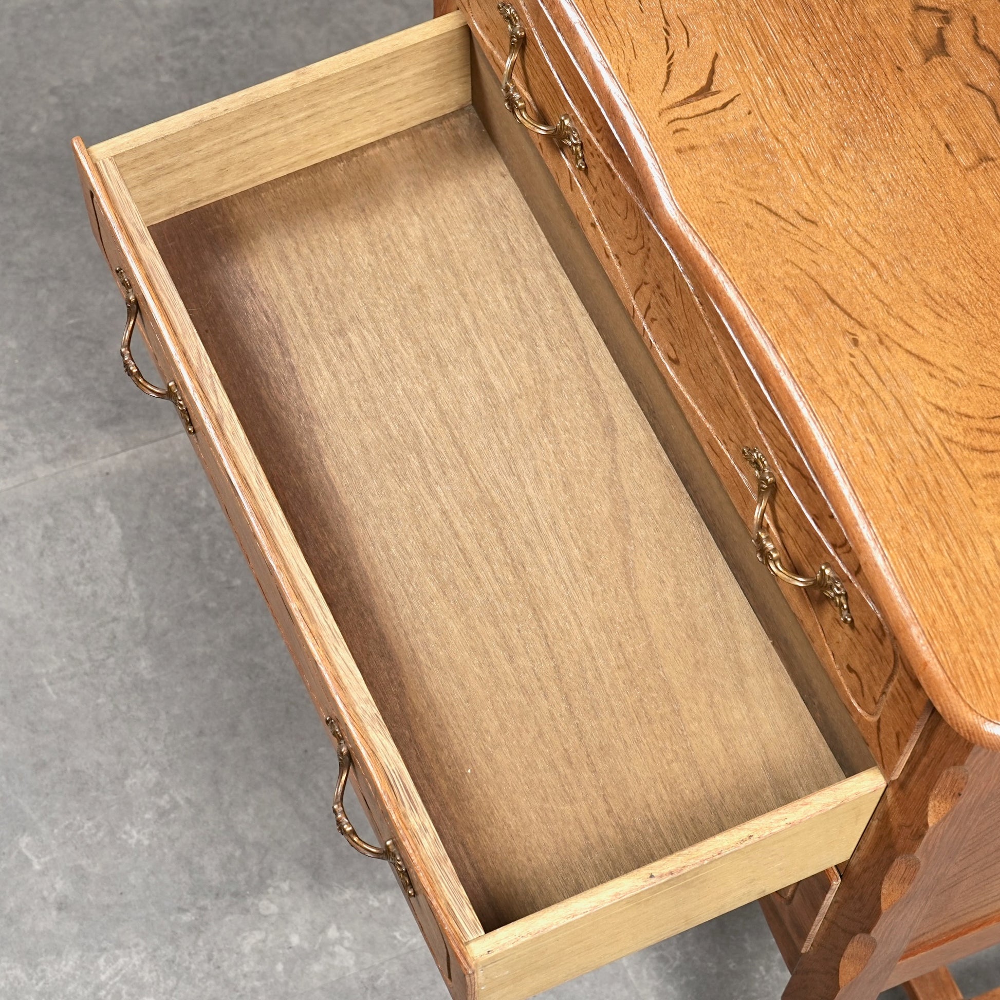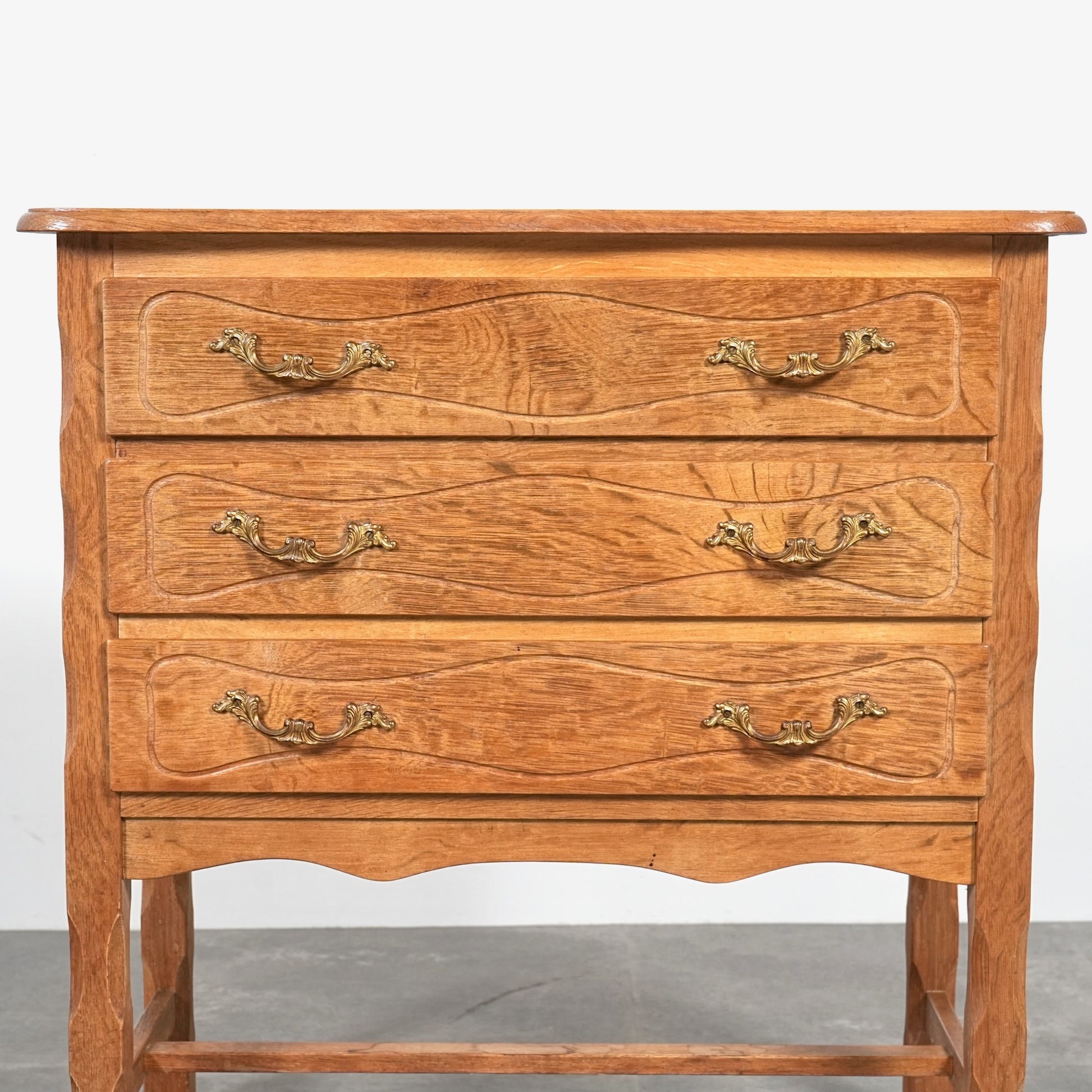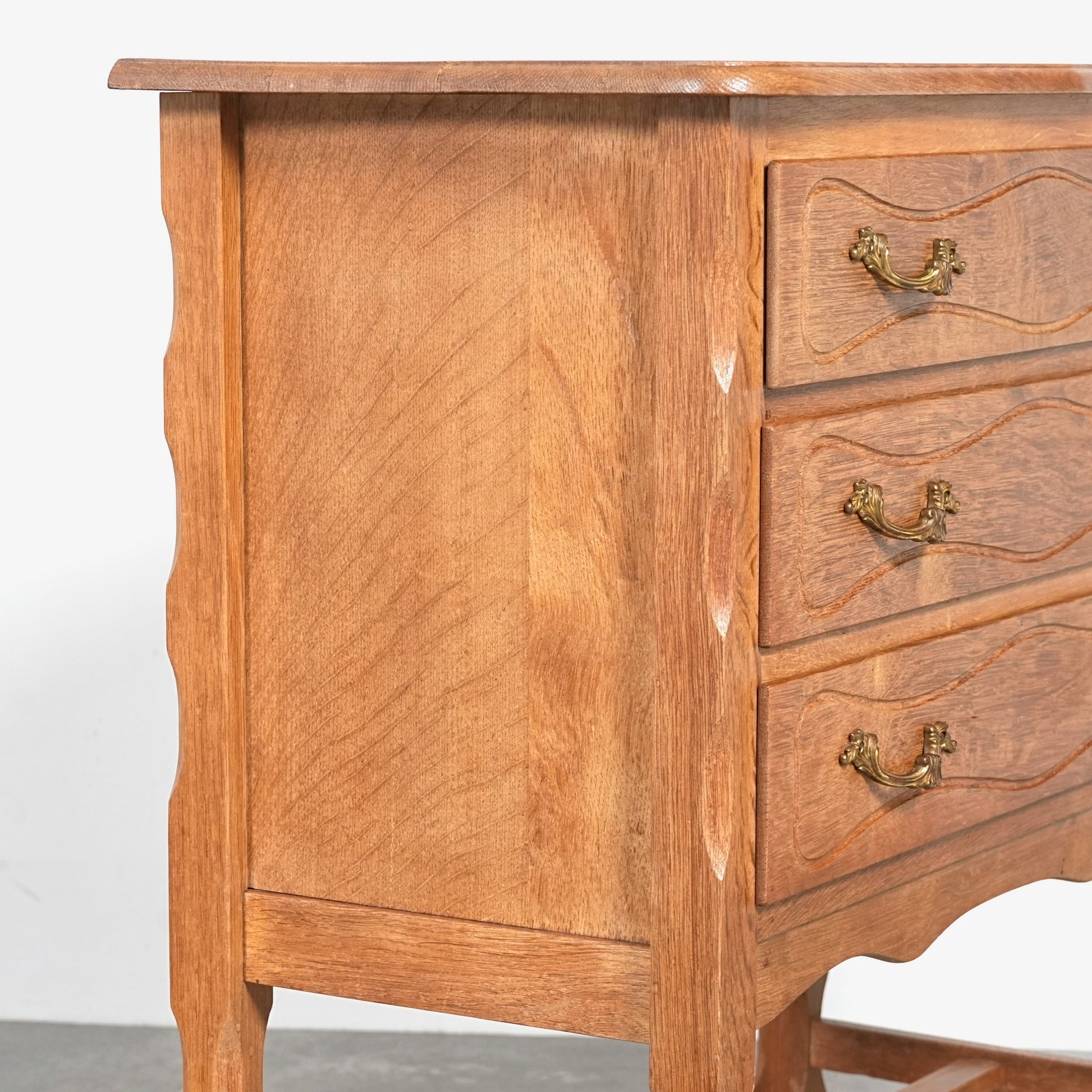 前板には緩やかな彫り込みが施され、直線的になりすぎない温かみのある表情。