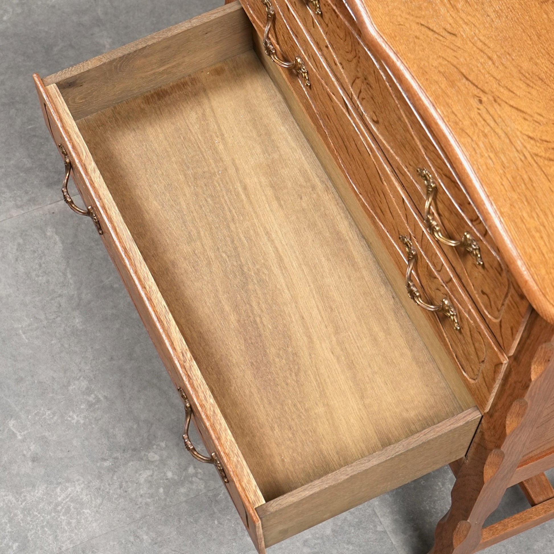 脚部の意匠やクラシカルな取手、天板のさり気ないフォルムなど、細部まで抜かりない丁寧な仕事ぶりが光り、Henning Kjaernulfが残した作品たちを彷彿とさせる非常に完成度の高いヴィンテージアイテムです。