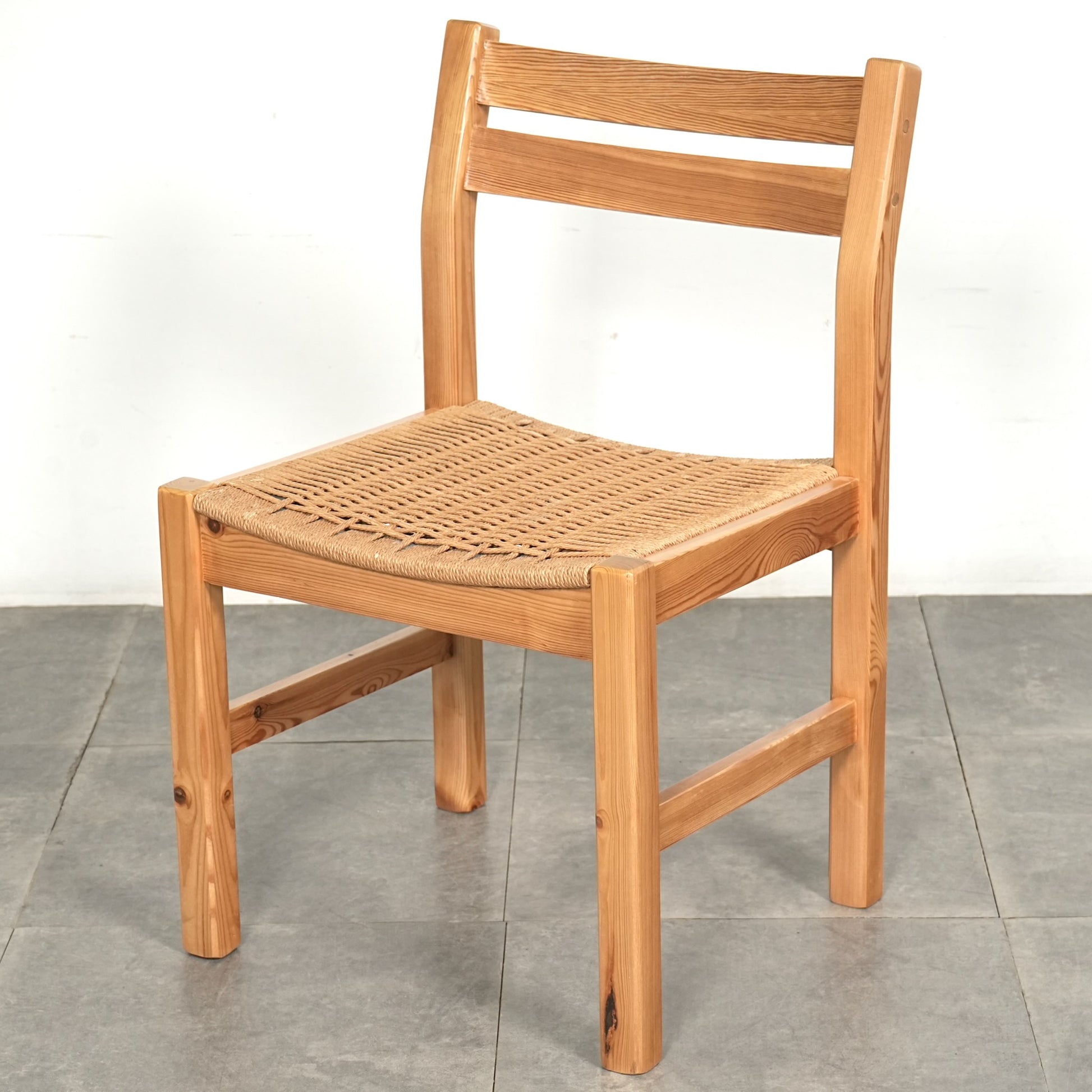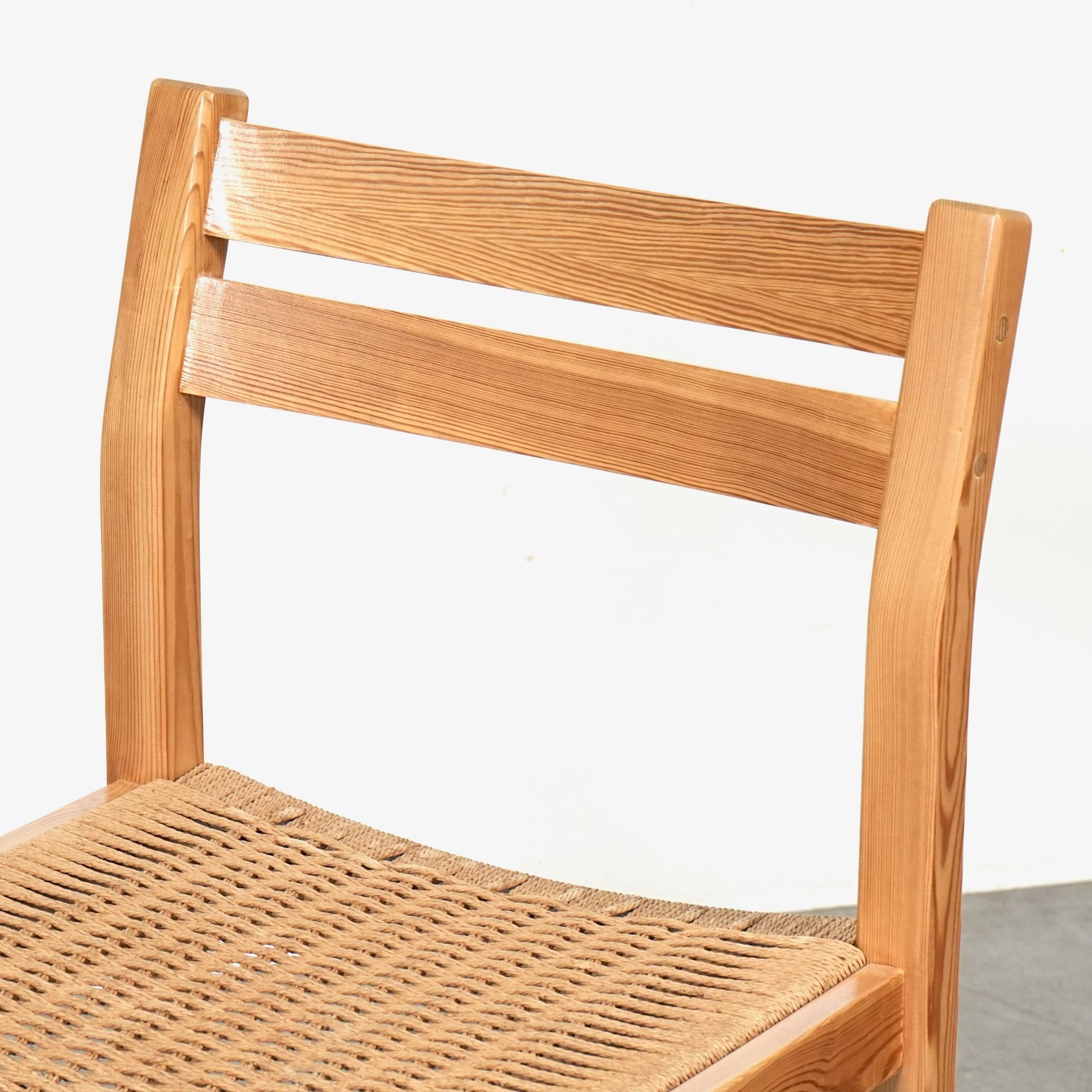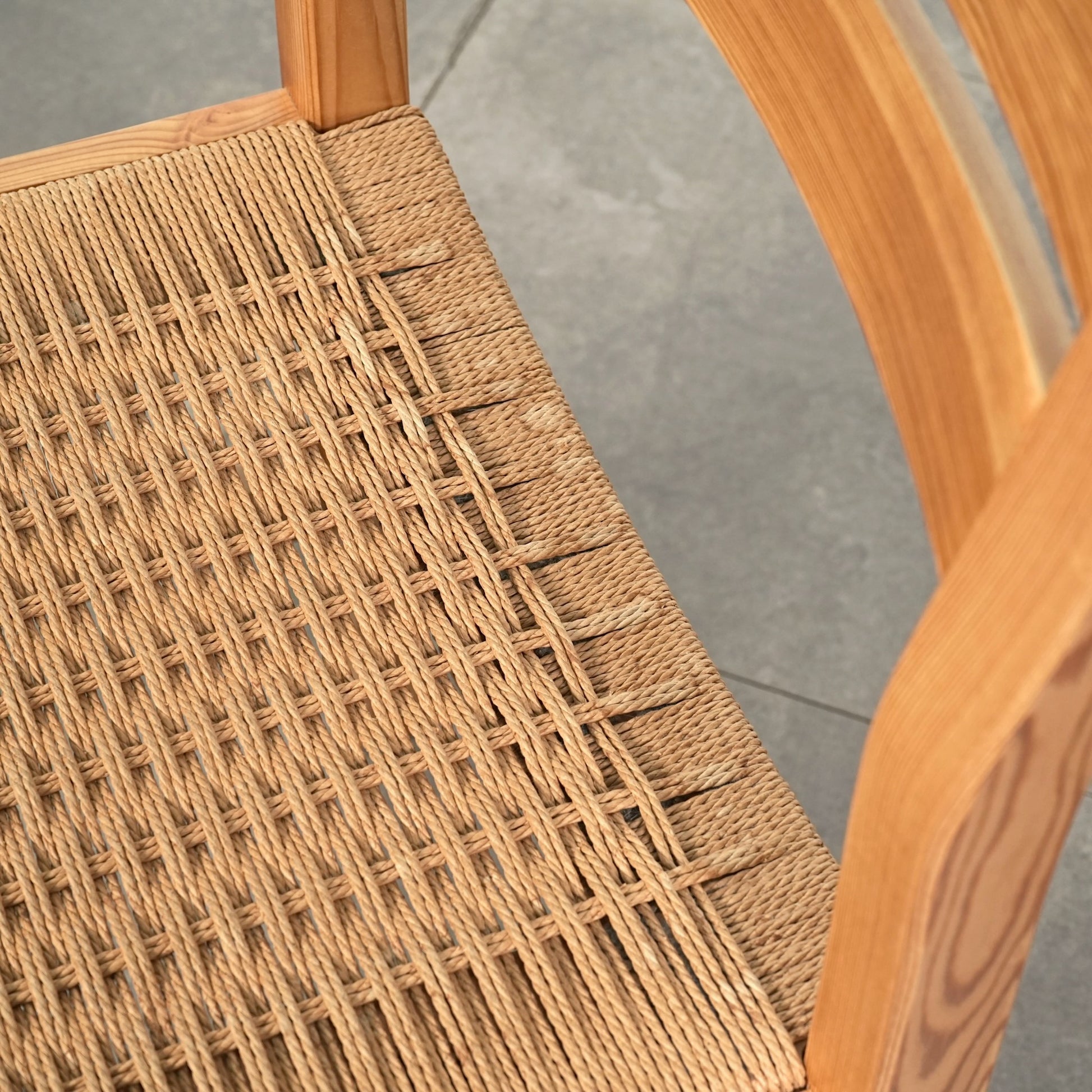 フレームは経年による味わい深い表情を見せるパイン材を使用しており、座面には北欧家具らしくペーパーコードが丁寧に編み込まれています。