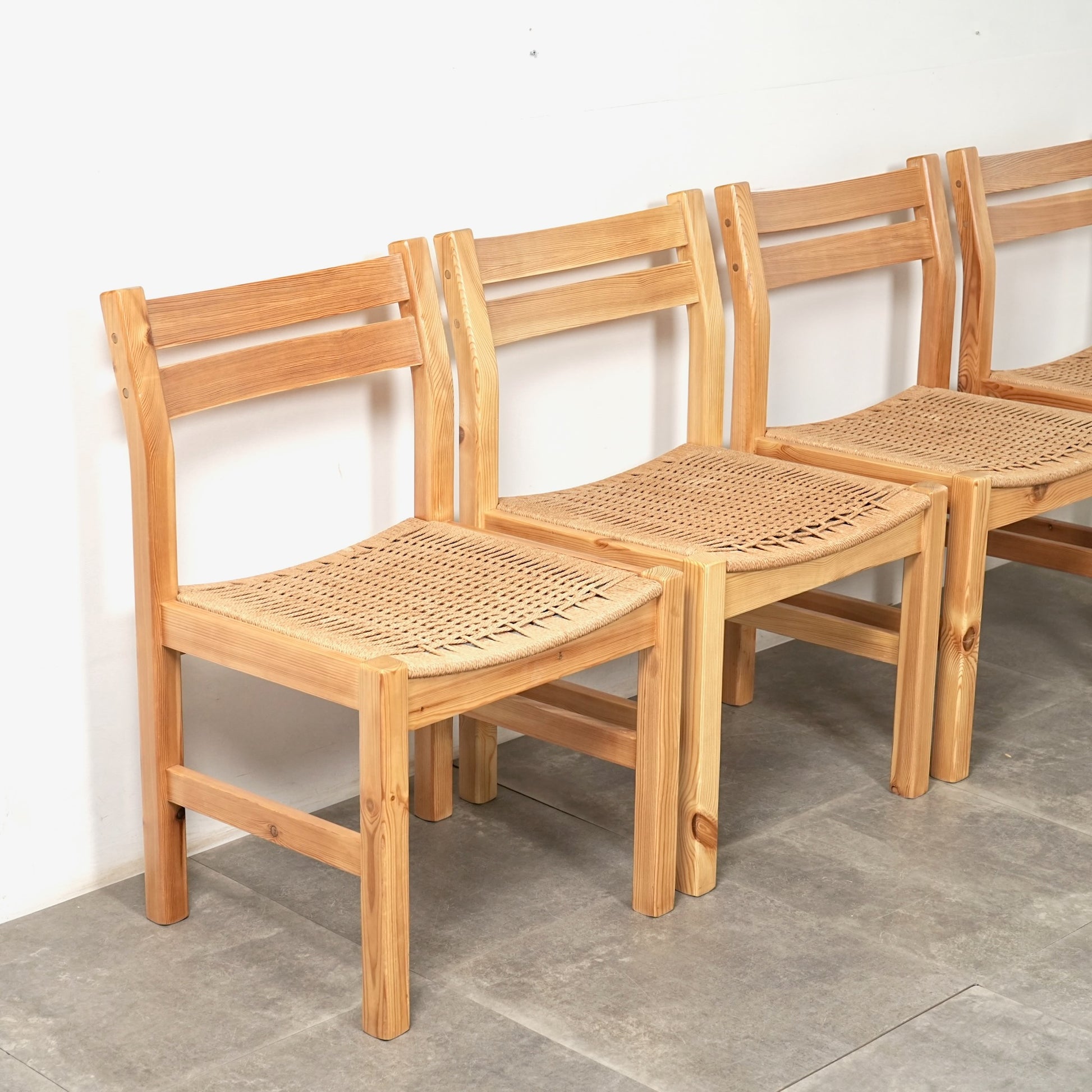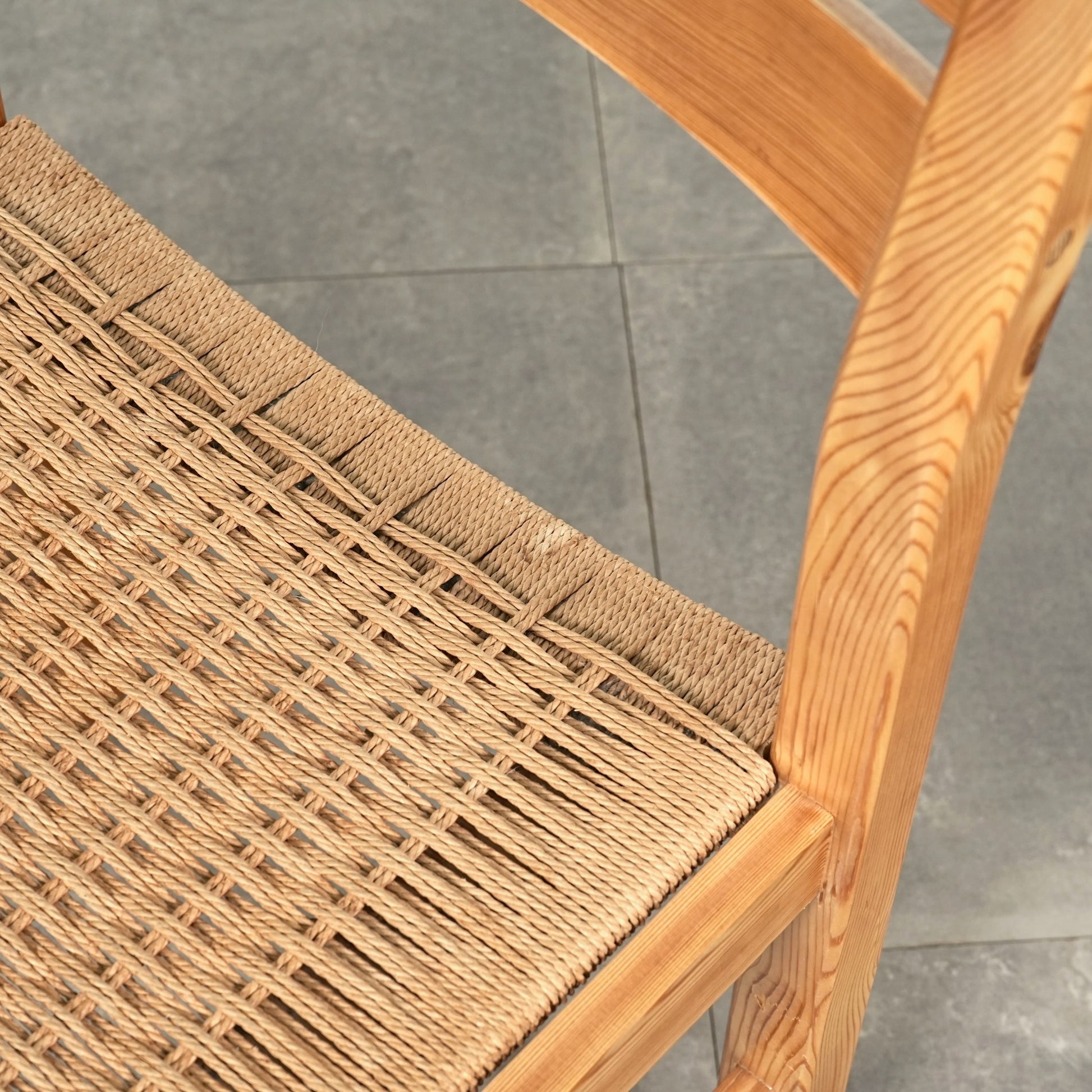 フレームは経年による味わい深い表情を見せるパイン材を使用しており、座面には北欧家具らしくペーパーコードが丁寧に編み込まれています。