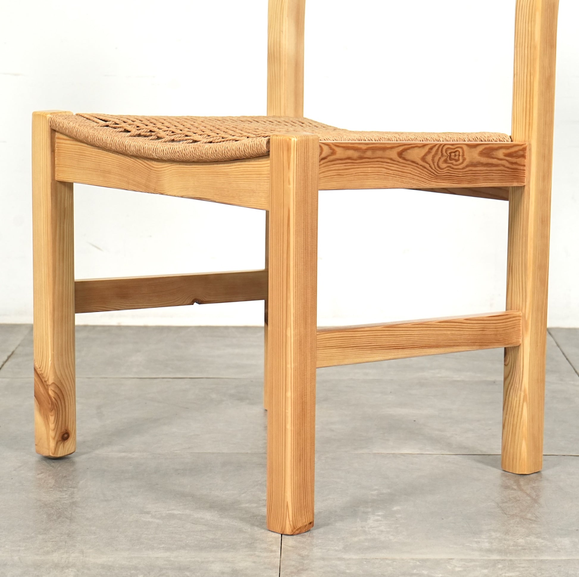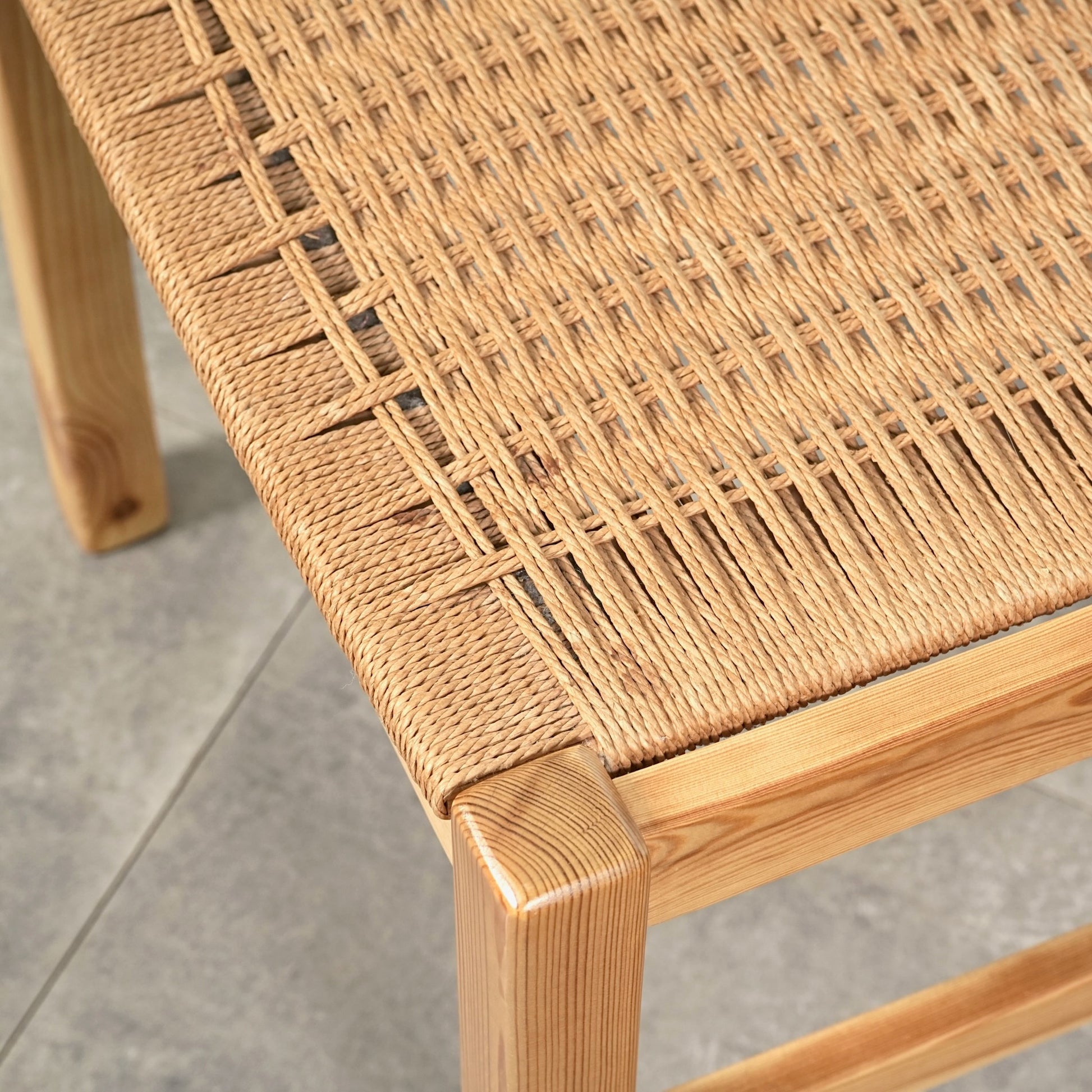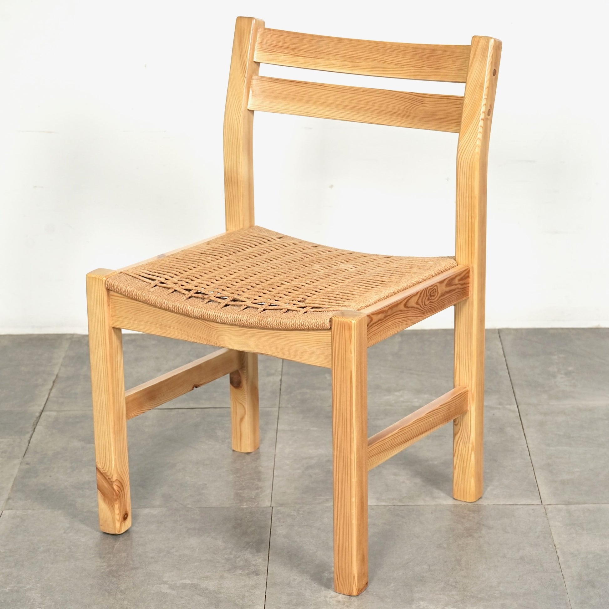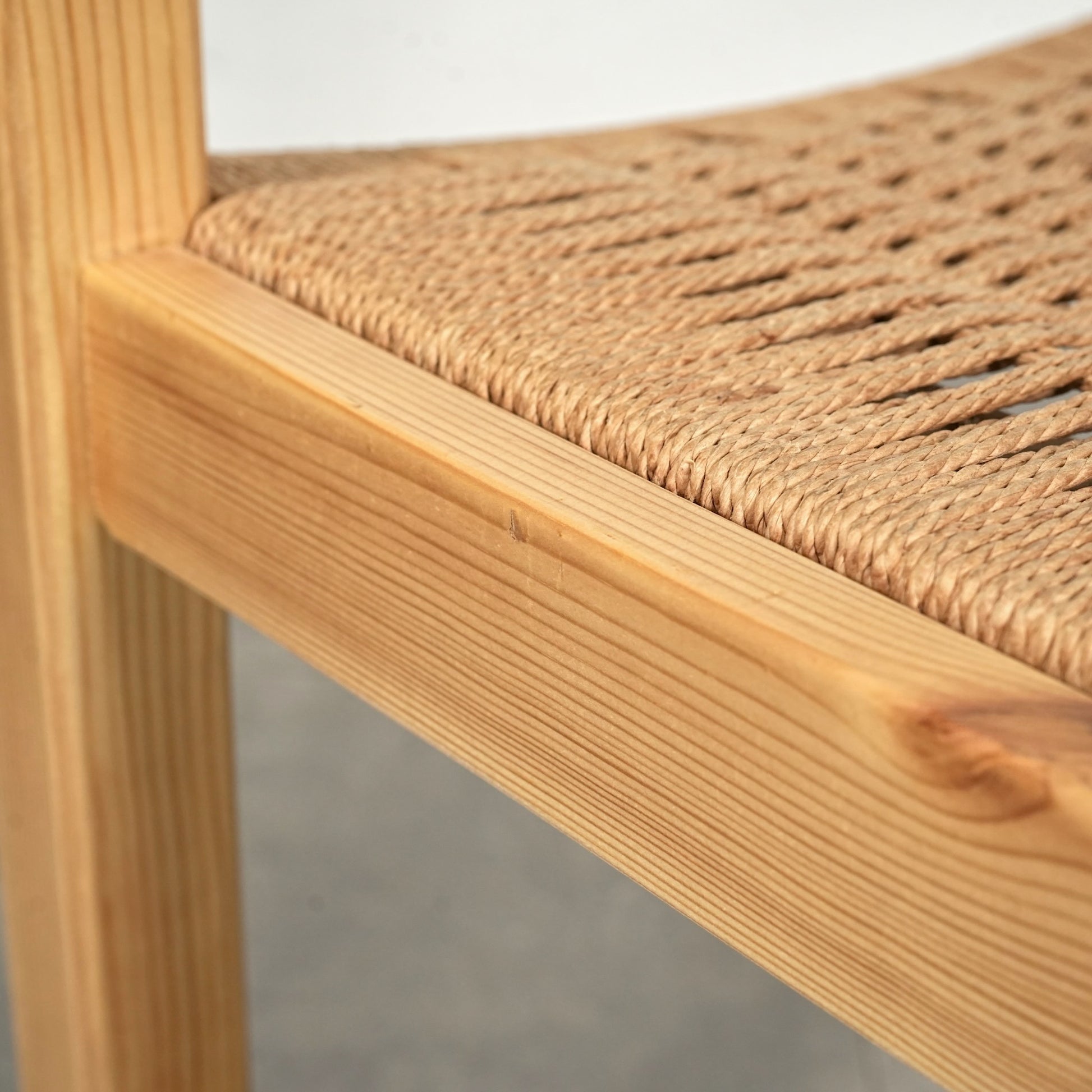 フレームは経年による味わい深い表情を見せるパイン材を使用しており、座面には北欧家具らしくペーパーコードが丁寧に編み込まれています。