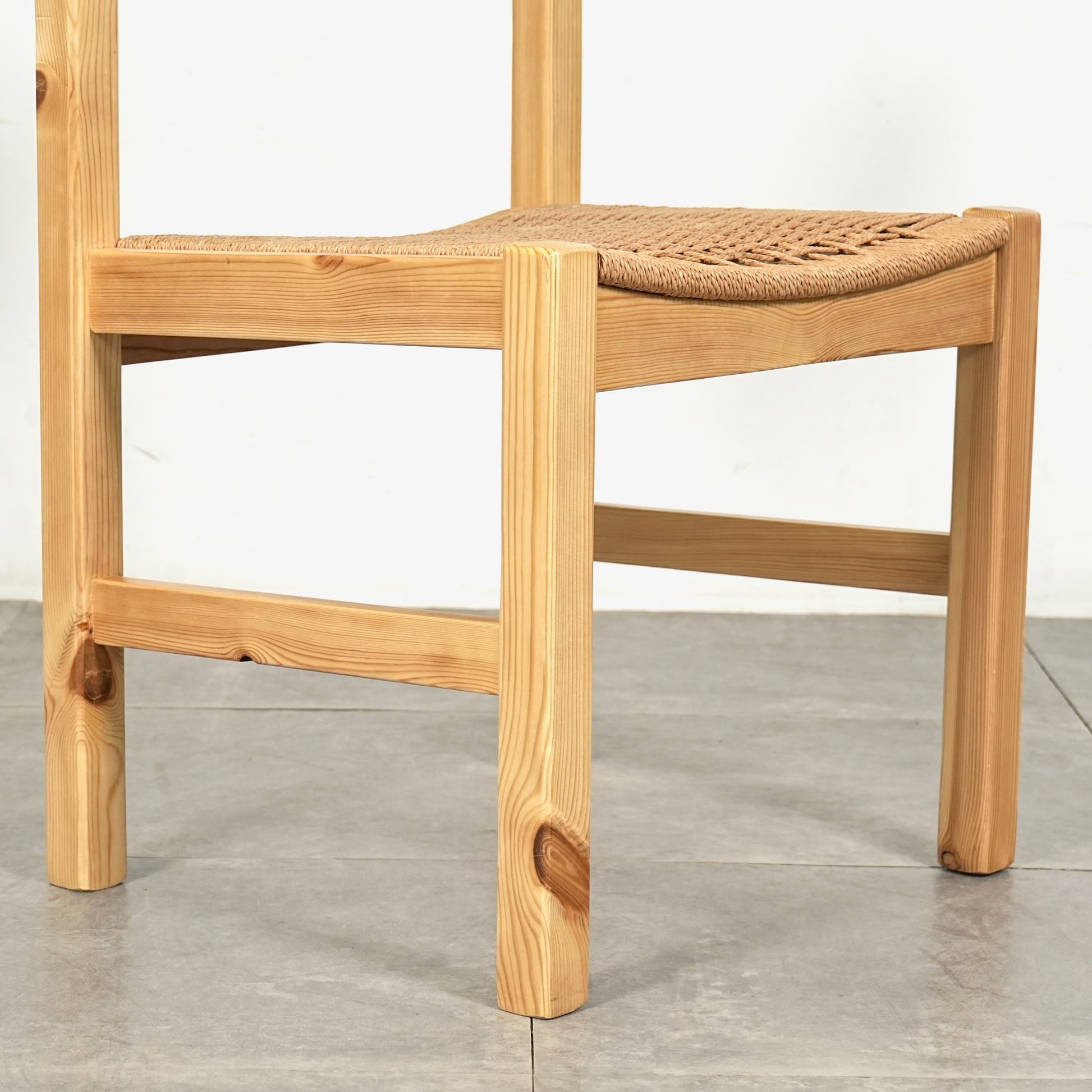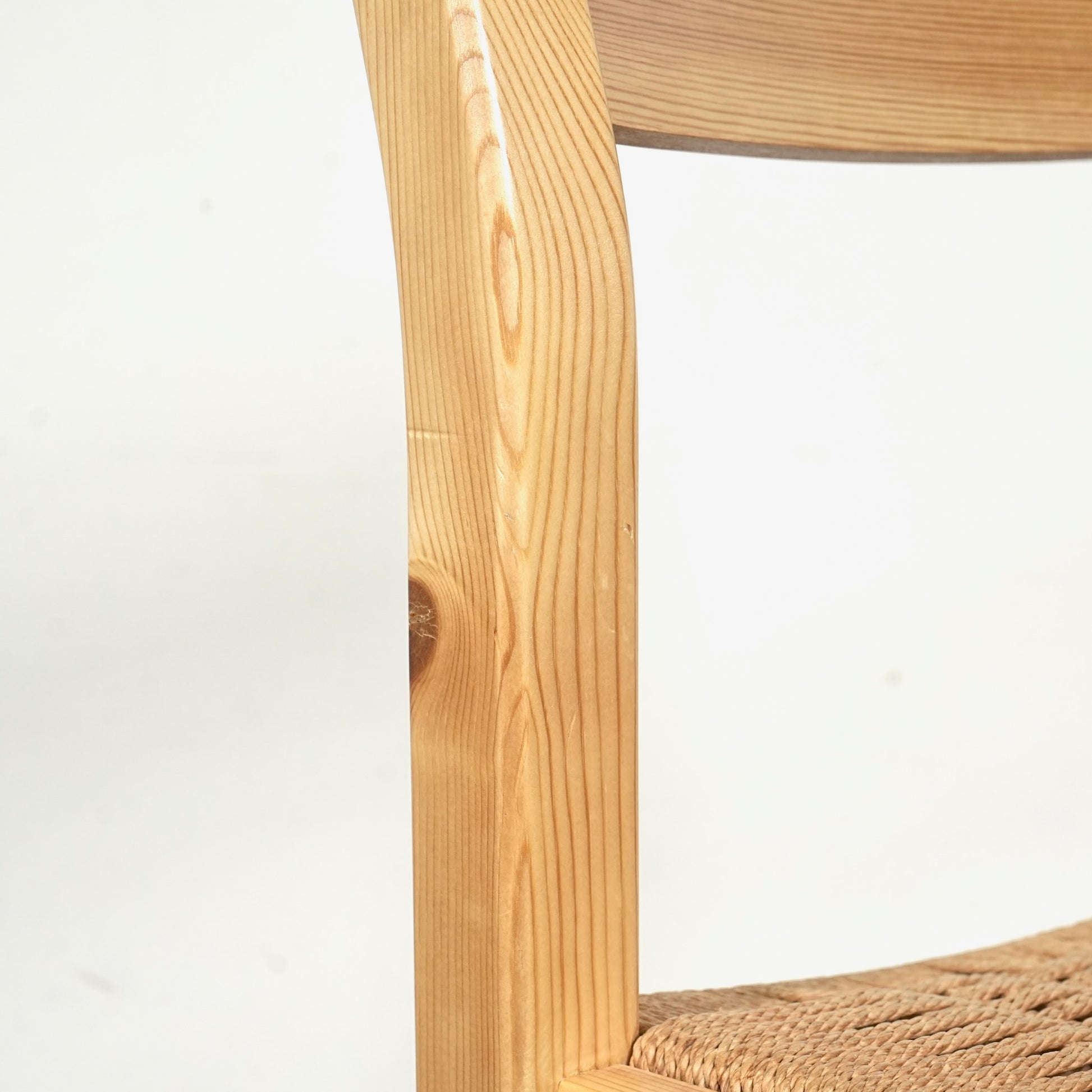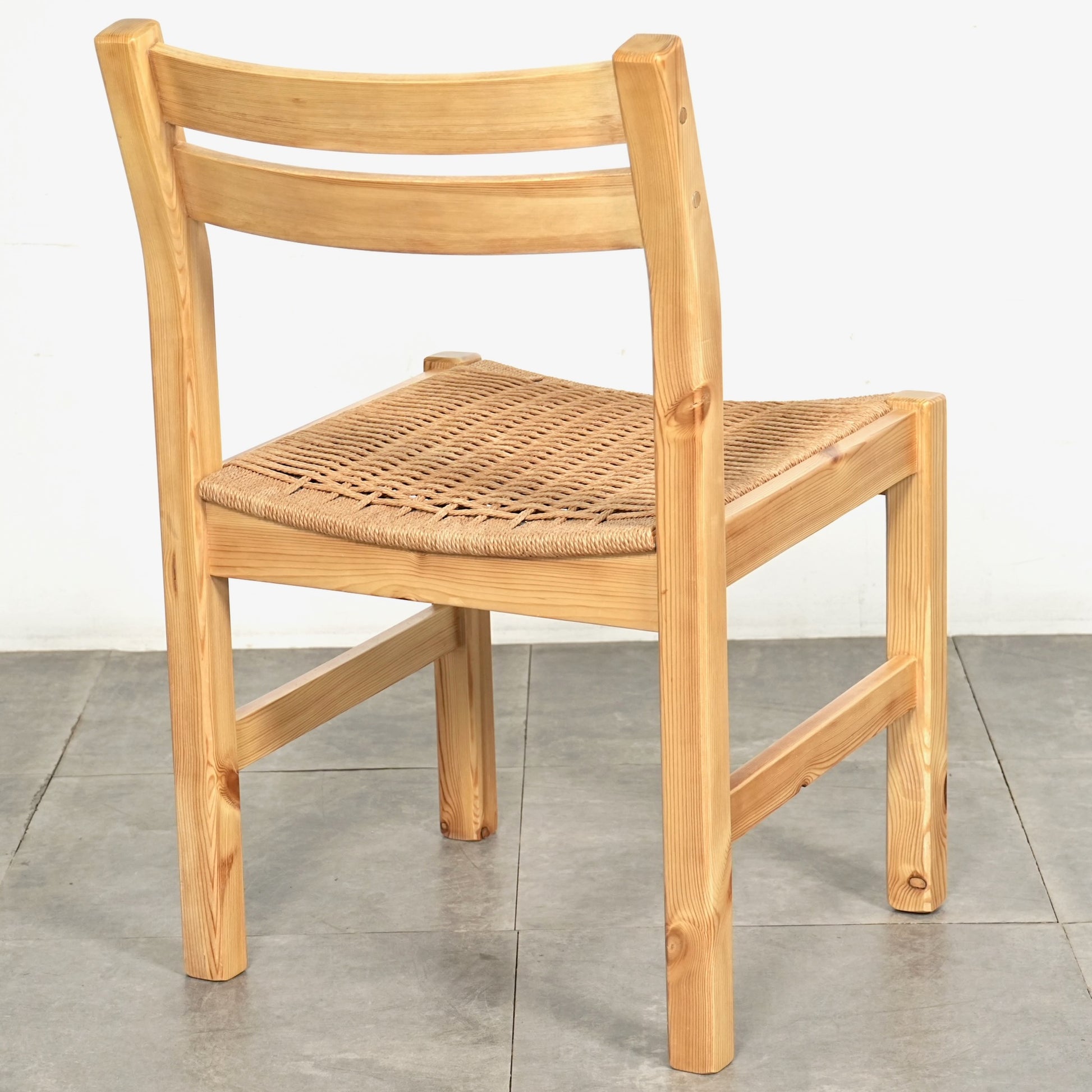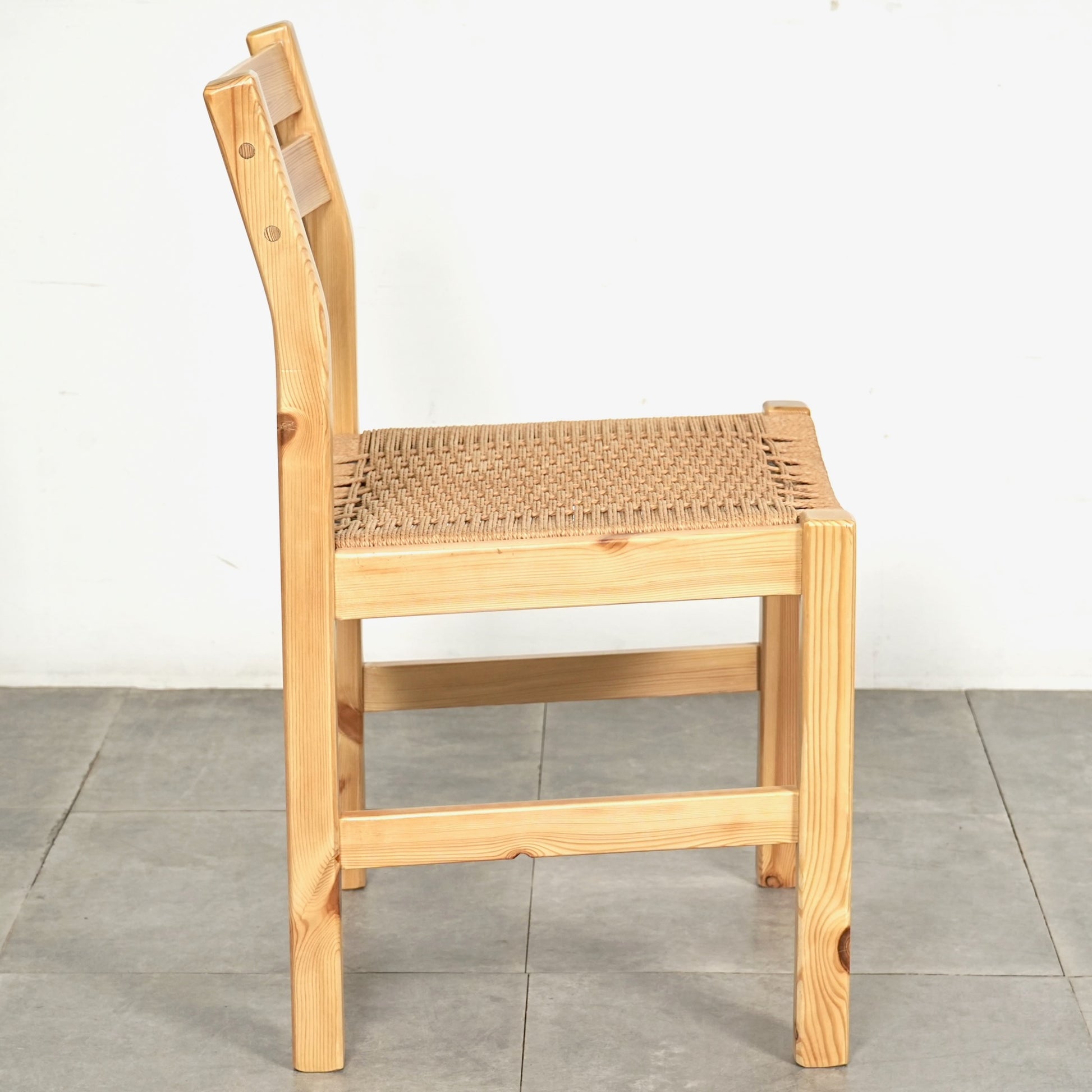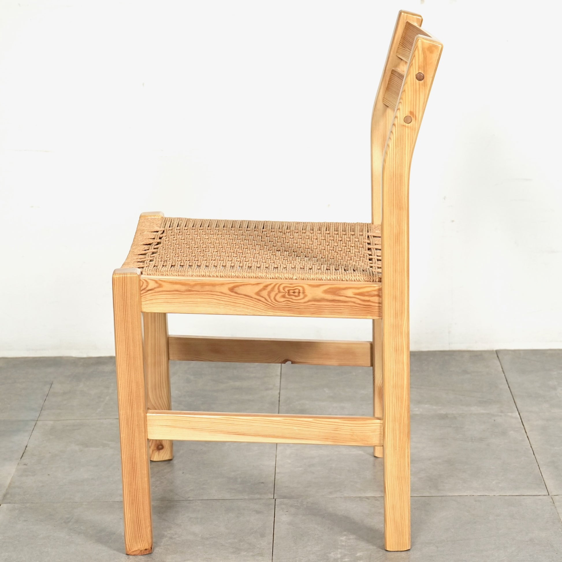フレームは経年による味わい深い表情を見せるパイン材を使用しており、座面には北欧家具らしくペーパーコードが丁寧に編み込まれています。
