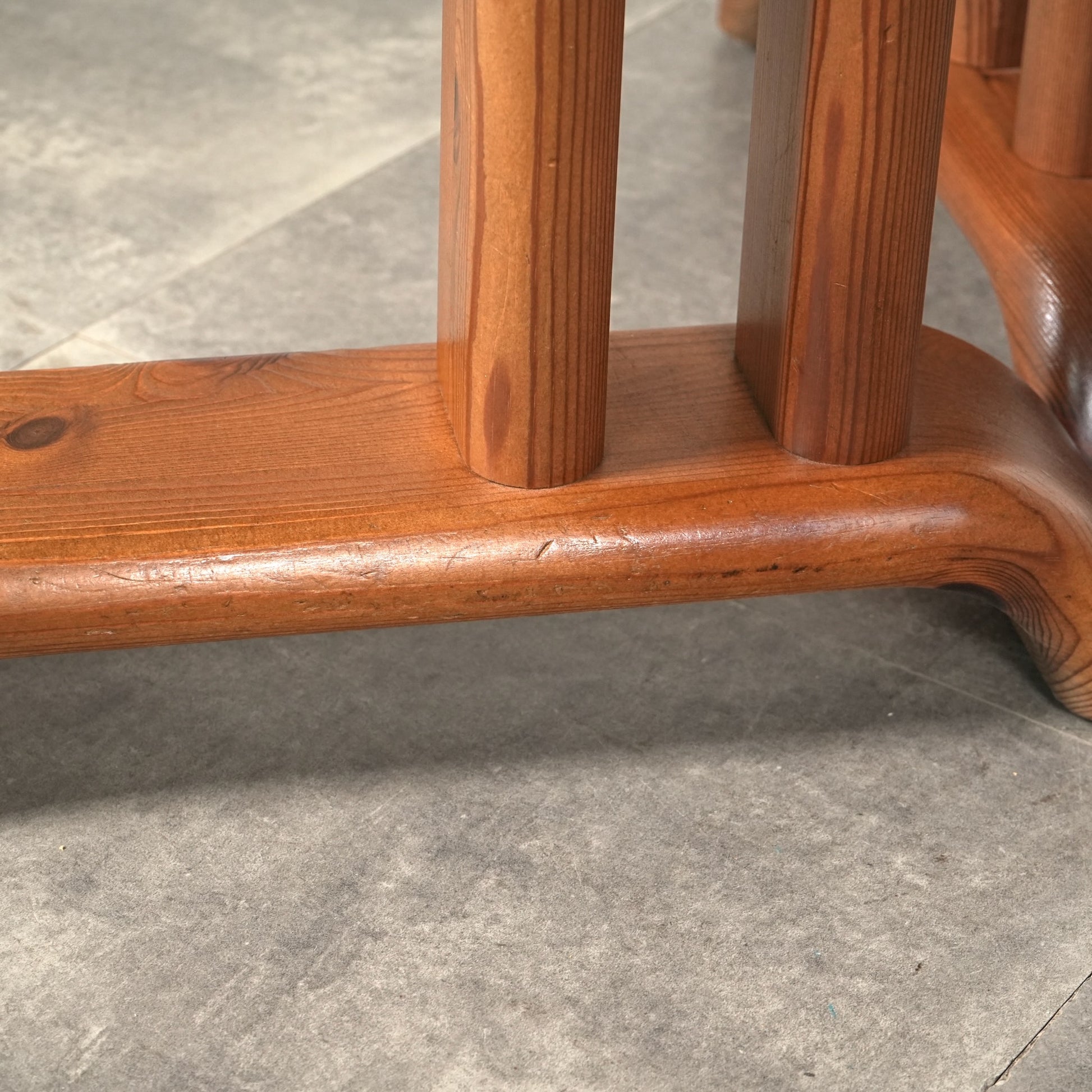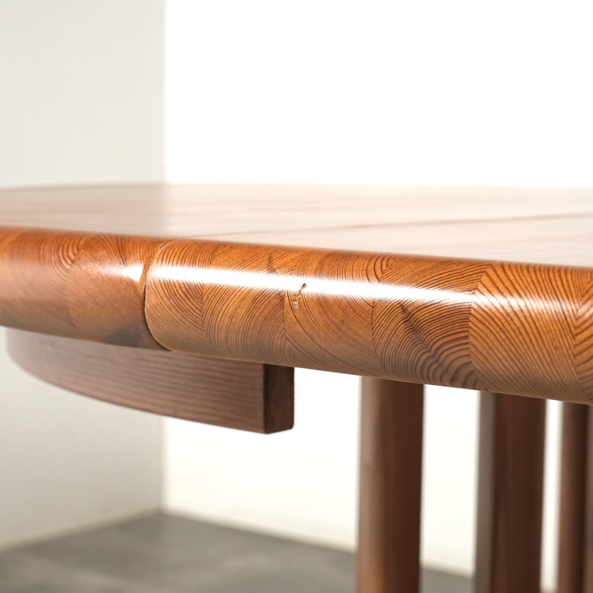 高品質のパイン無垢材を贅沢に使用しており、角のない丸みを帯びたフォルムやユニークな脚部のデザインなど、Rainer Daumillerが残した作品たちを彷彿とさせる佇まい。
