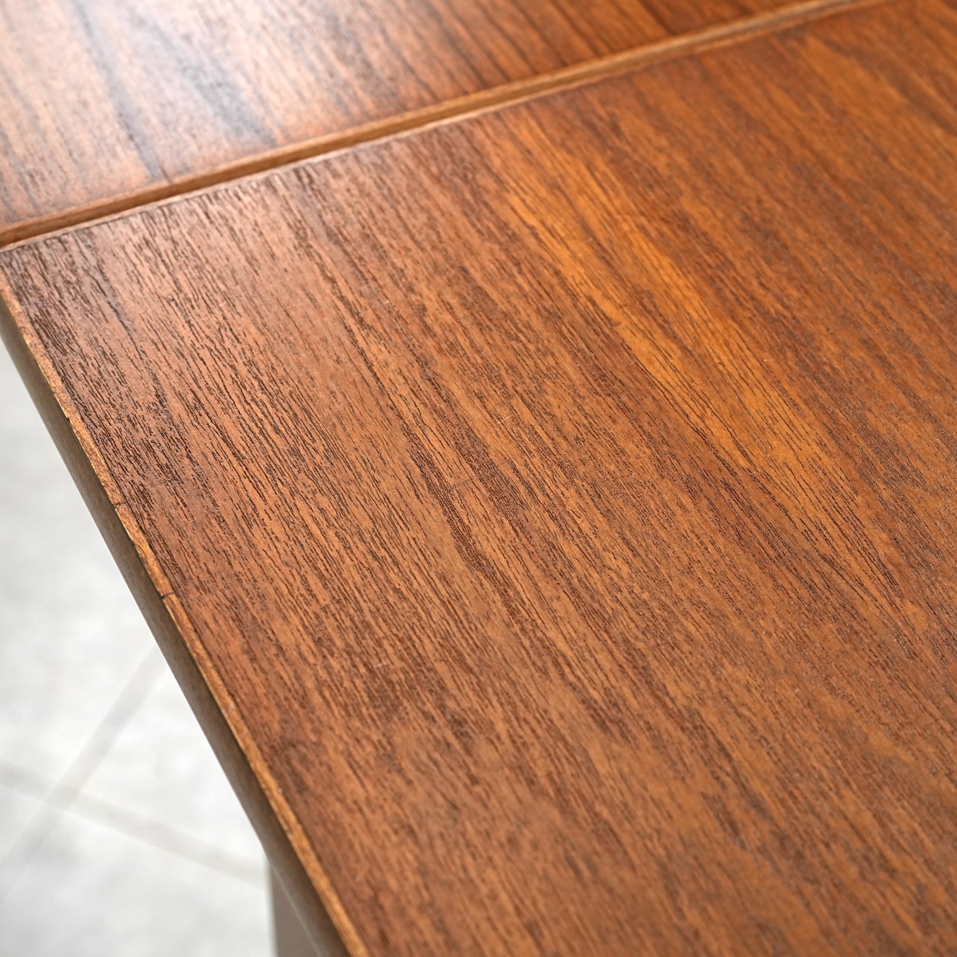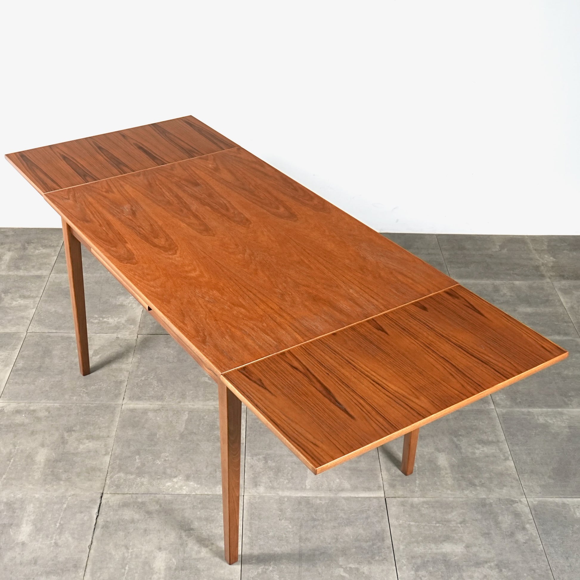 北欧ヴィンテージの定番アイテムとして世界中で愛されるアイテムの1つで、ドローリーフとは天板を拡張する際に軽く持ち上げて下の拡張板を引き出すと上の天板が沈みフラットになる仕組みです。