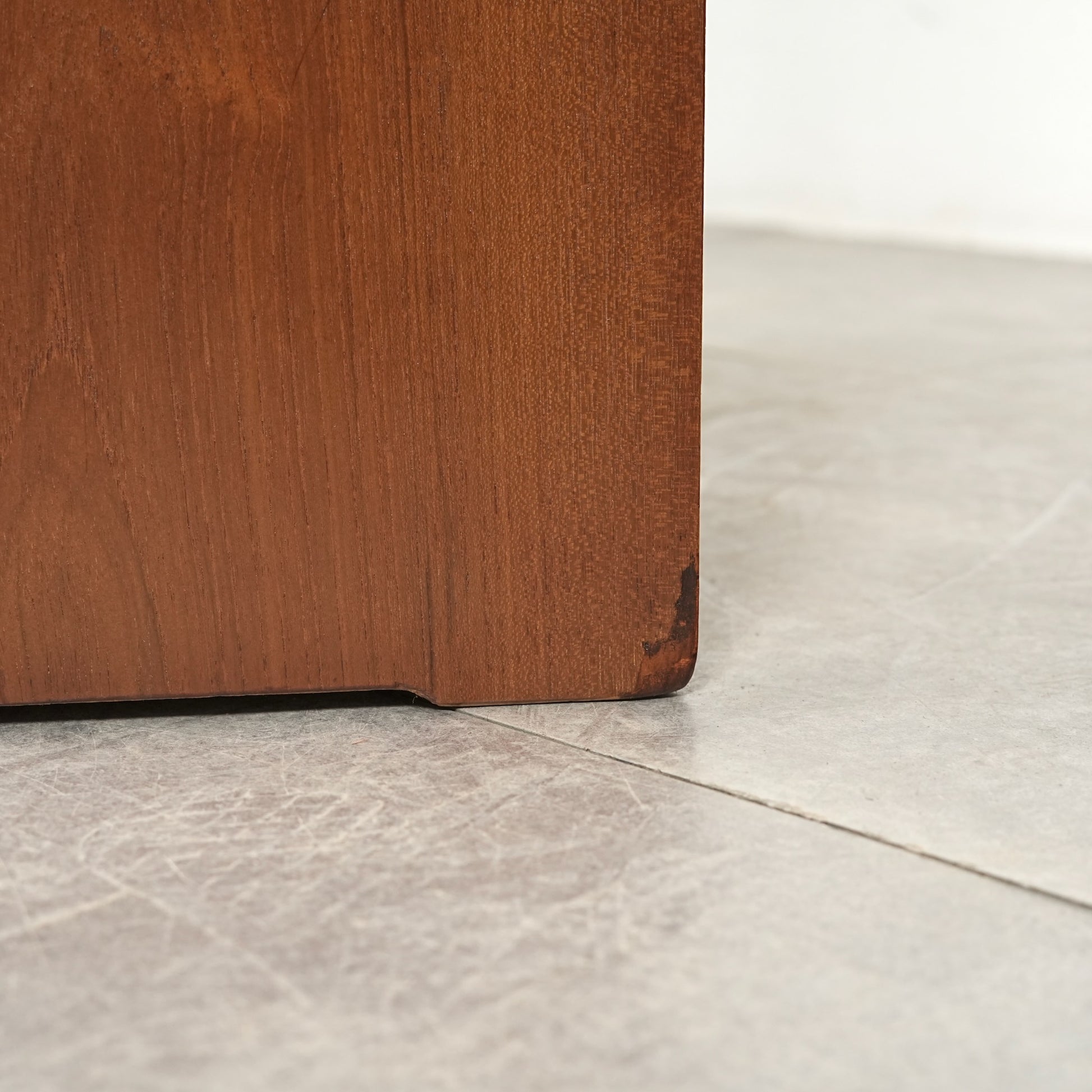 北欧らしい良質なチーク材の魅力が際立つミニマルデザインが特徴で、高いクラフトマンシップを必要とする蛇腹式の扉を採用しており、扉を開けると扉自体がどんどん内部に収納されていく高品質なヴィンテージアイテムです。
