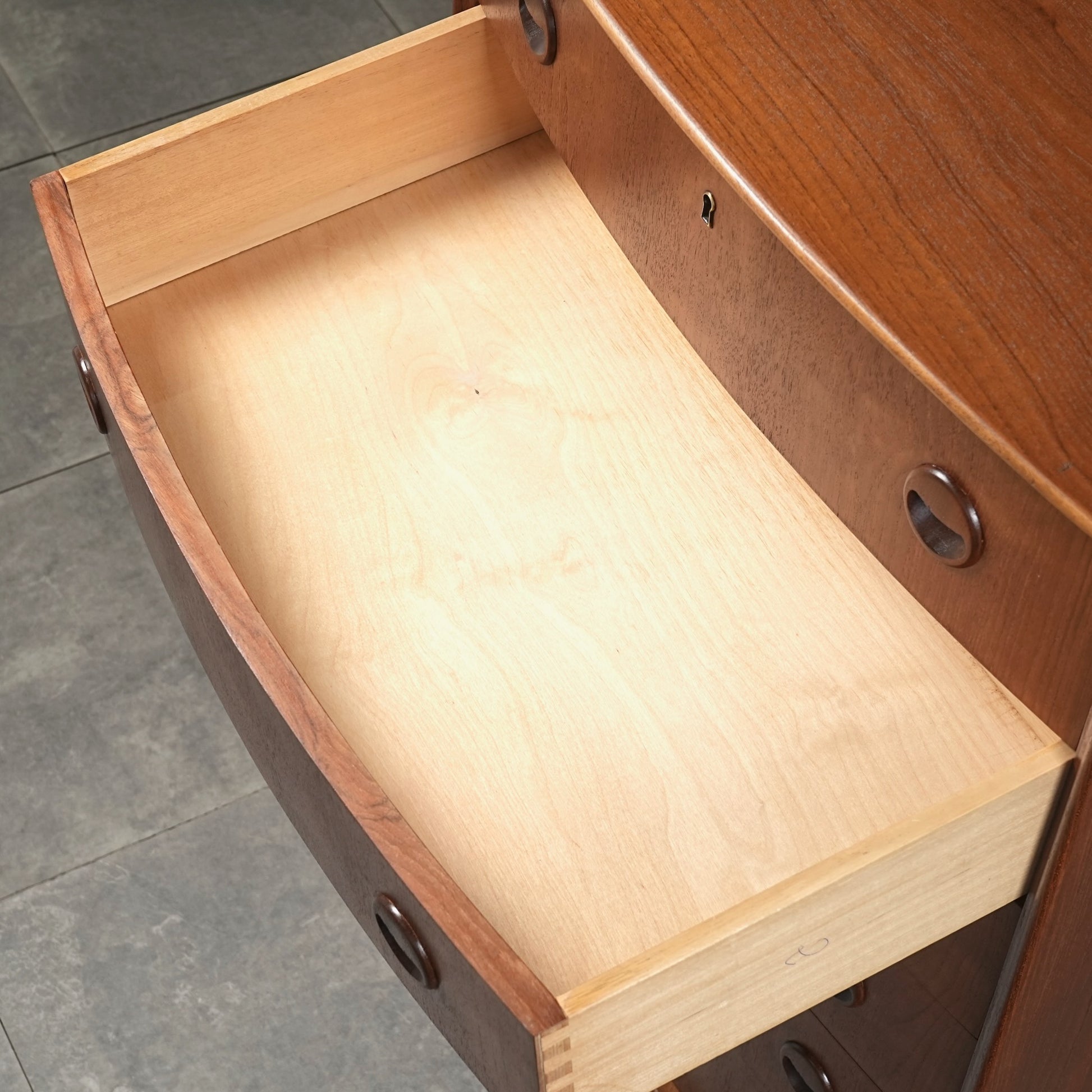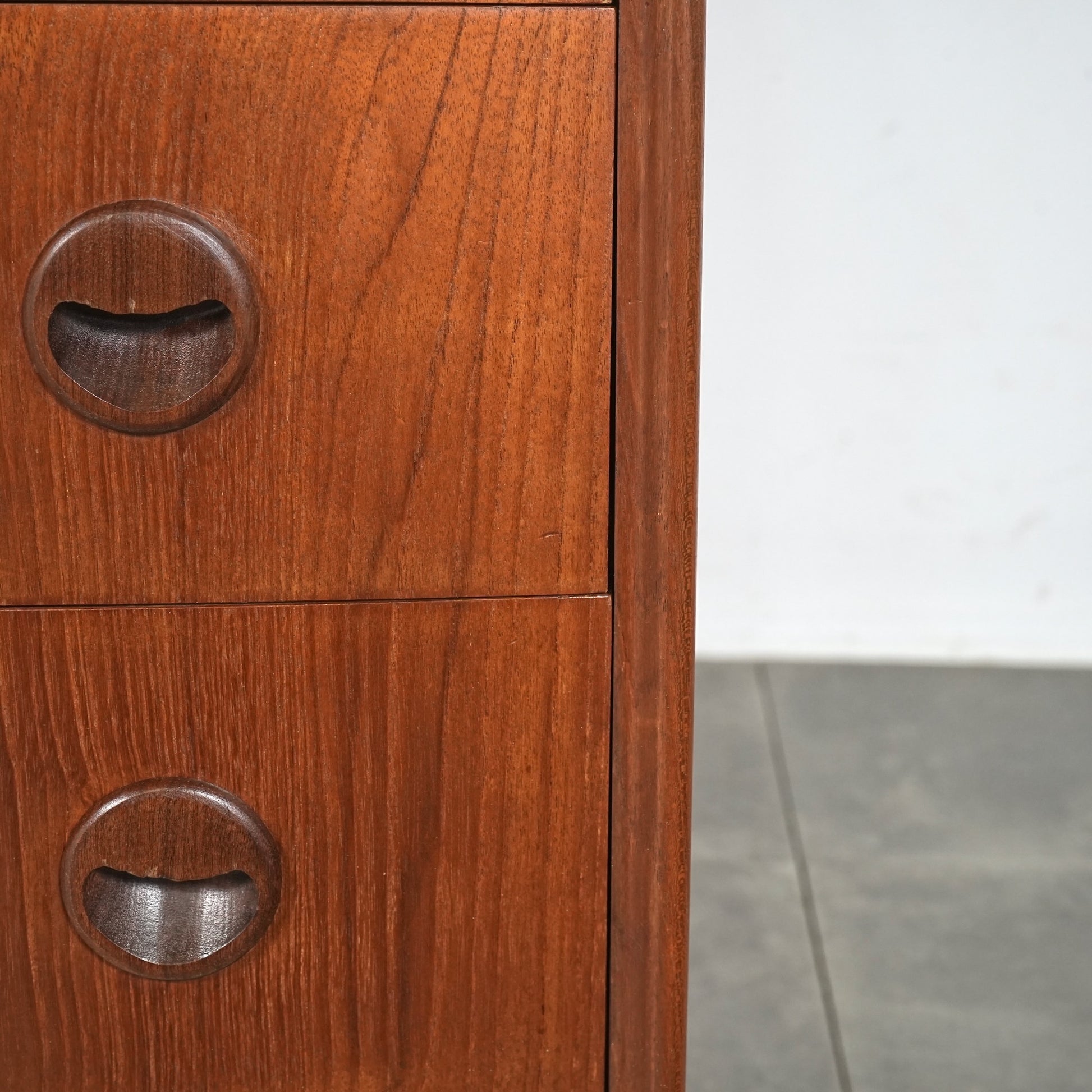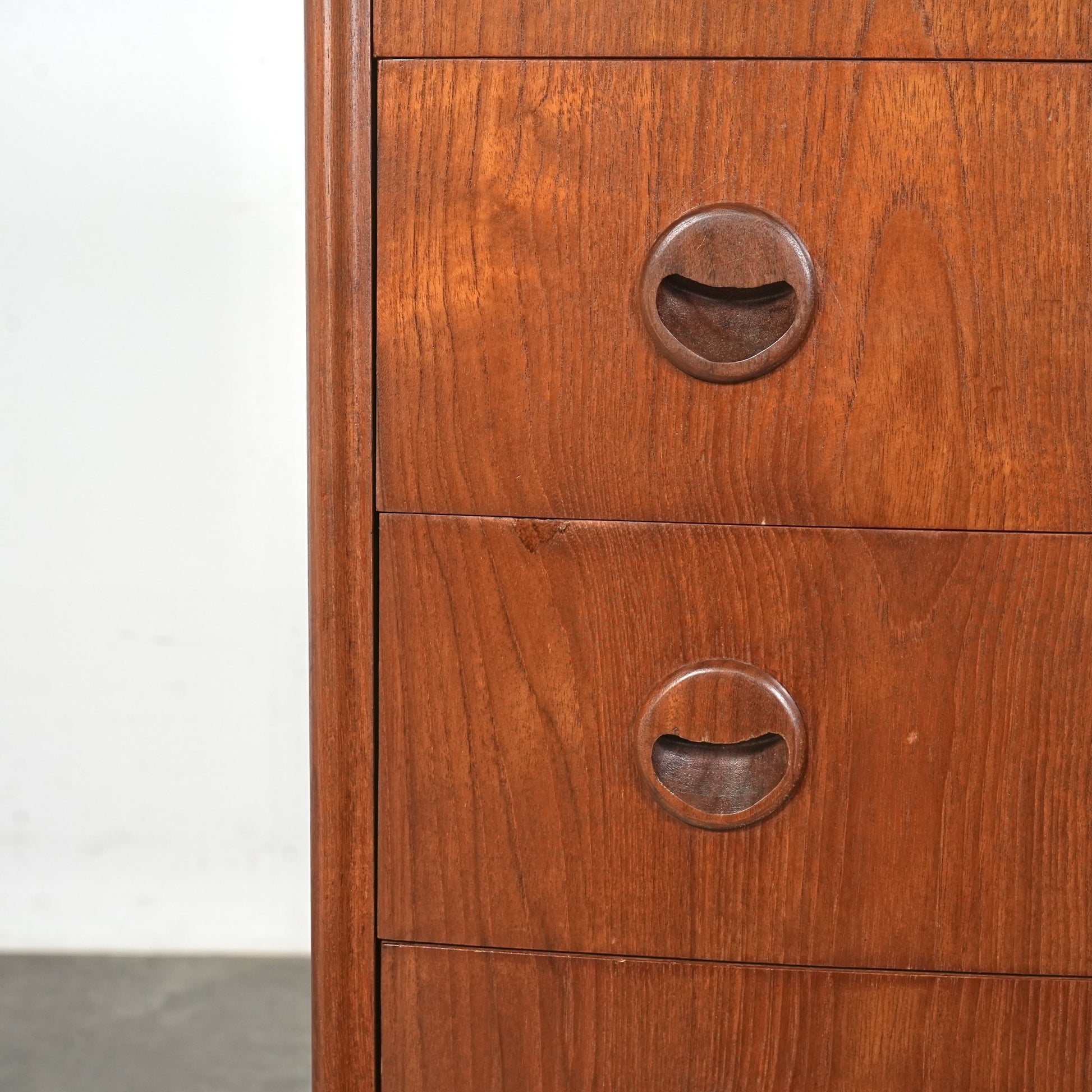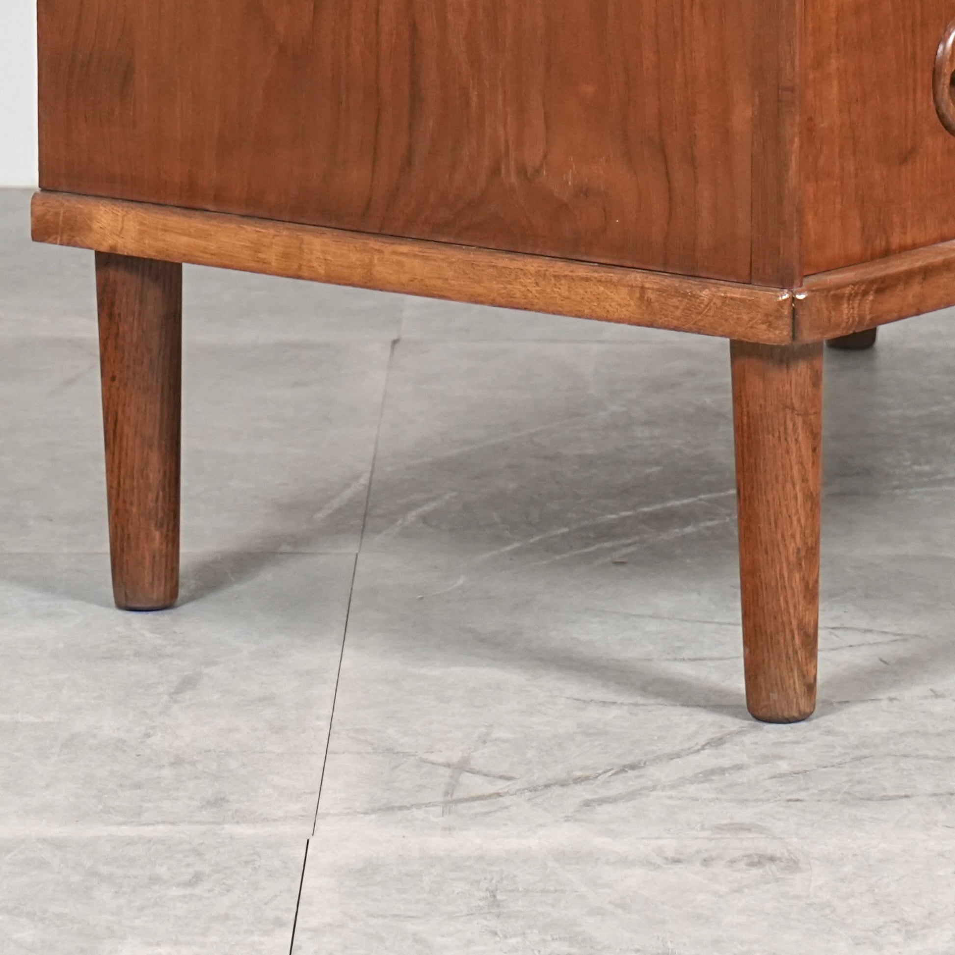 ミッドセンチュリーらしさが詰まった本当に美しいデザインで、削り出しで作られた見事な取手やフロントのさりげない曲面など、北欧らしいクラフトマンシップによって細部まで丁寧に作り込まれており、この時代の美意識が確かに宿るハイグレードなヴィンテージアイテムです。