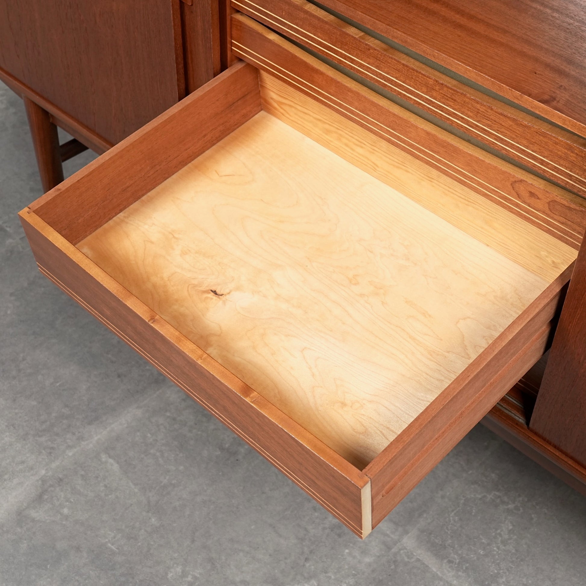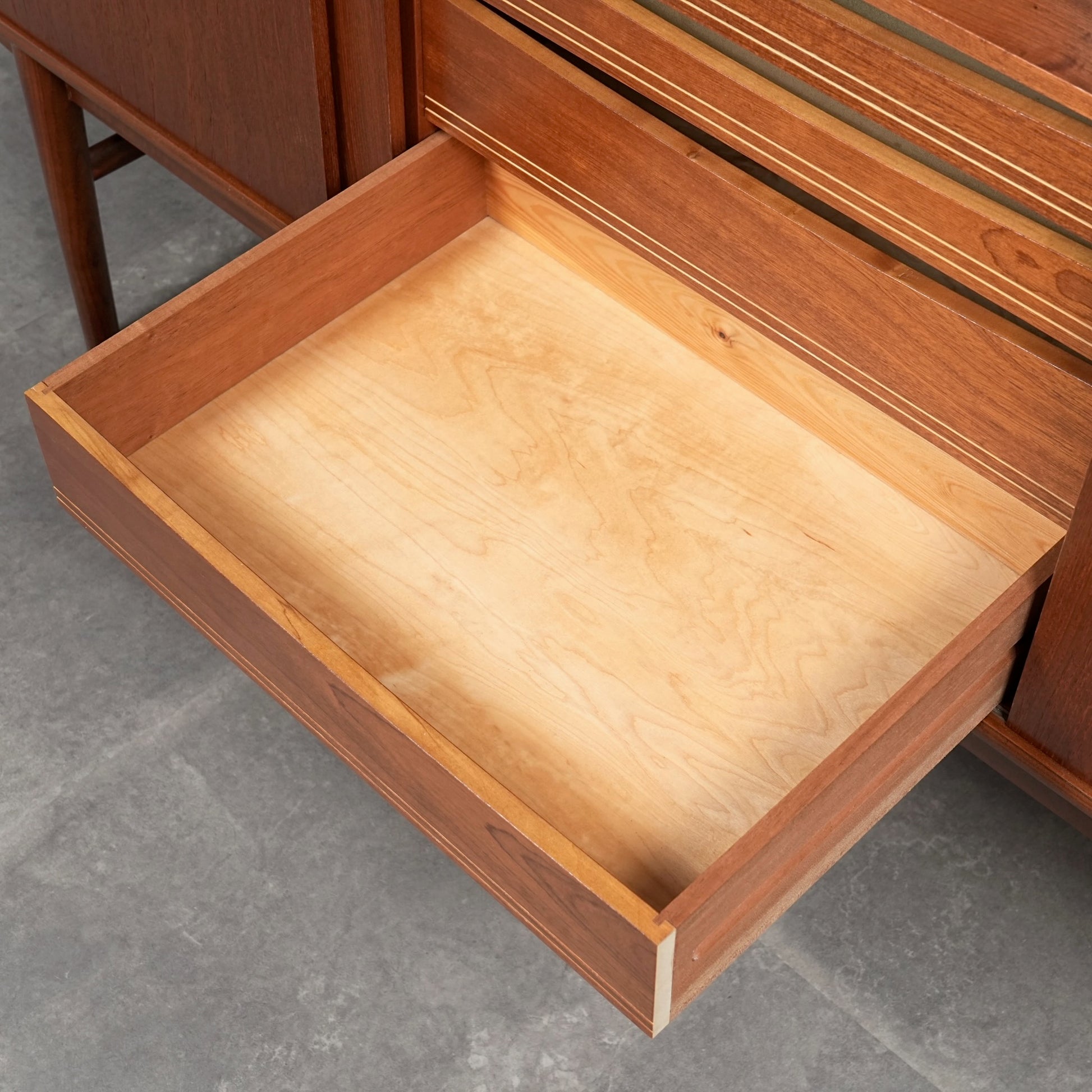 ミッドセンチュリーらしさが詰まった美しいミニマルデザインで、可愛らしい取手やシャープな脚部、内部の丁寧な作りなど、北欧らしい美意識と高いクラフトマンシップが光る、非常にハイグレードなヴィンテージアイテムと言えるでしょう。