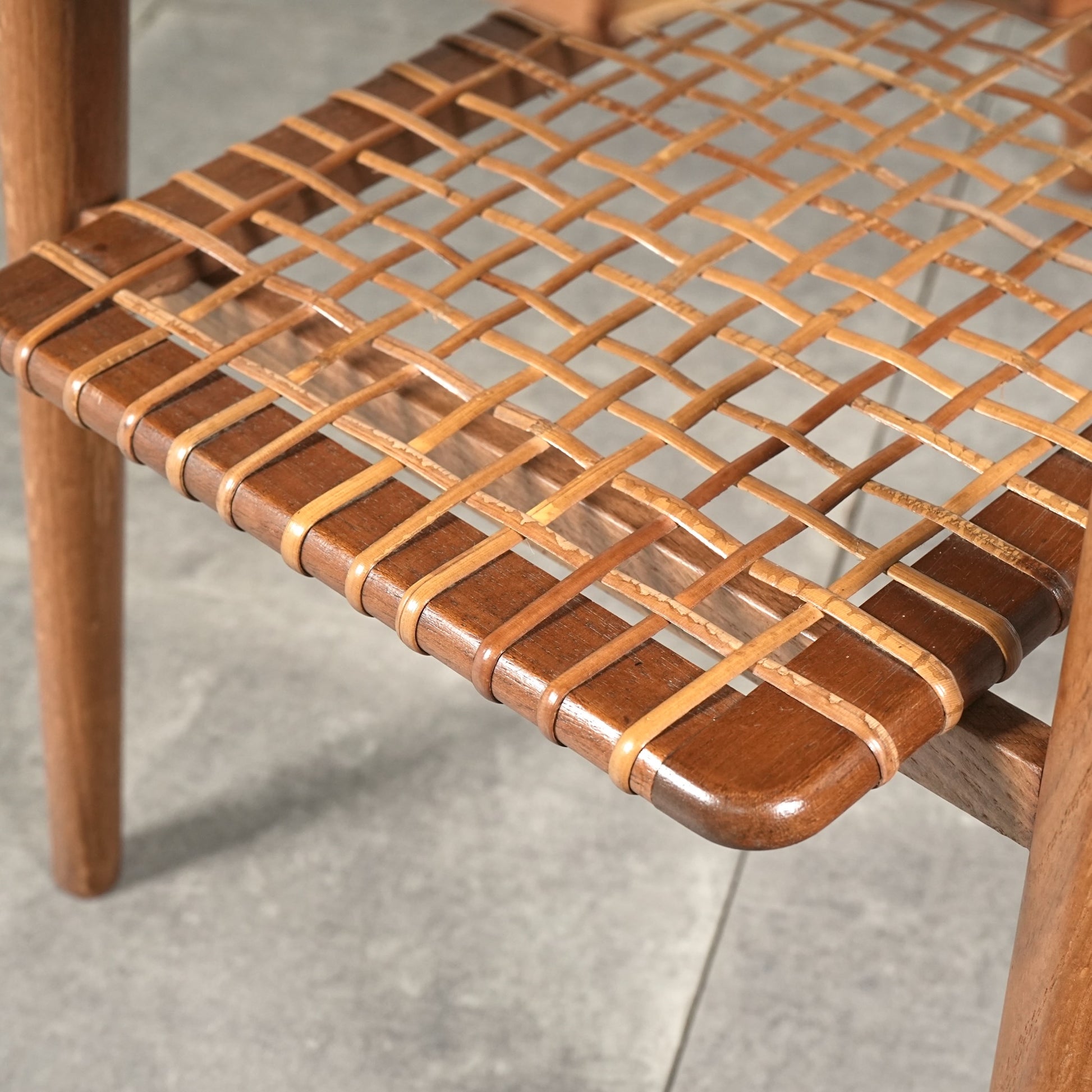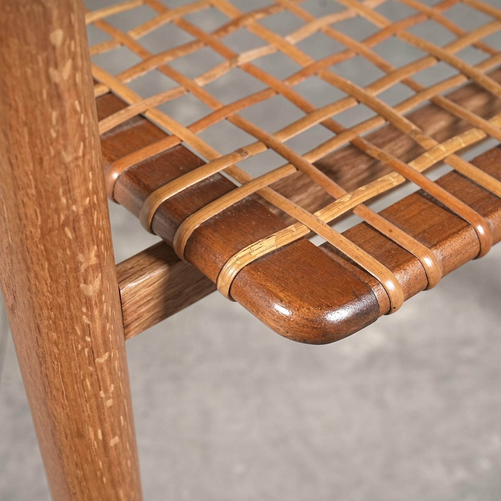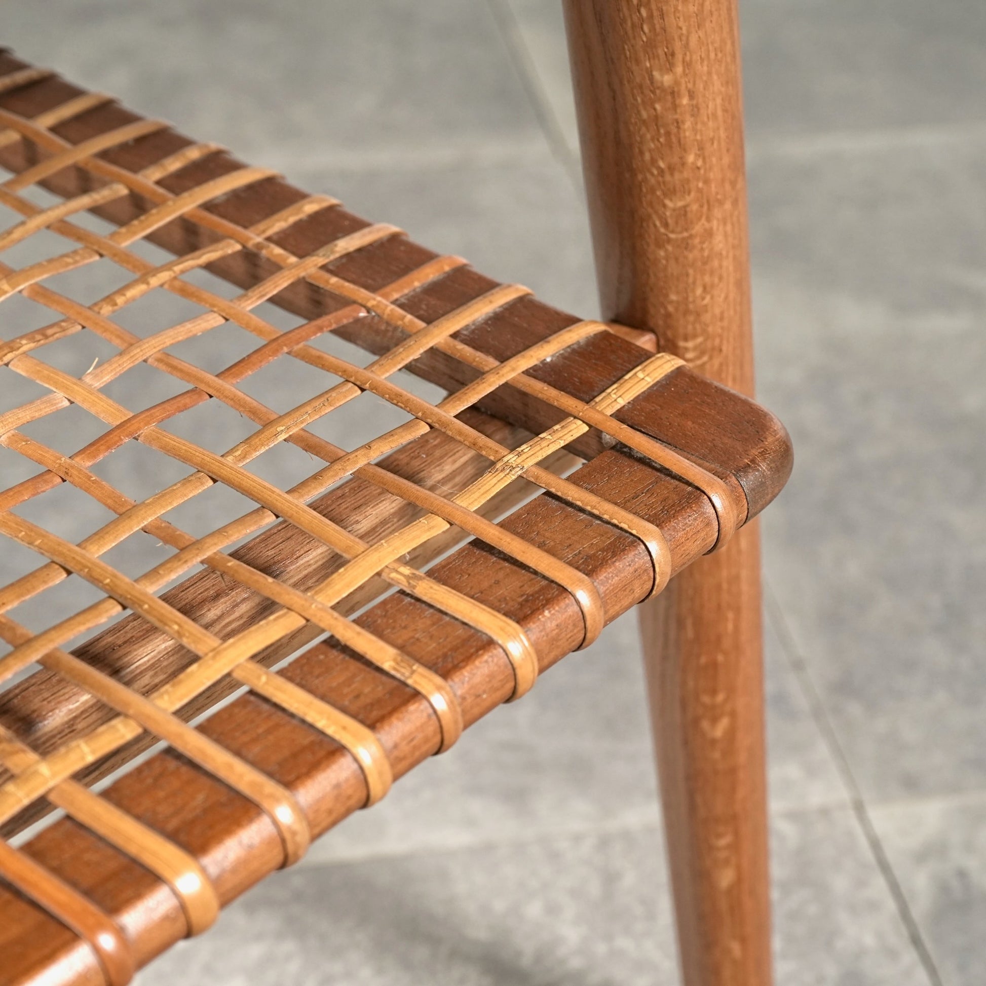 チーク材×オーク材×ラタンという素材使いが印象的で、無駄のないシャープなミニマルデザインの中に、それぞれの質感が絶妙なコントラストを生み出しています。