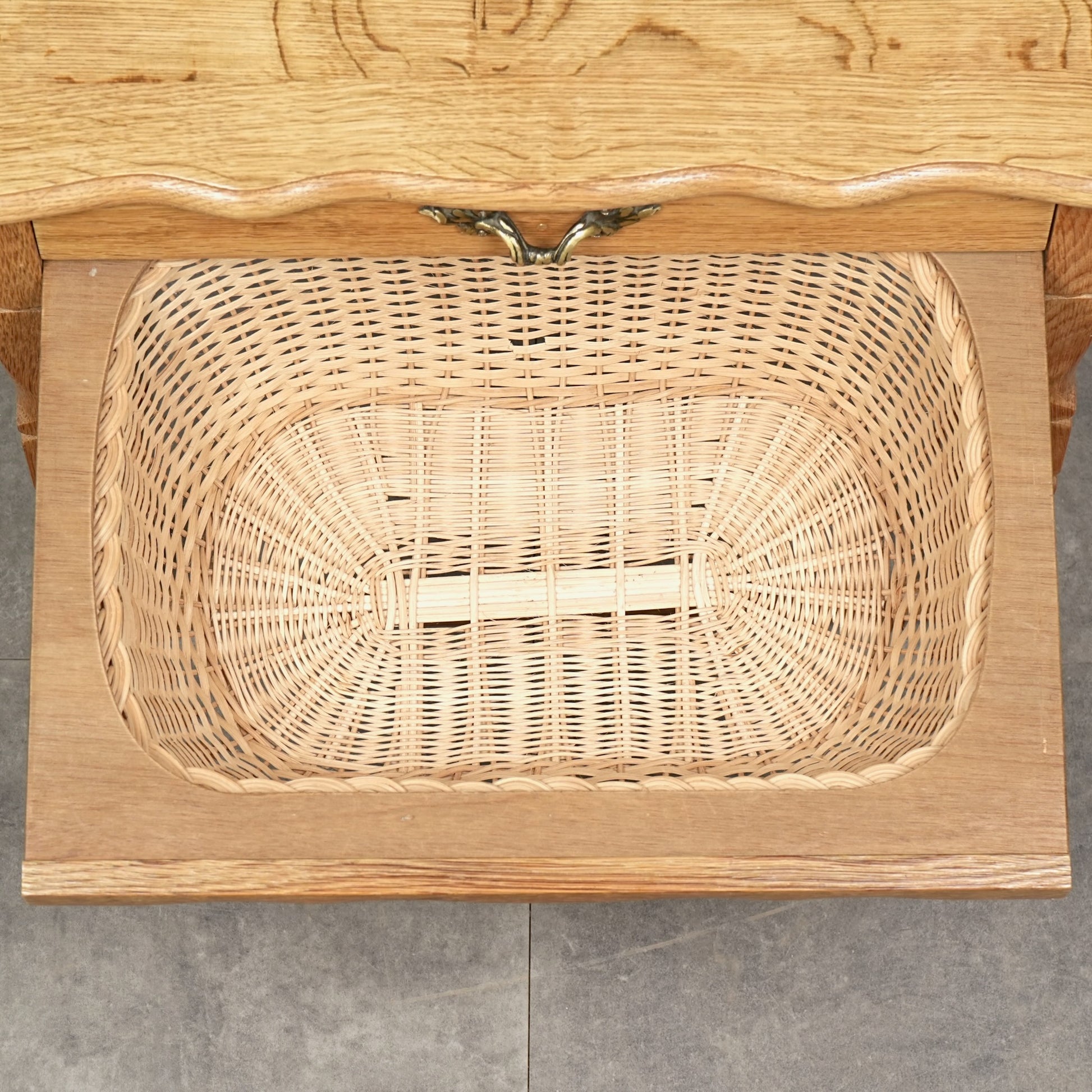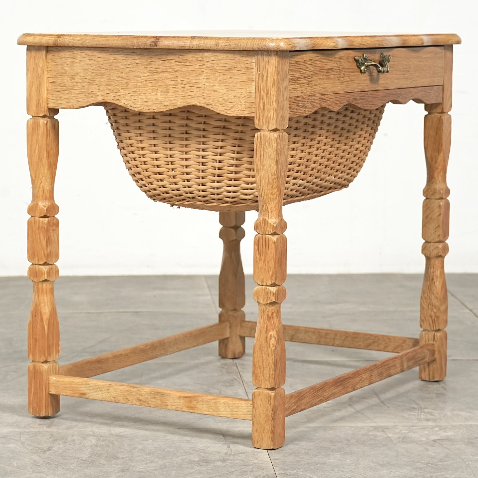 良質なオーク材の質感×籐編みのバスケットの秀逸な組み合わせで、小型家具ながらもインテリアの中でしっかりとしたアクセントとして活躍してくれます。