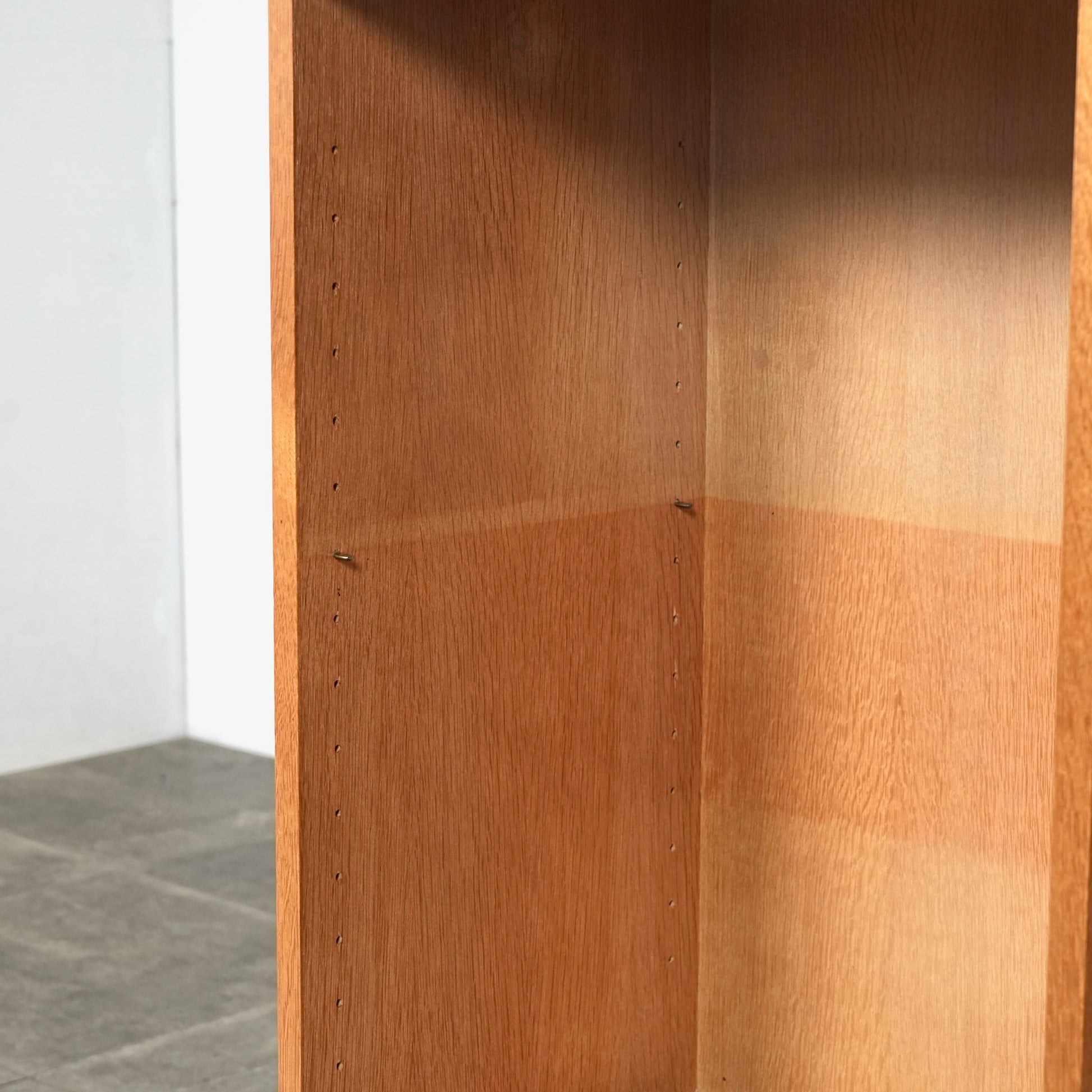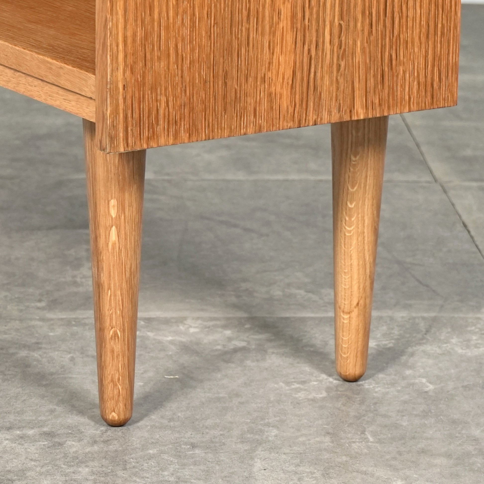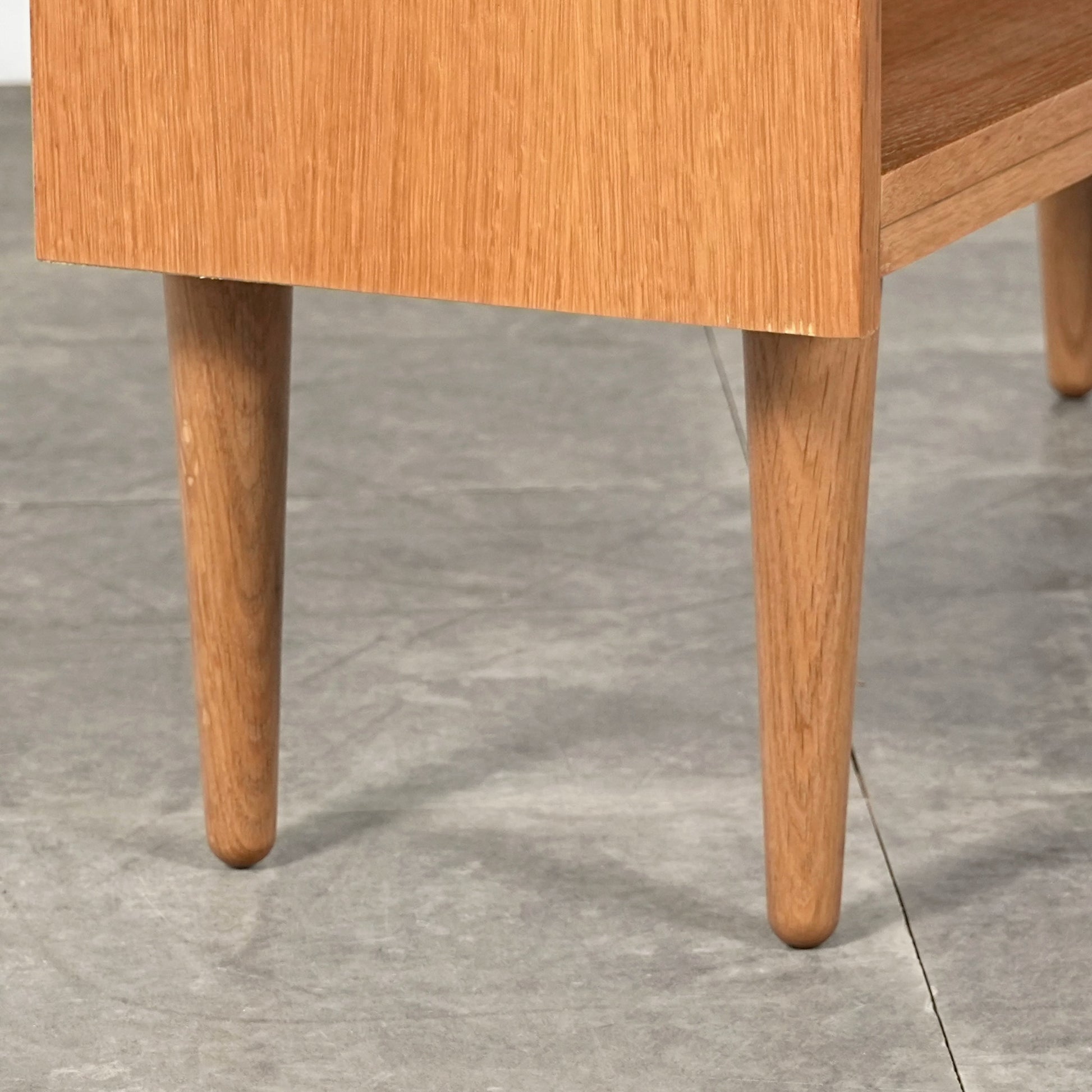 オークの柔らかい色味に対して、チーク特有の深みのあるブラウンが上品なアクセントとなっており、ミニマルなフォルムの中に北欧家具らしい美意識が感じられる一台です。