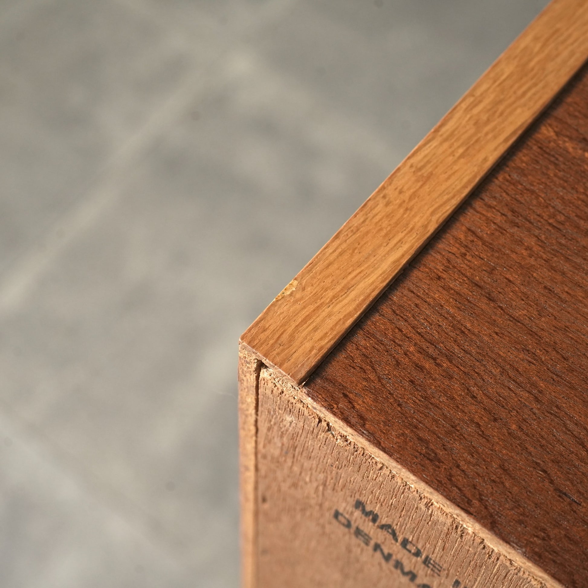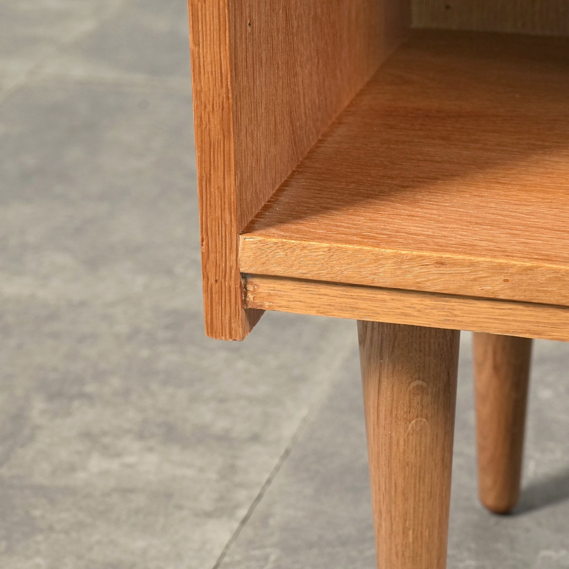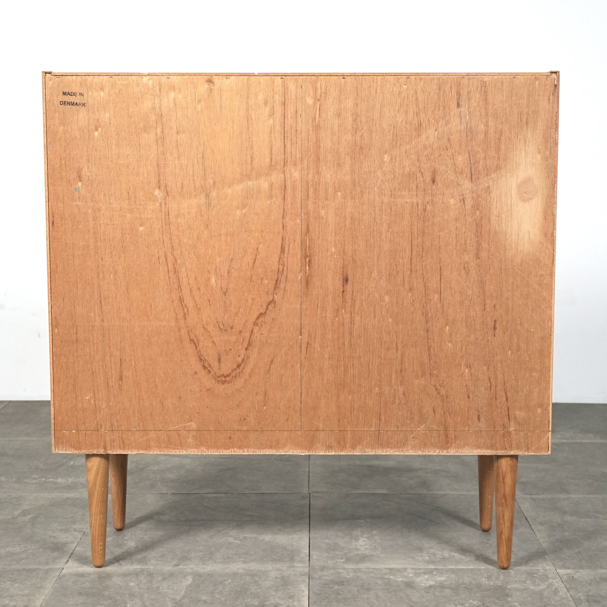 オークの柔らかい色味に対して、チーク特有の深みのあるブラウンが上品なアクセントとなっており、ミニマルなフォルムの中に北欧家具らしい美意識が感じられる一台です。