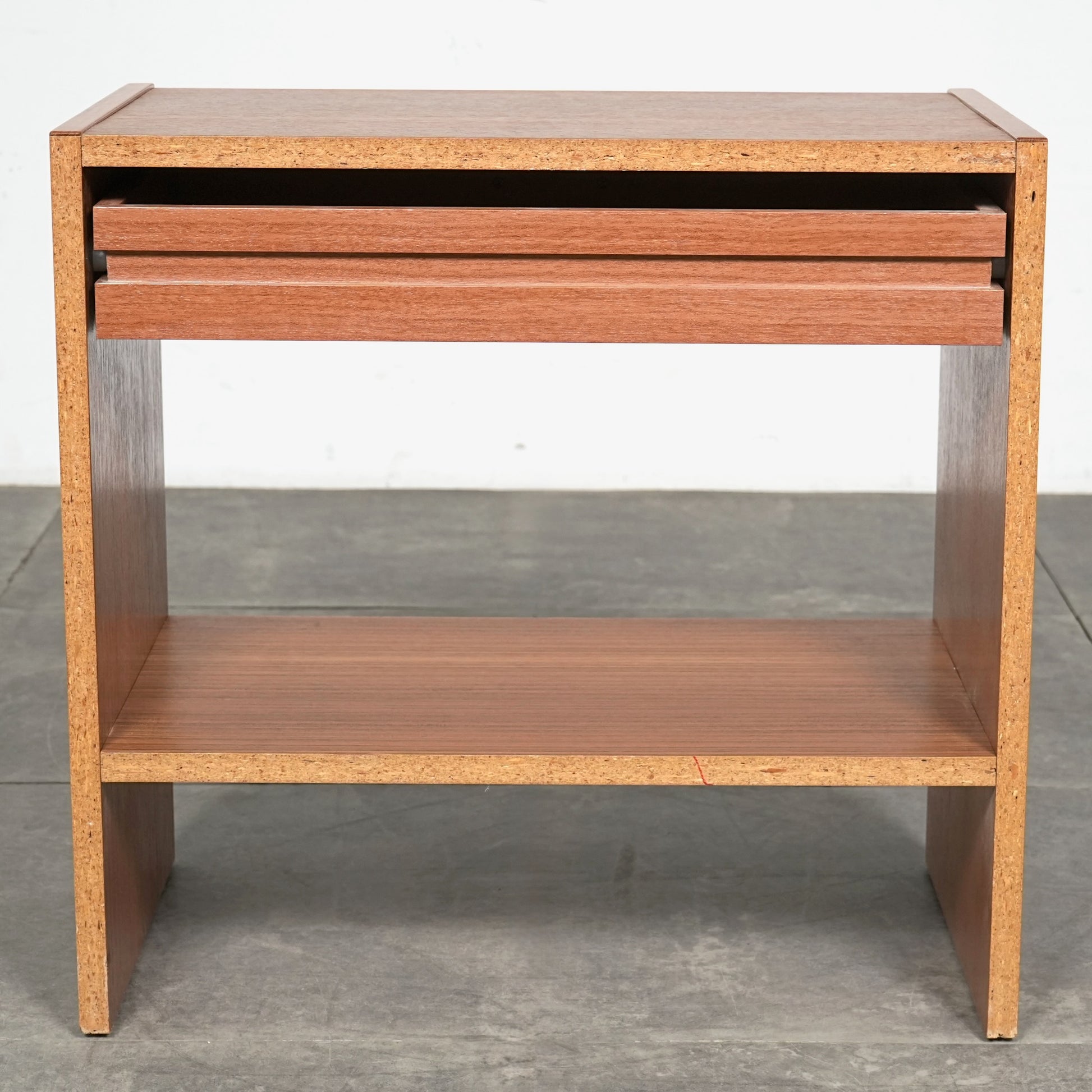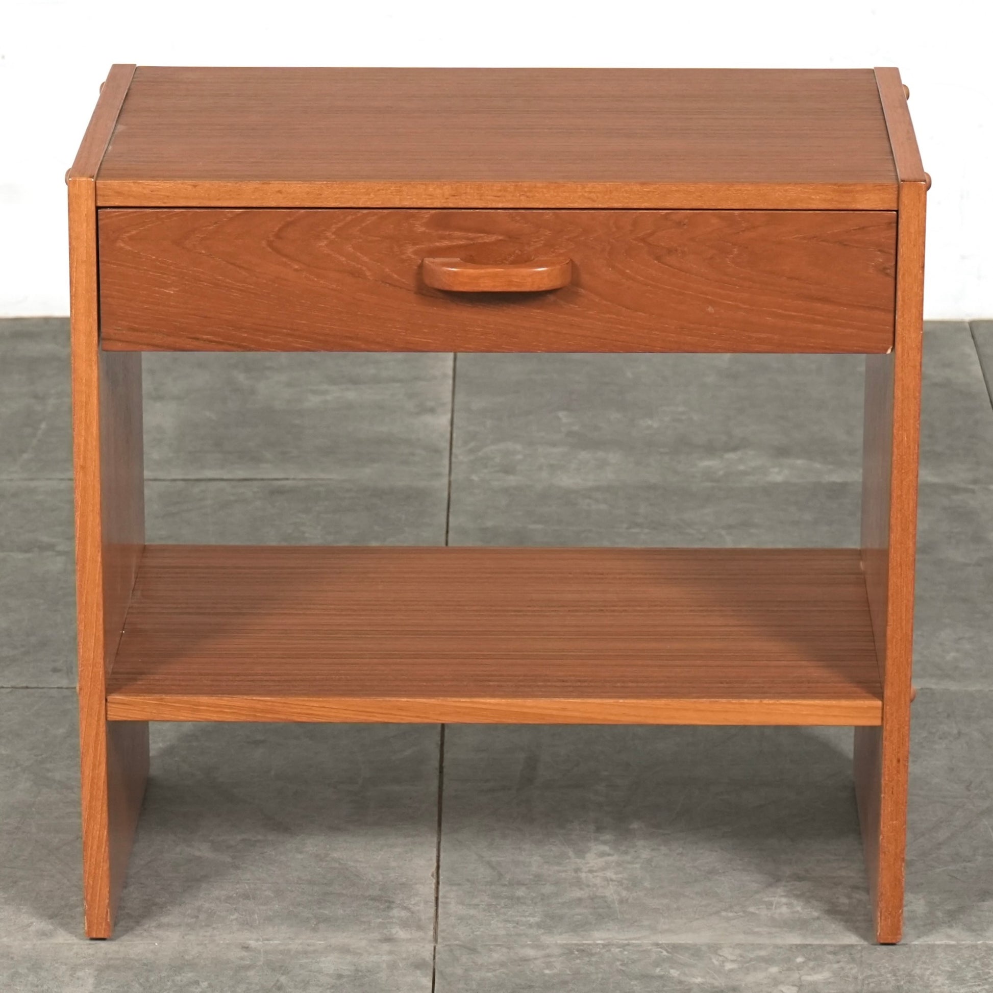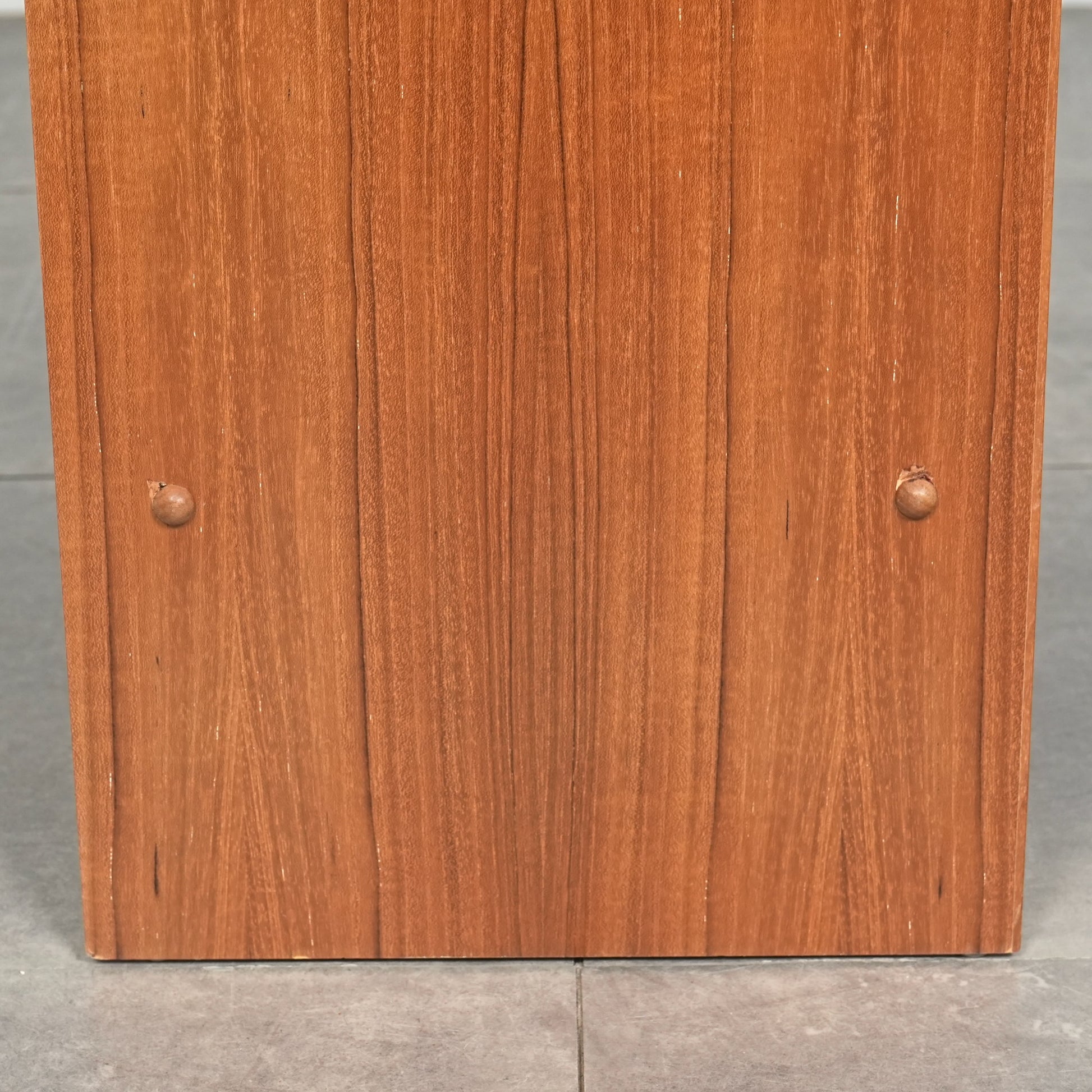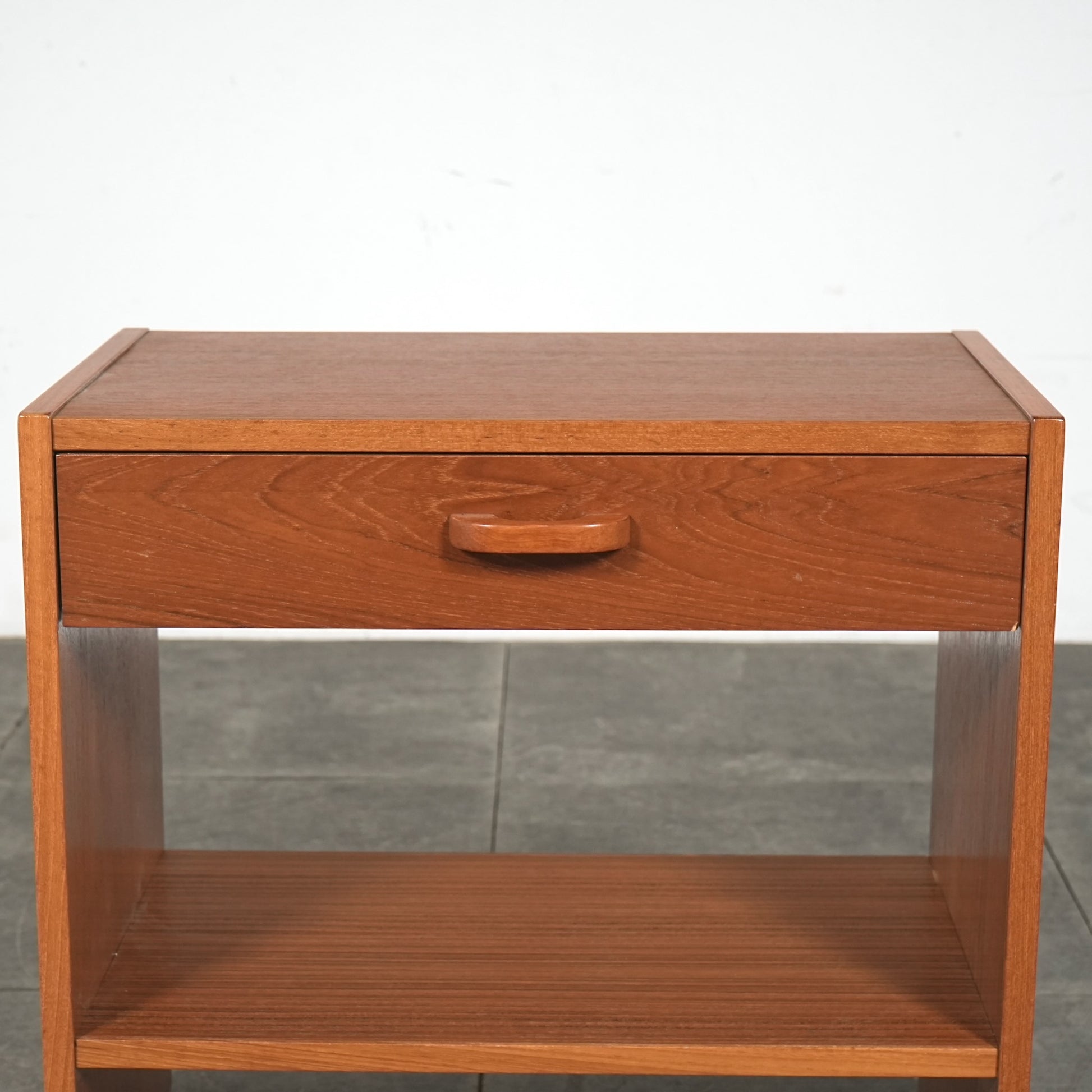 良質なチーク材の質感が際立つミニマルな構成で、削り出しの可愛いらしい取手が良いアクセントになっています。