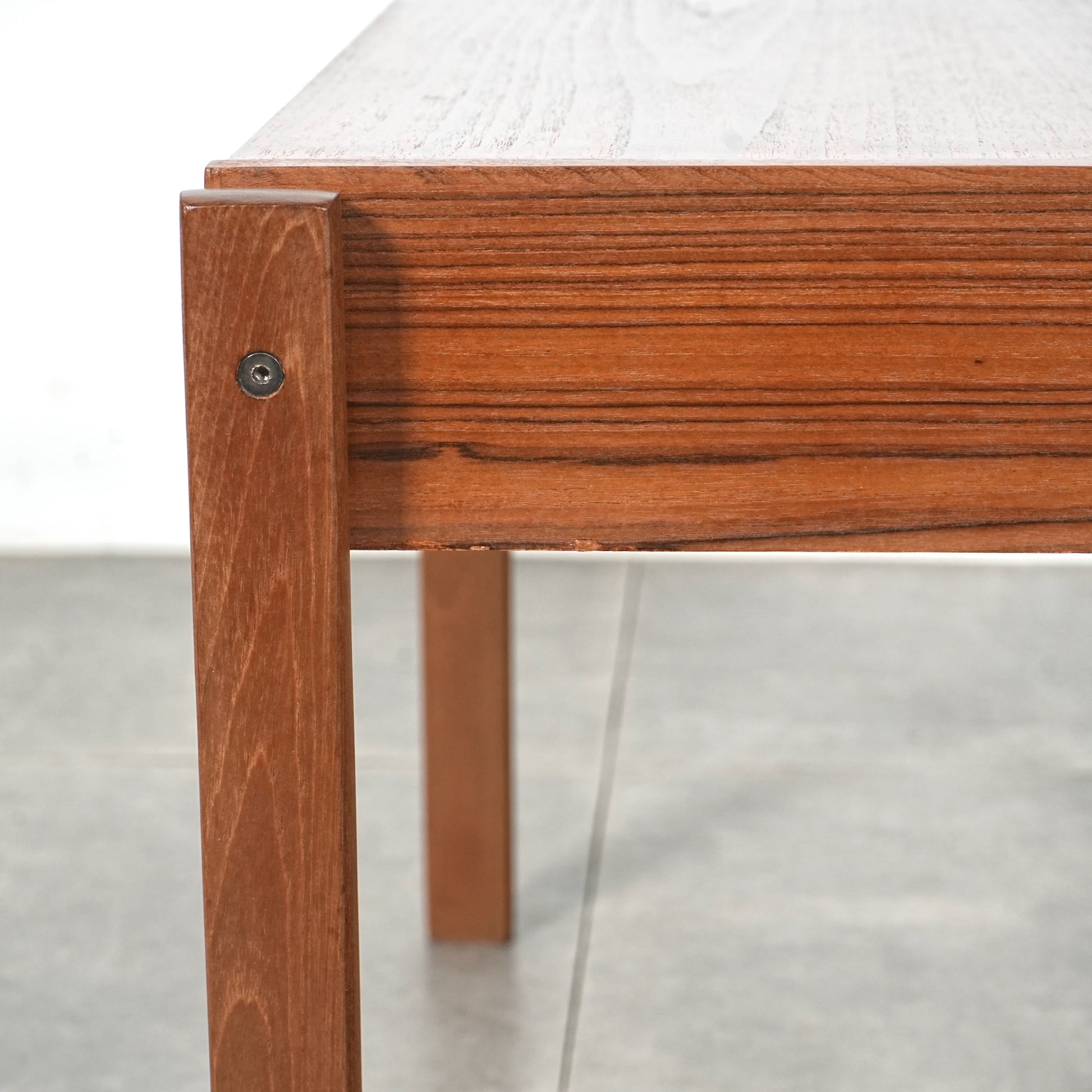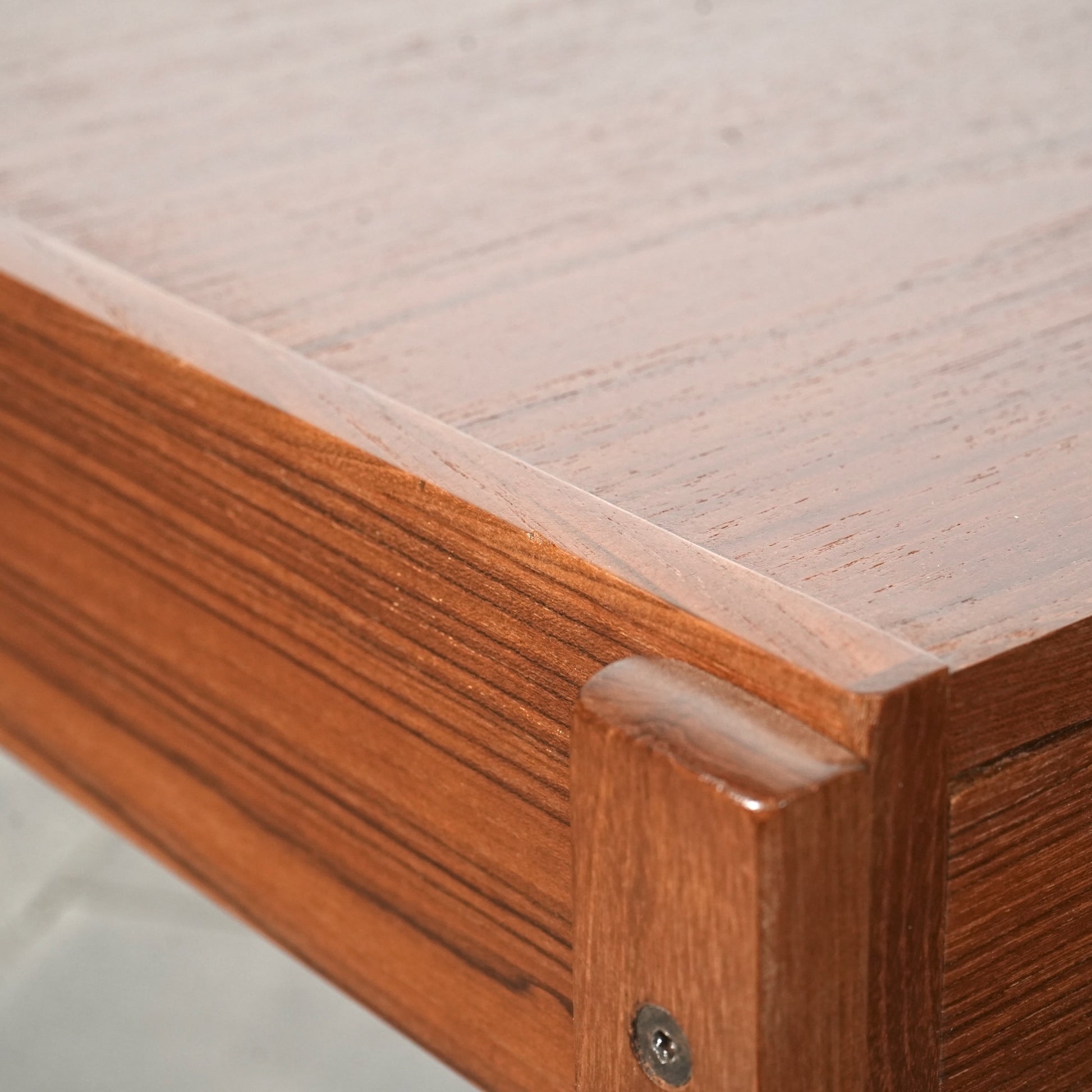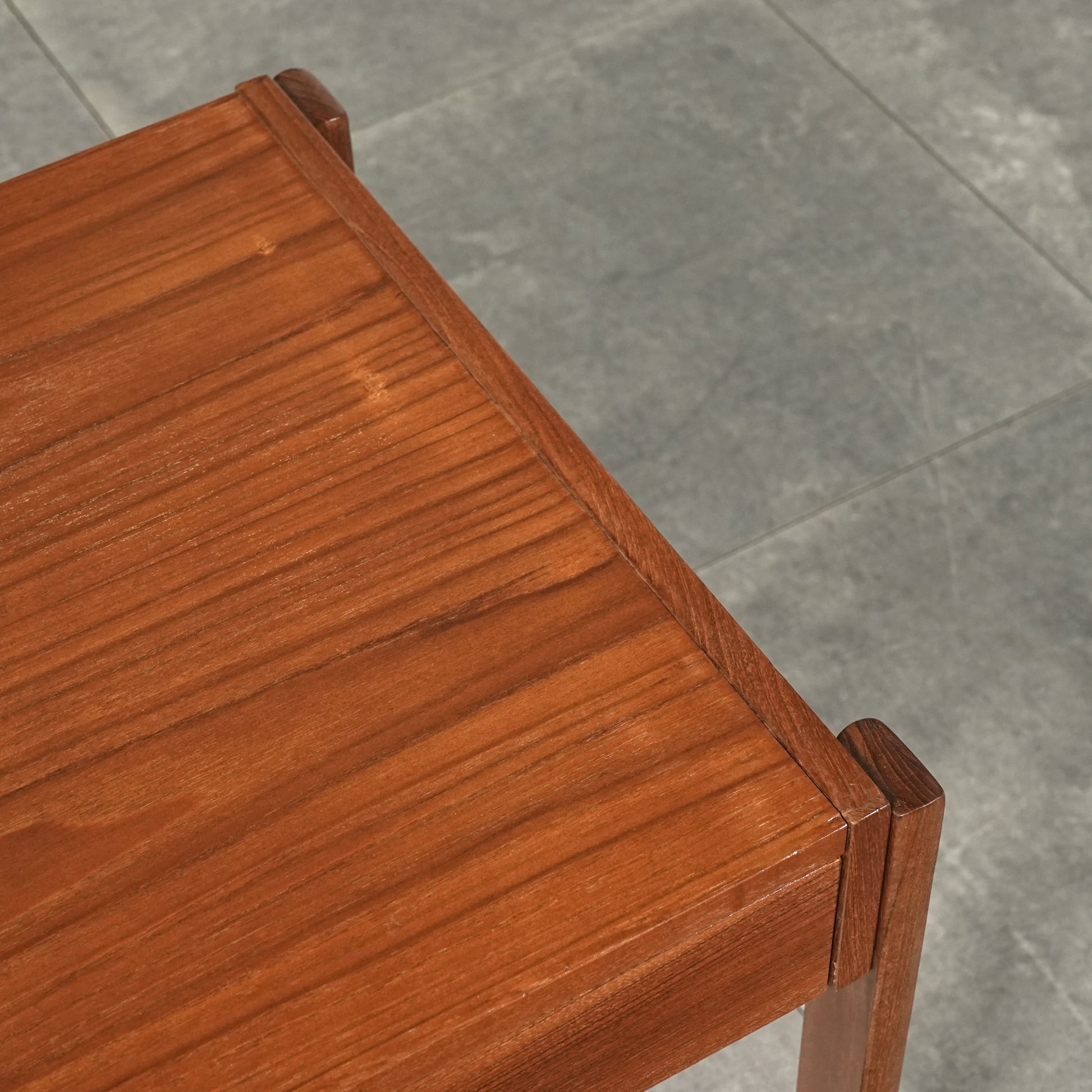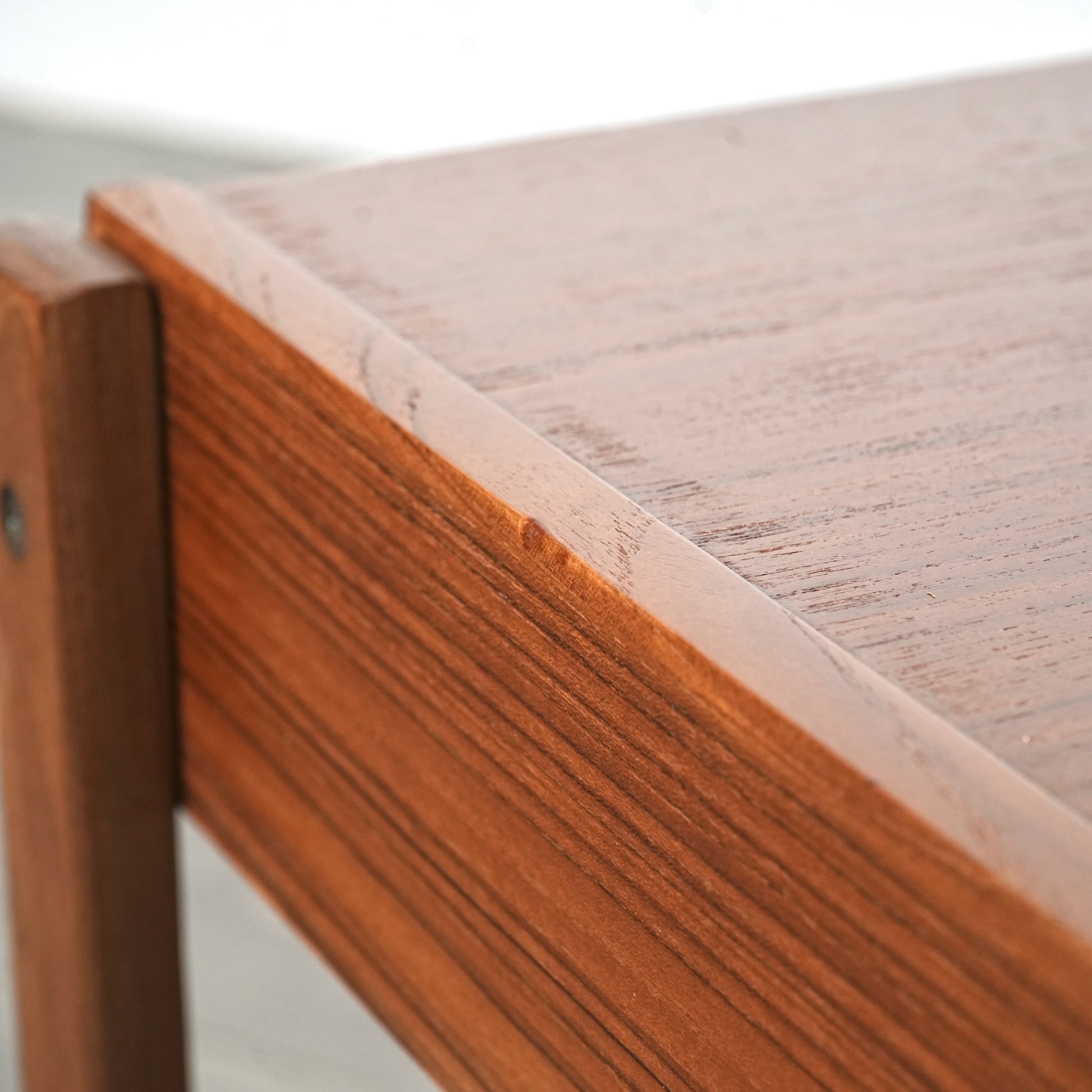 良質なチーク材を使用した天板は温かみのある美しい質感が魅力で、全体の直線的なフォルムも相まって、ミッドセンチュリー家具らしい佇まい。