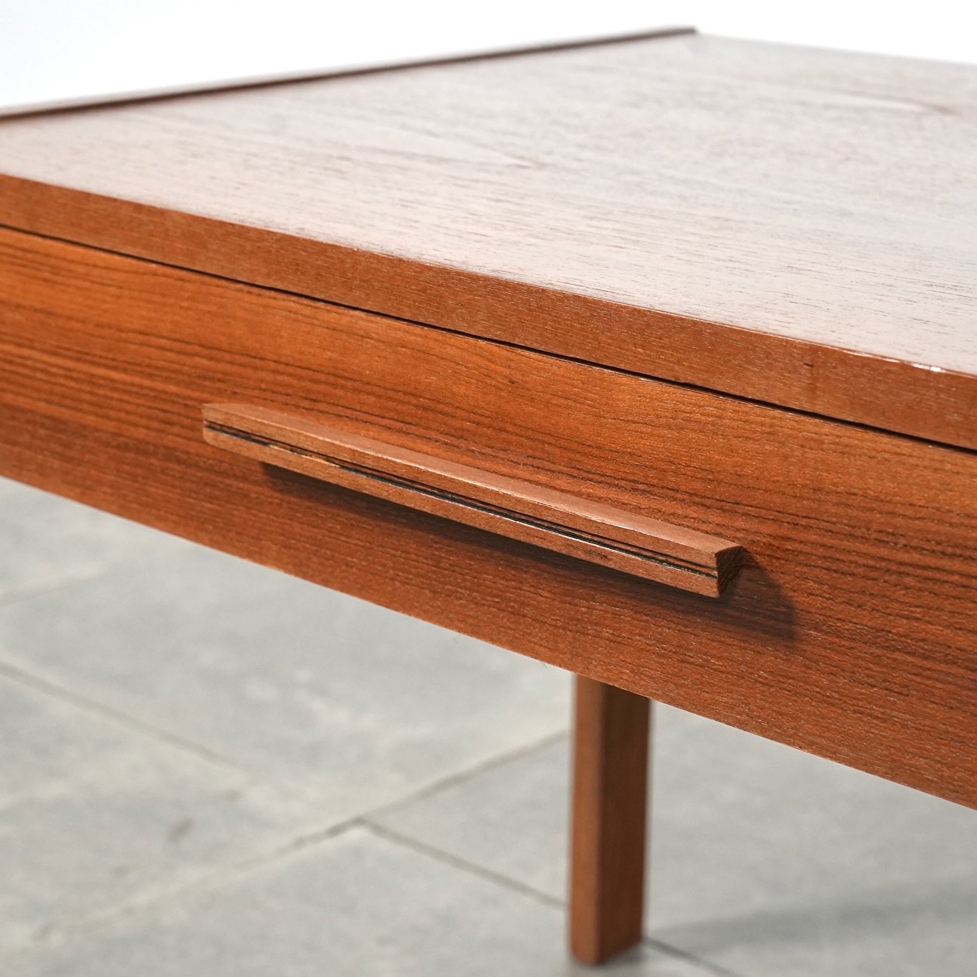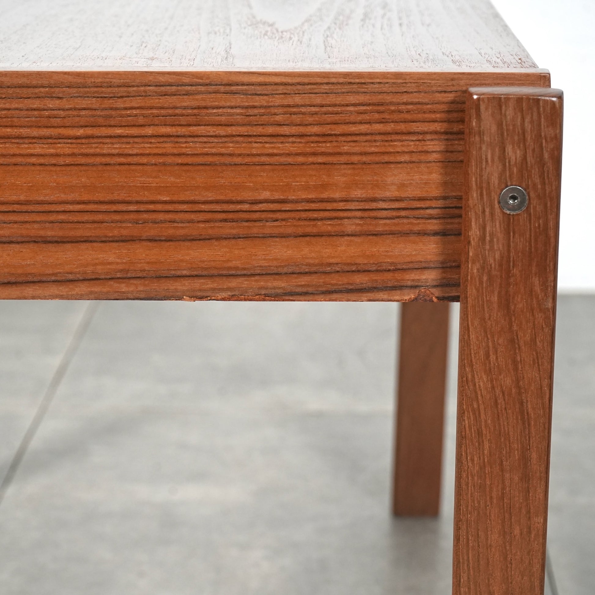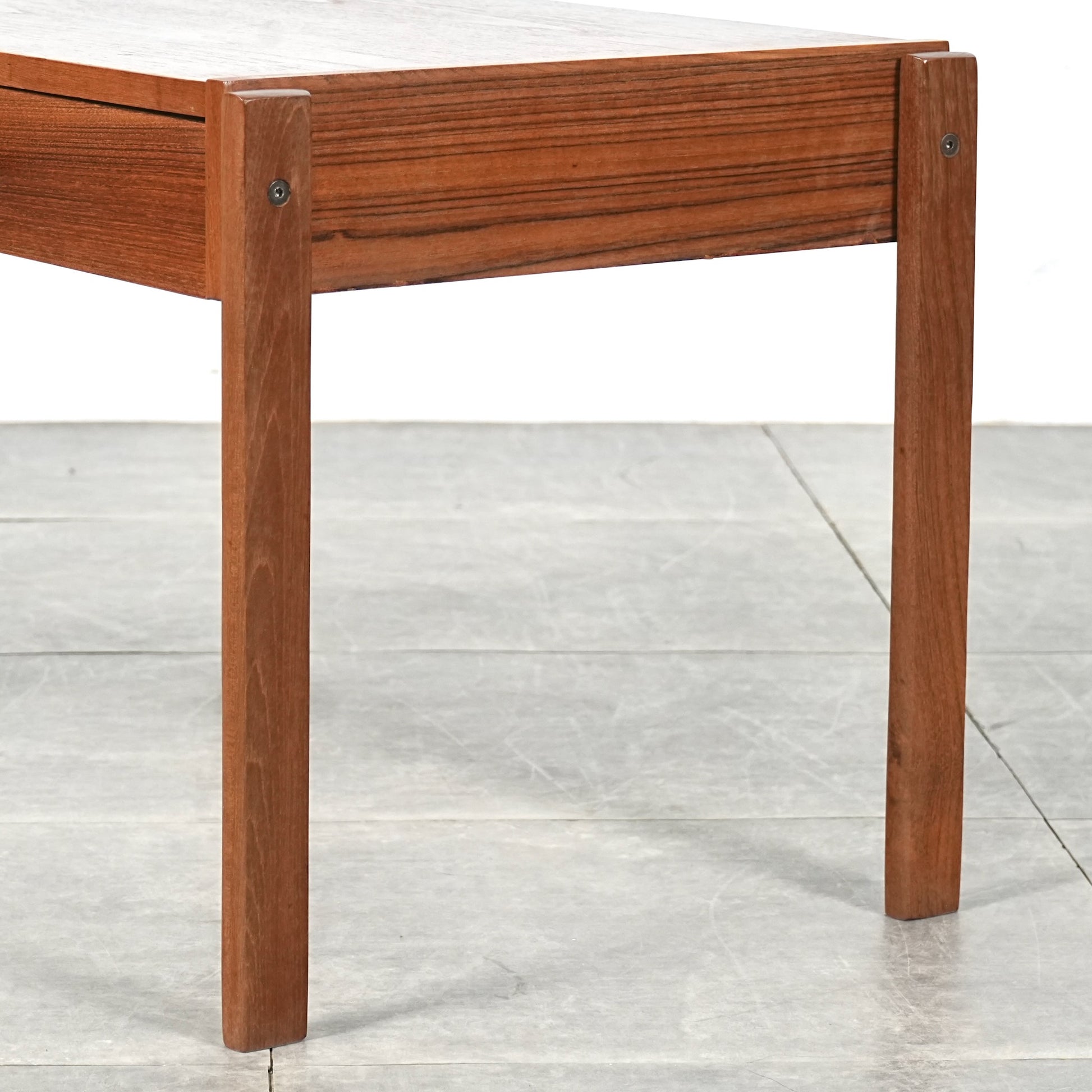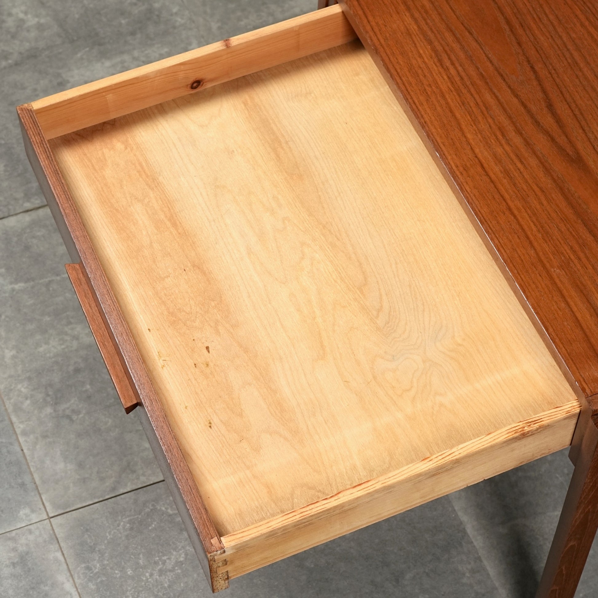良質なチーク材を使用した天板は温かみのある美しい質感が魅力で、全体の直線的なフォルムも相まって、ミッドセンチュリー家具らしい佇まい。