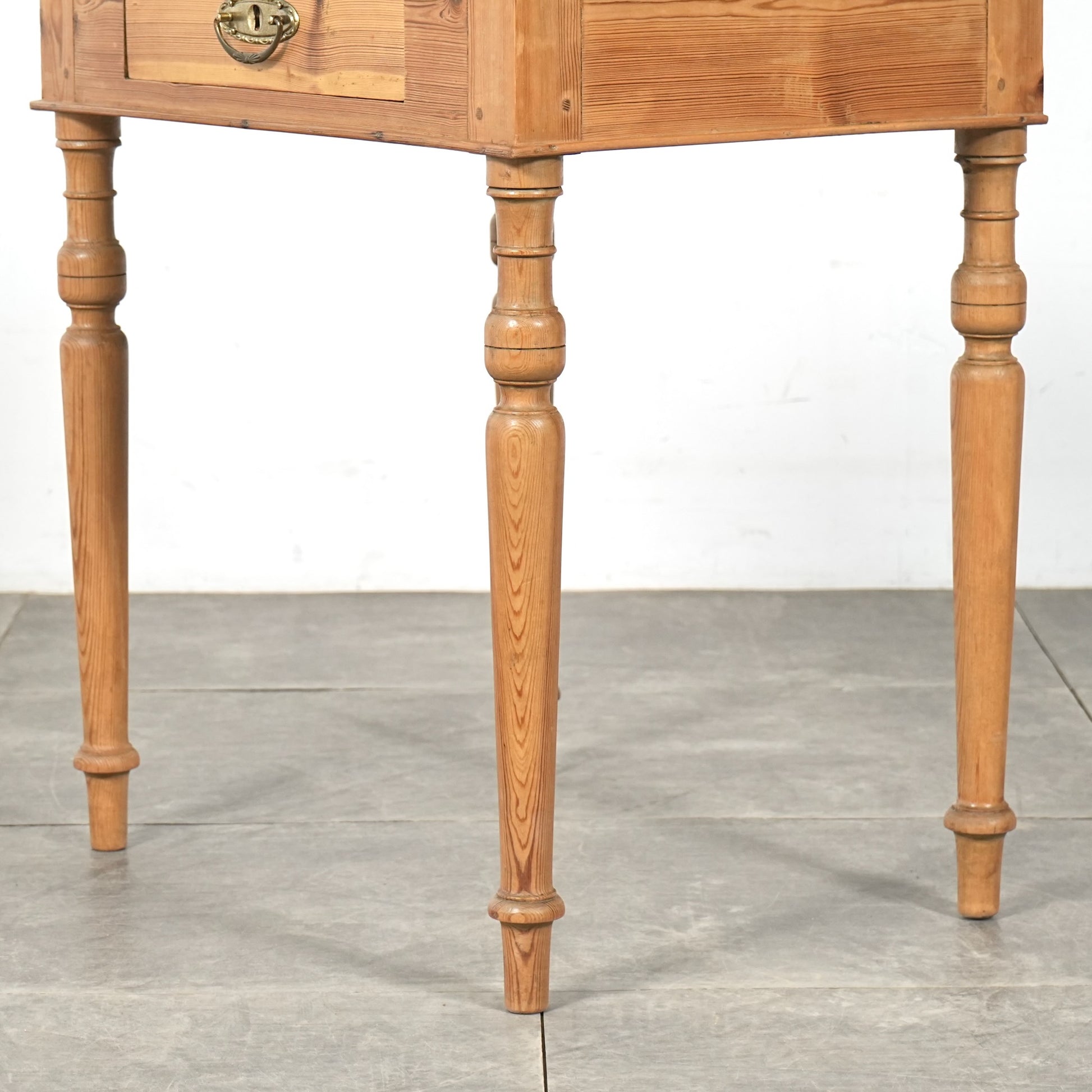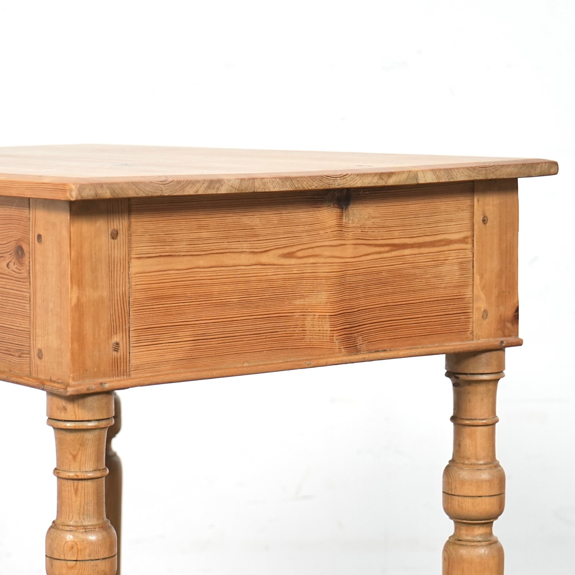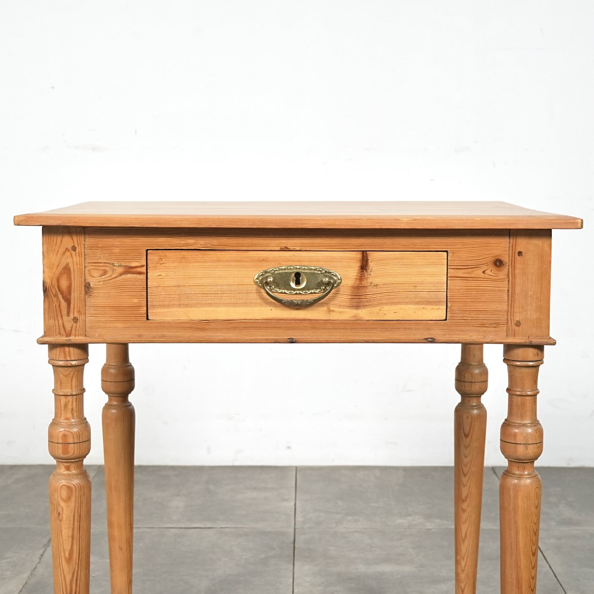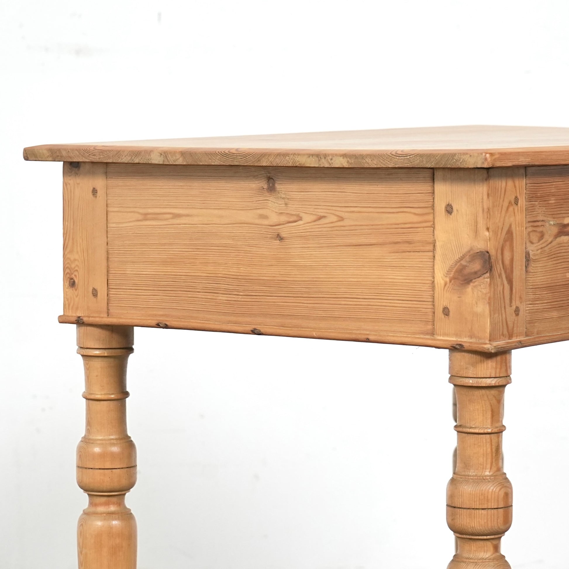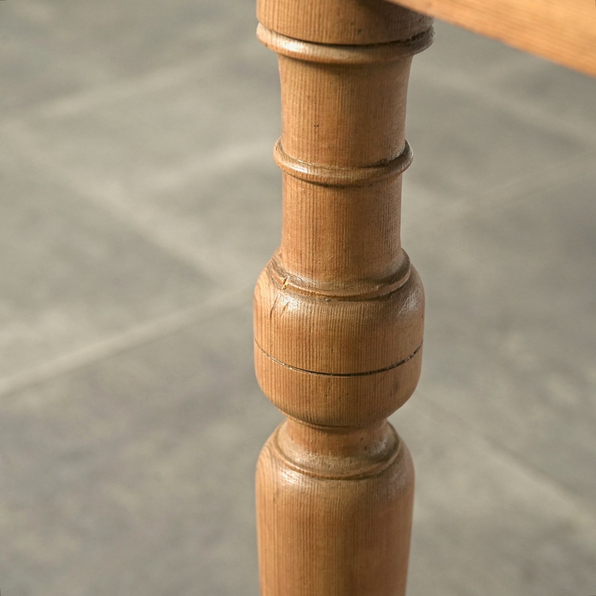 温かみのあるパイン材の質感を引き立てる美しいデザインで、さり気ない挽物細工が光るスリムな脚部も印象的です。