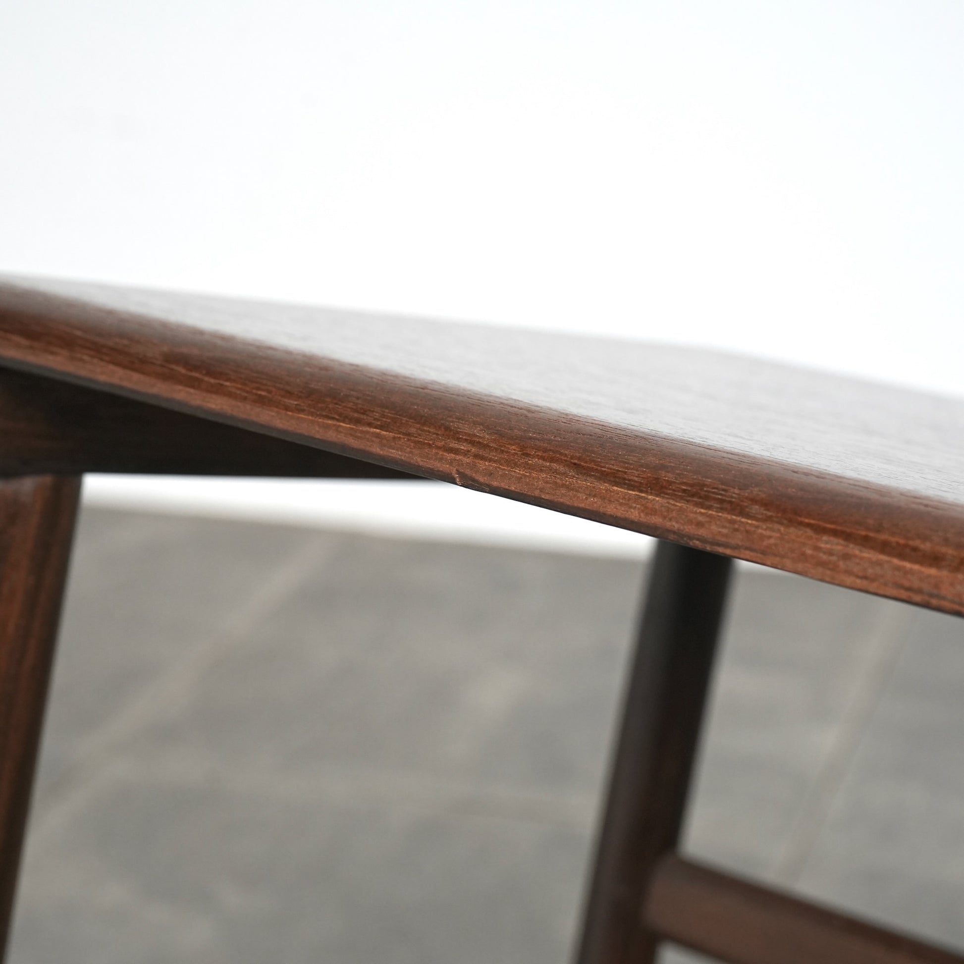 良質なチーク材を使用した天板は、温かみのある色味と美しい木目が魅力で、脚部のシャープなフォルムによってミッドセンチュリー家具らしい高いデザイン性に仕上がっています。
