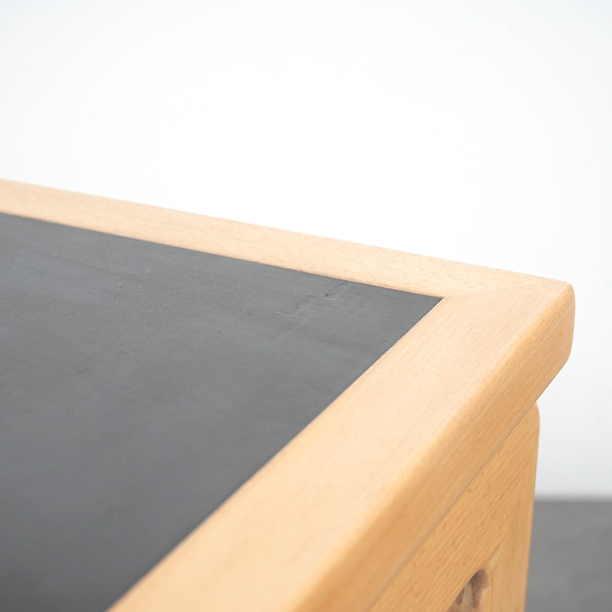 フレームには明るいトーンのビーチ材を採用しており、マットな質感のHPL(ハイプレッシャーラミネート)の天板とも絶妙なバランス。