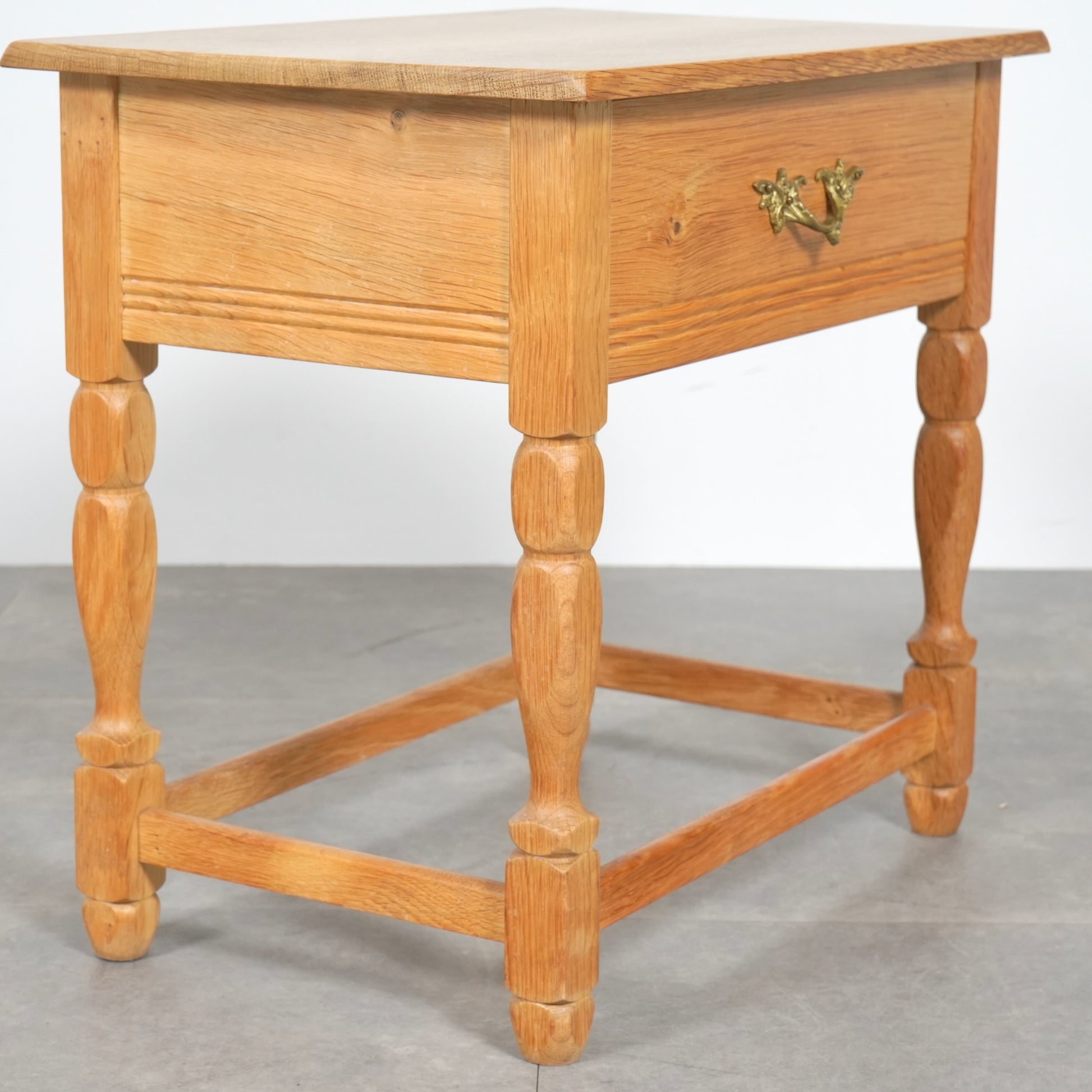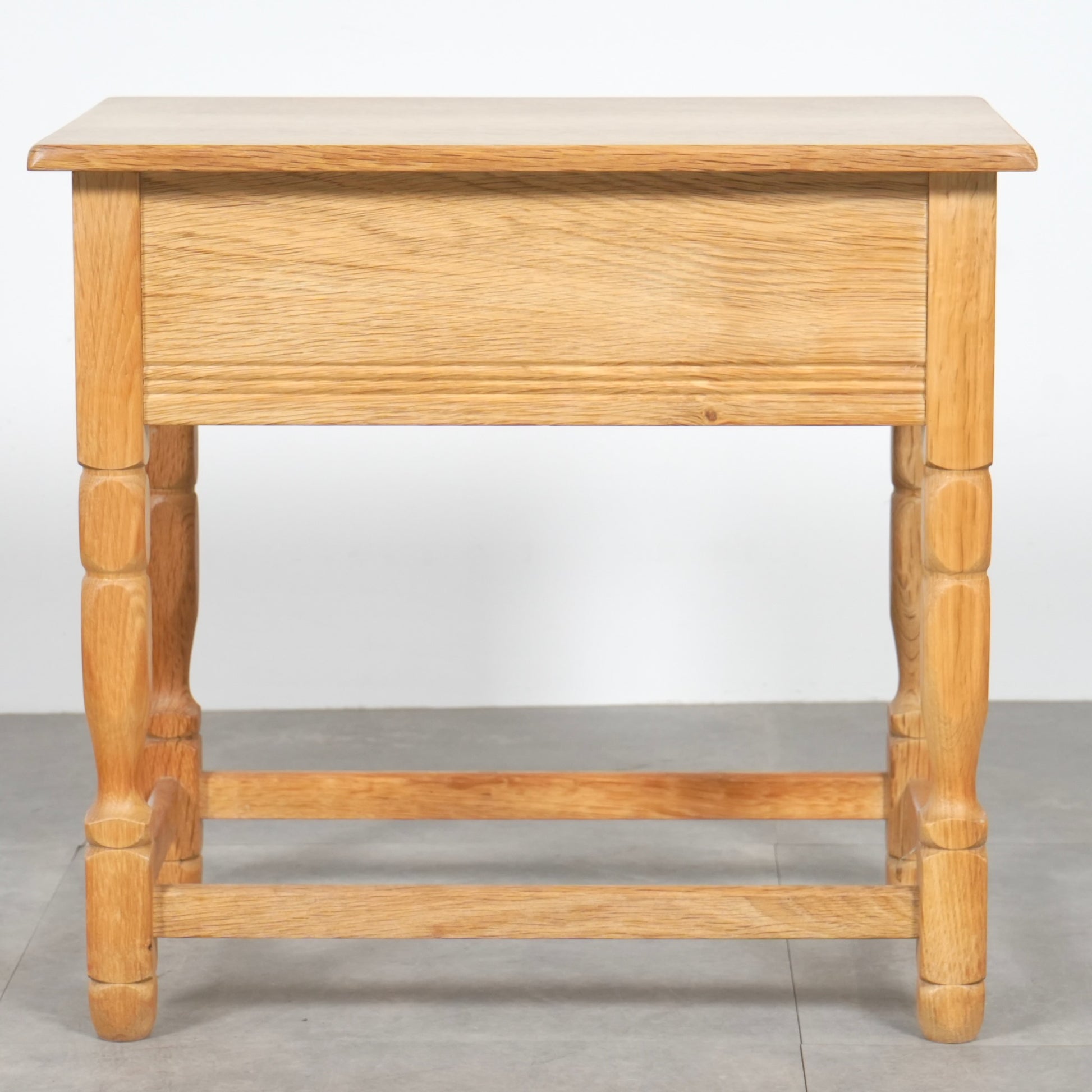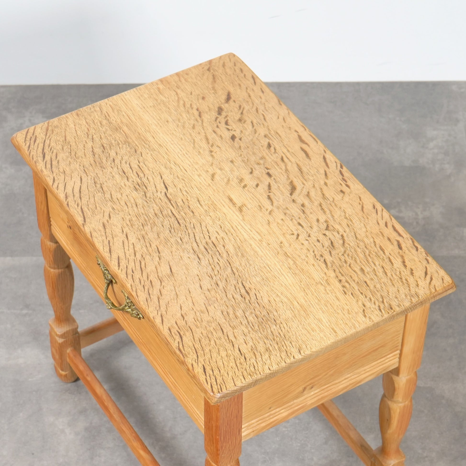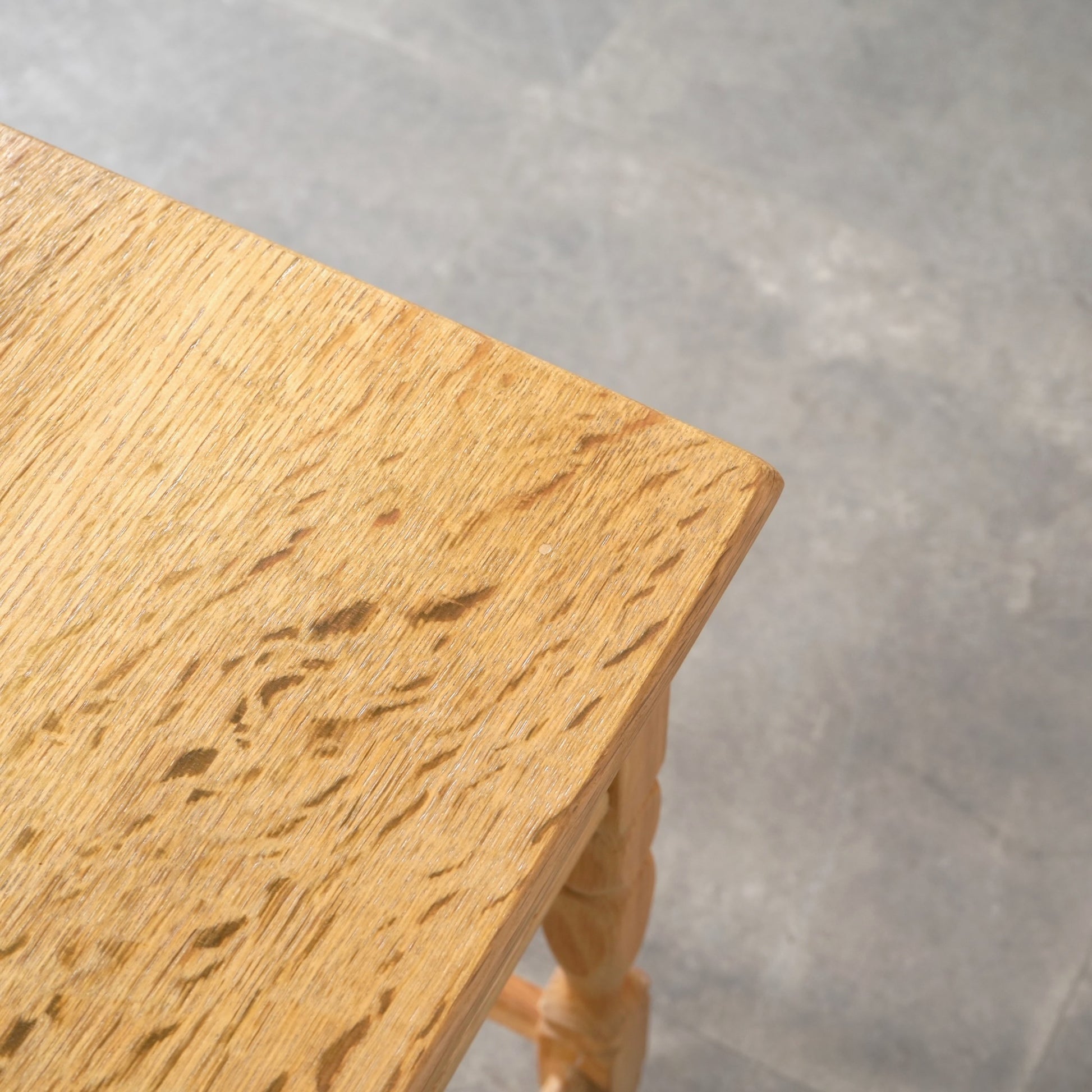 素朴かつ堅牢な雰囲気のオーク材を引き立てるデザインで、さり気ない挽物細工が光る脚部も印象的です。