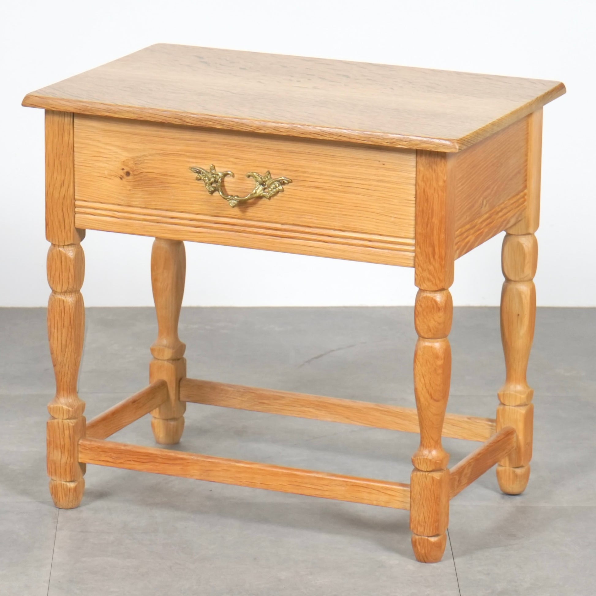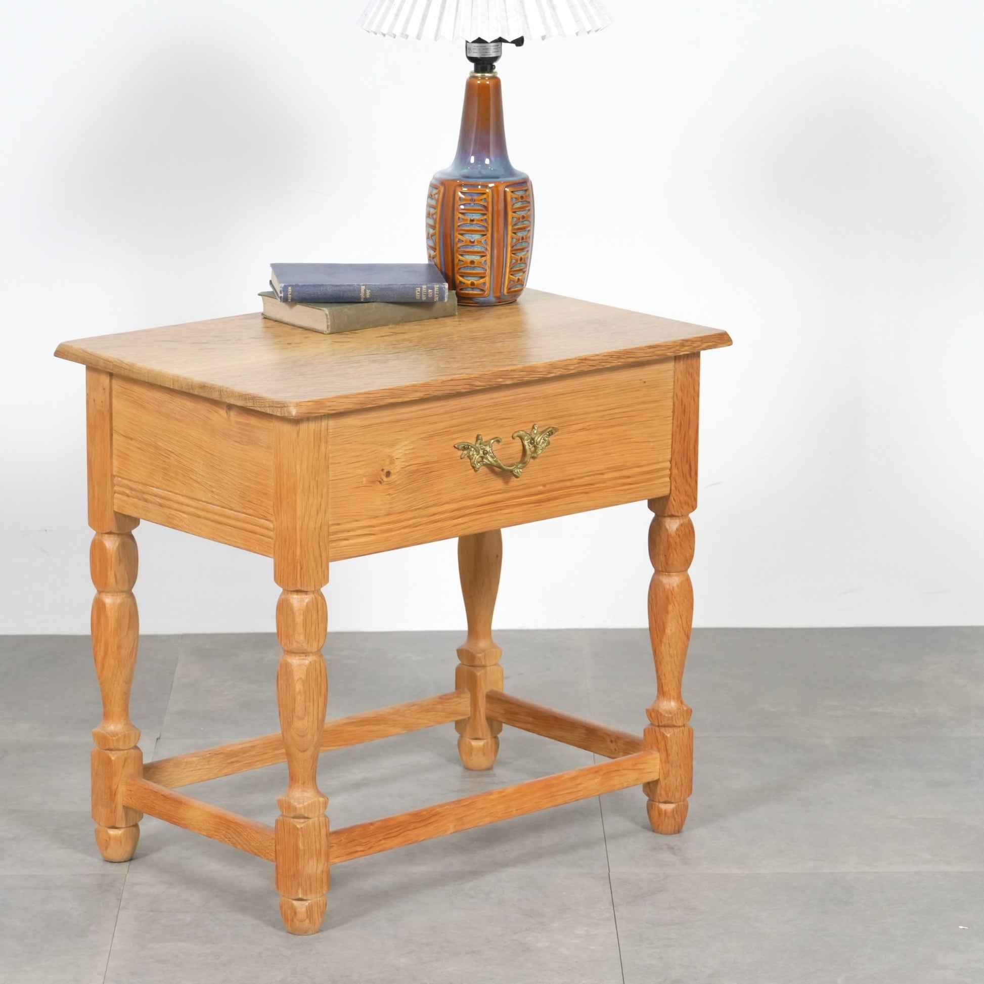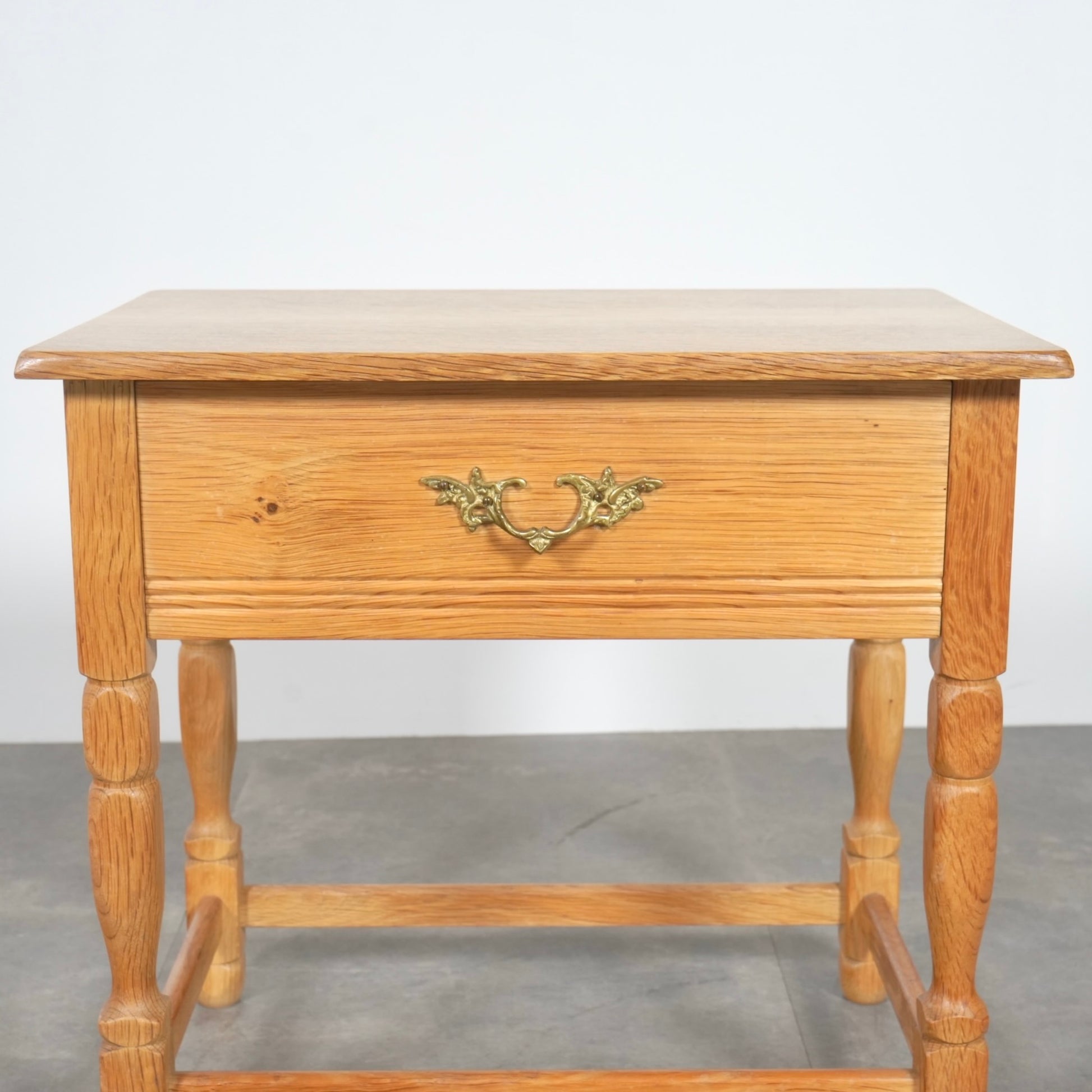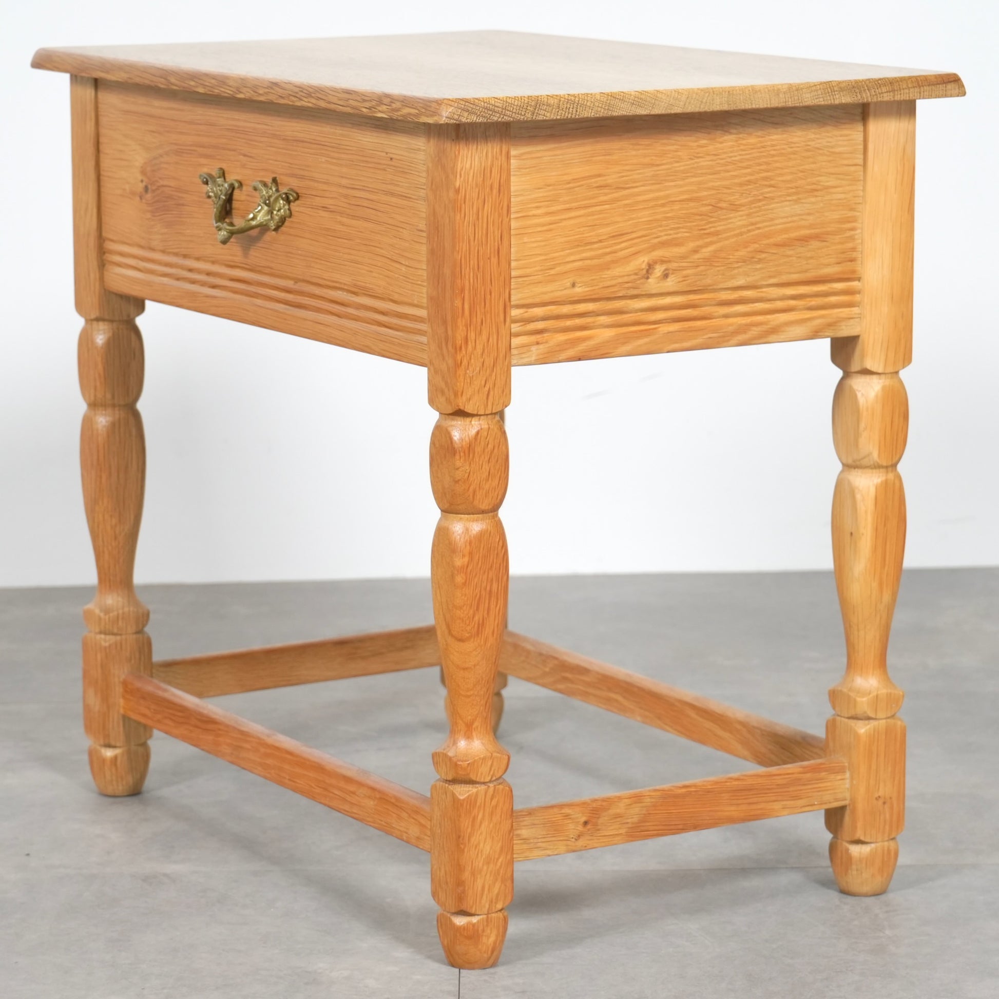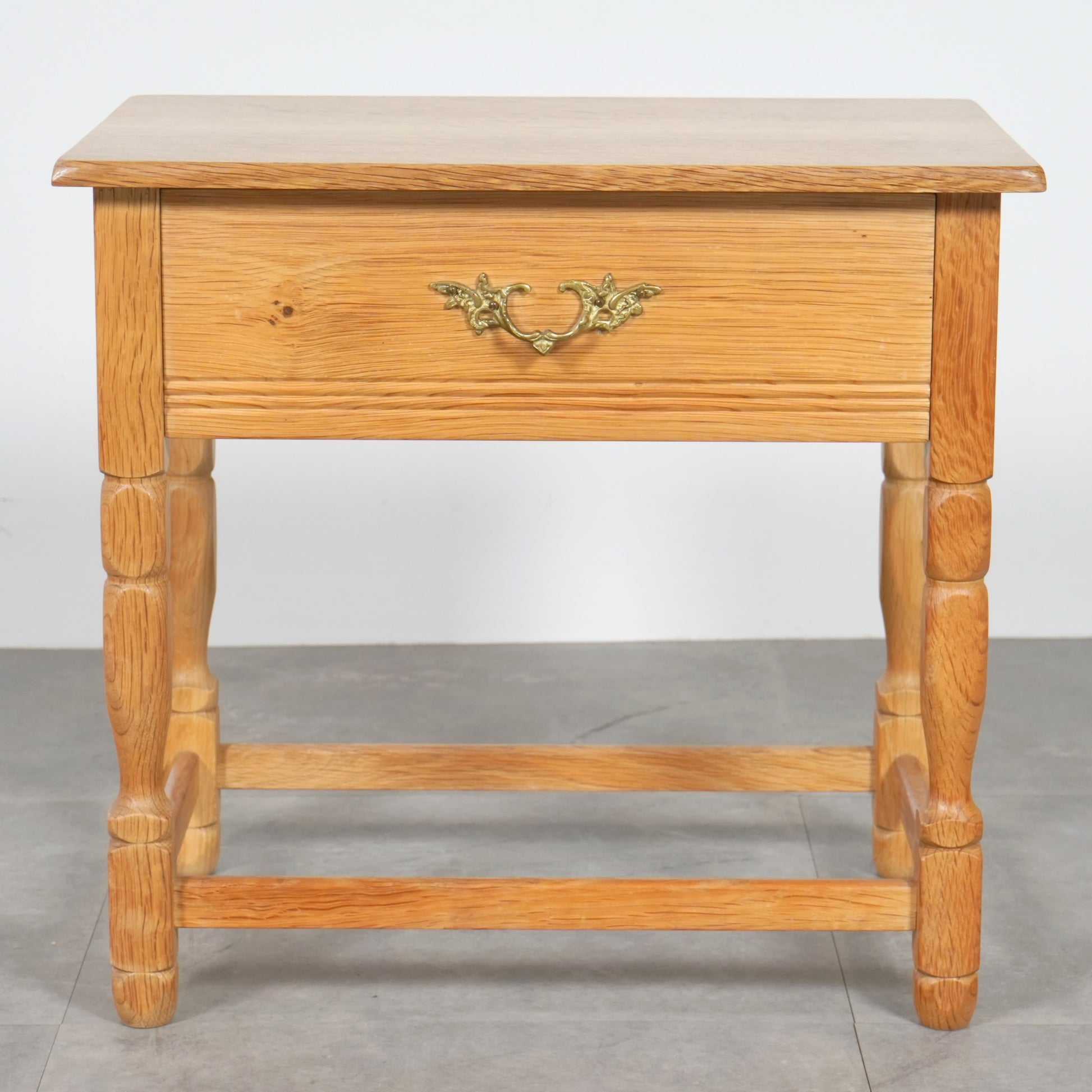 素朴かつ堅牢な雰囲気のオーク材を引き立てるデザインで、さり気ない挽物細工が光る脚部も印象的です。