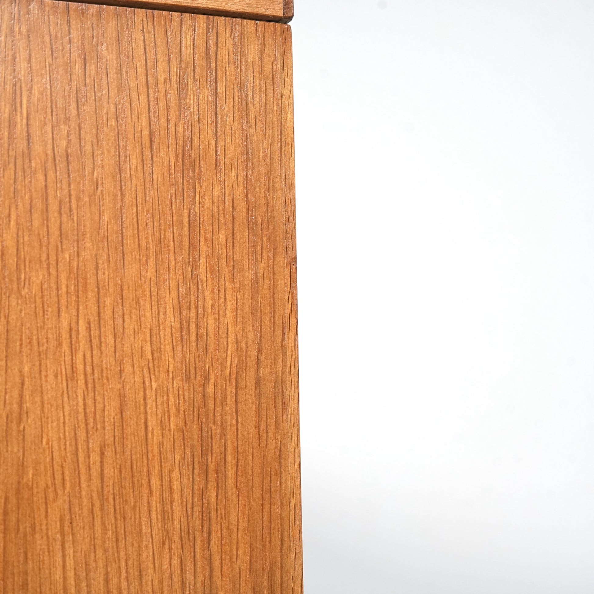 良質なオーク材の質感が際立つミニマルデザインですが、扉には手間のかかる蛇腹式の構造が採用されており、開閉時にスペースを取らず、滑らかに動くギミックが魅力の一台です。