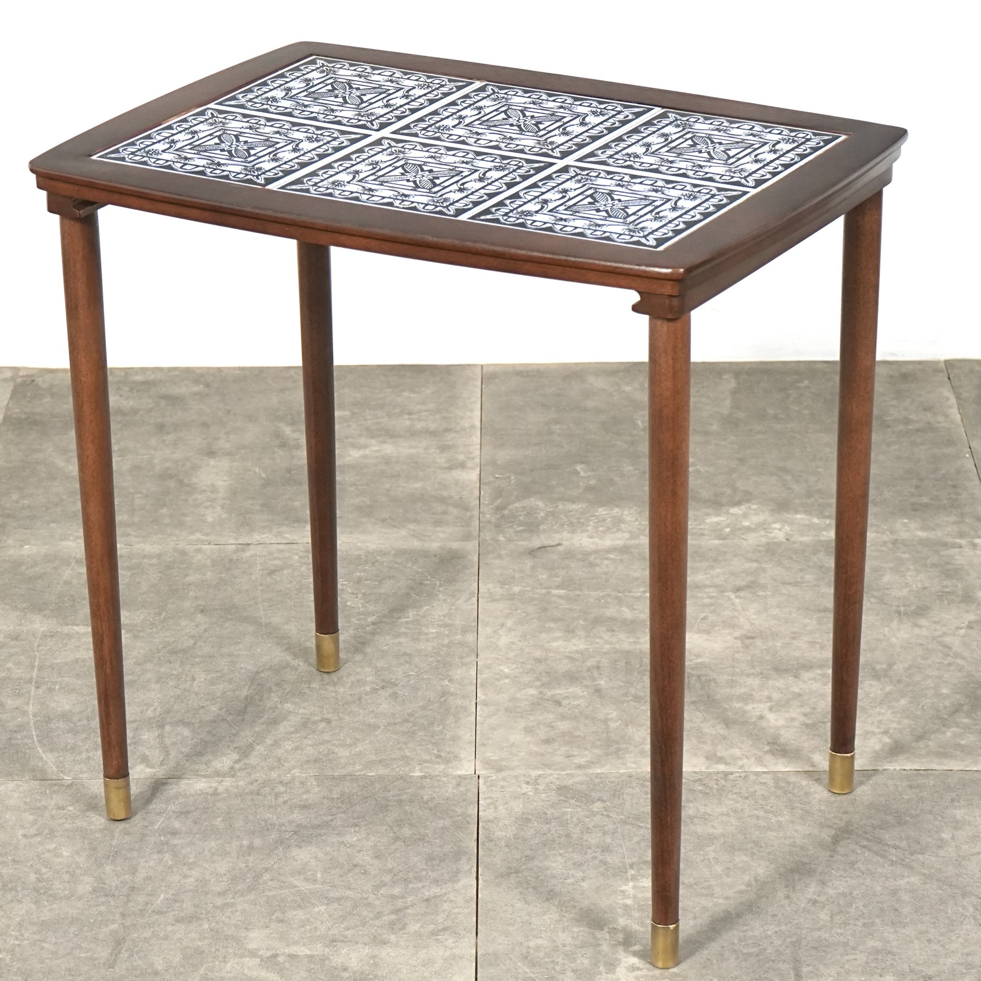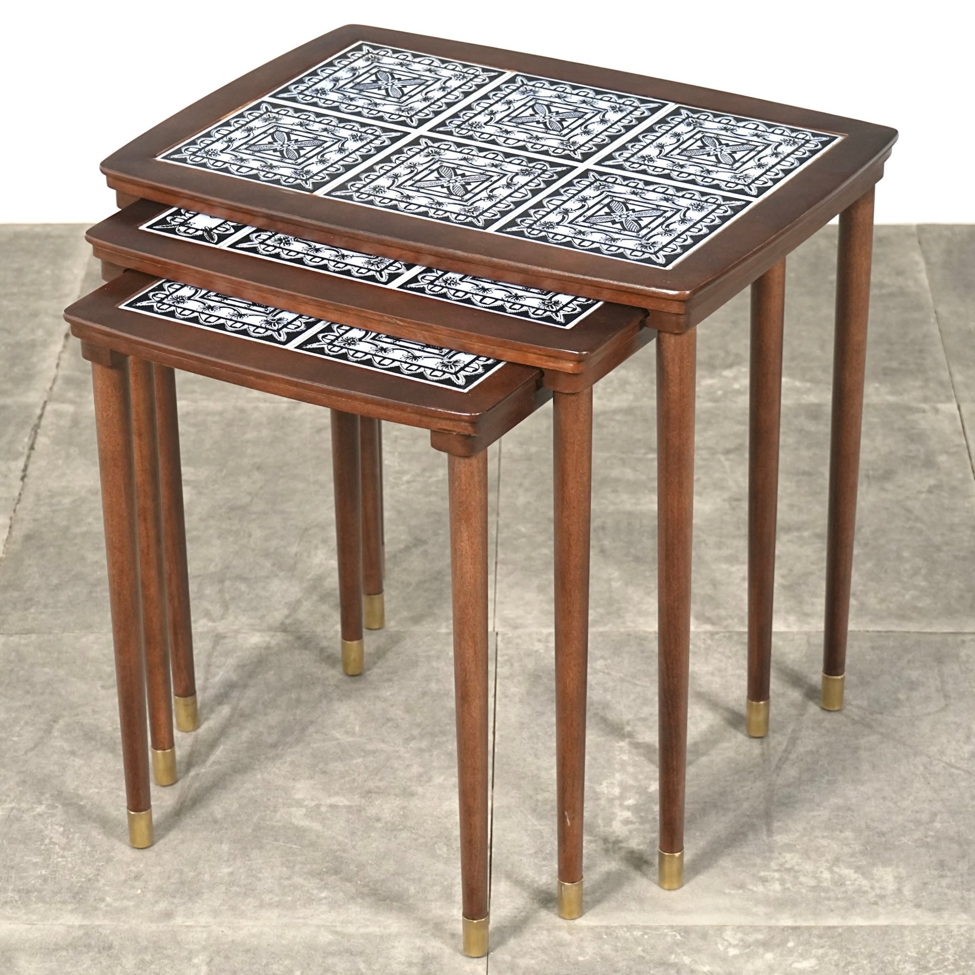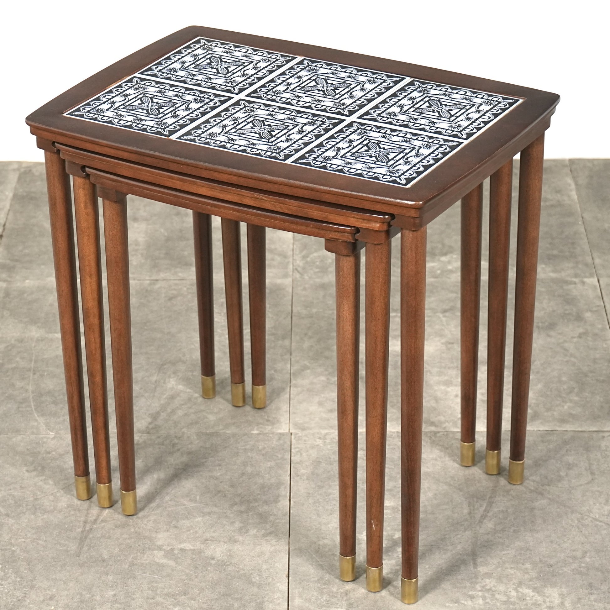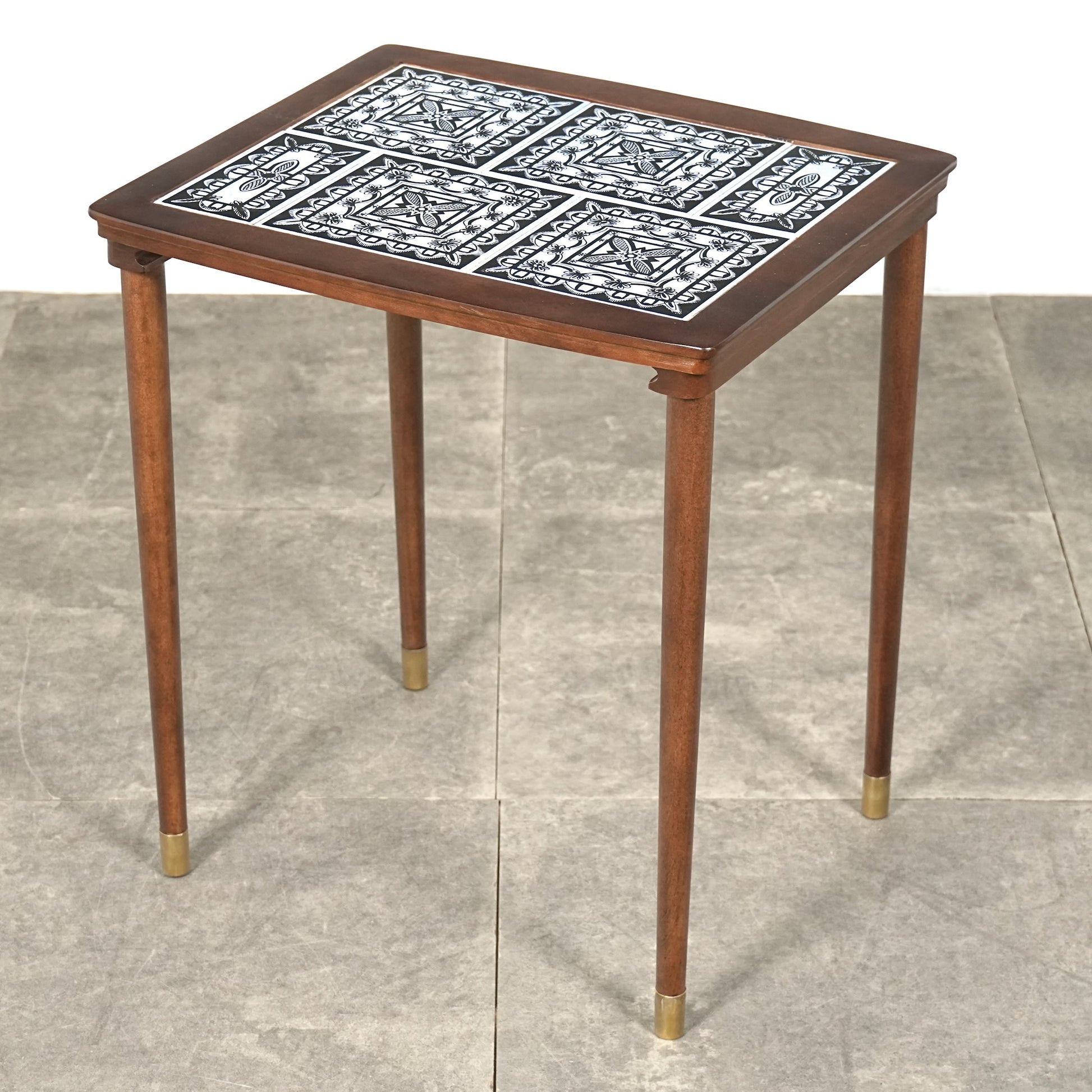 こちらのネストテーブルは高品質なビーチ材のフレームと天板の可愛らしいタイルのバランスが秀逸で、ミッドチュリーらしいシャープなフォルムも魅力的。
