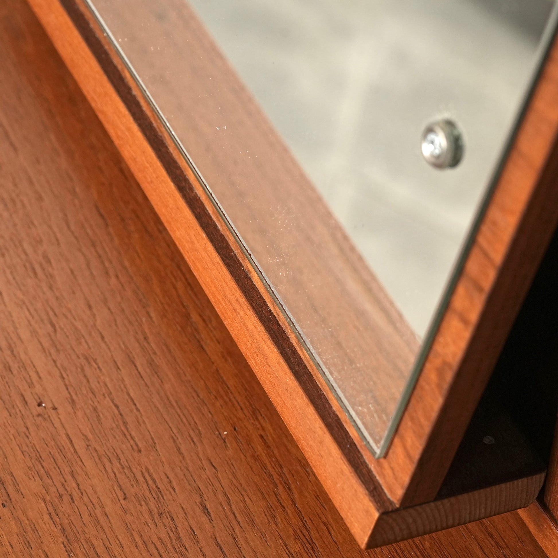こちらはミッドセンチュリーらしさ溢れるデザインだけでなく、取手や引き出し、気の利いた鏡など、細かなところまで本当に丁寧に作り込まれており、高いクラフトマンシップと作り手の美学がしっかりと伝わってくるヴィンテージならではのアイテムです。